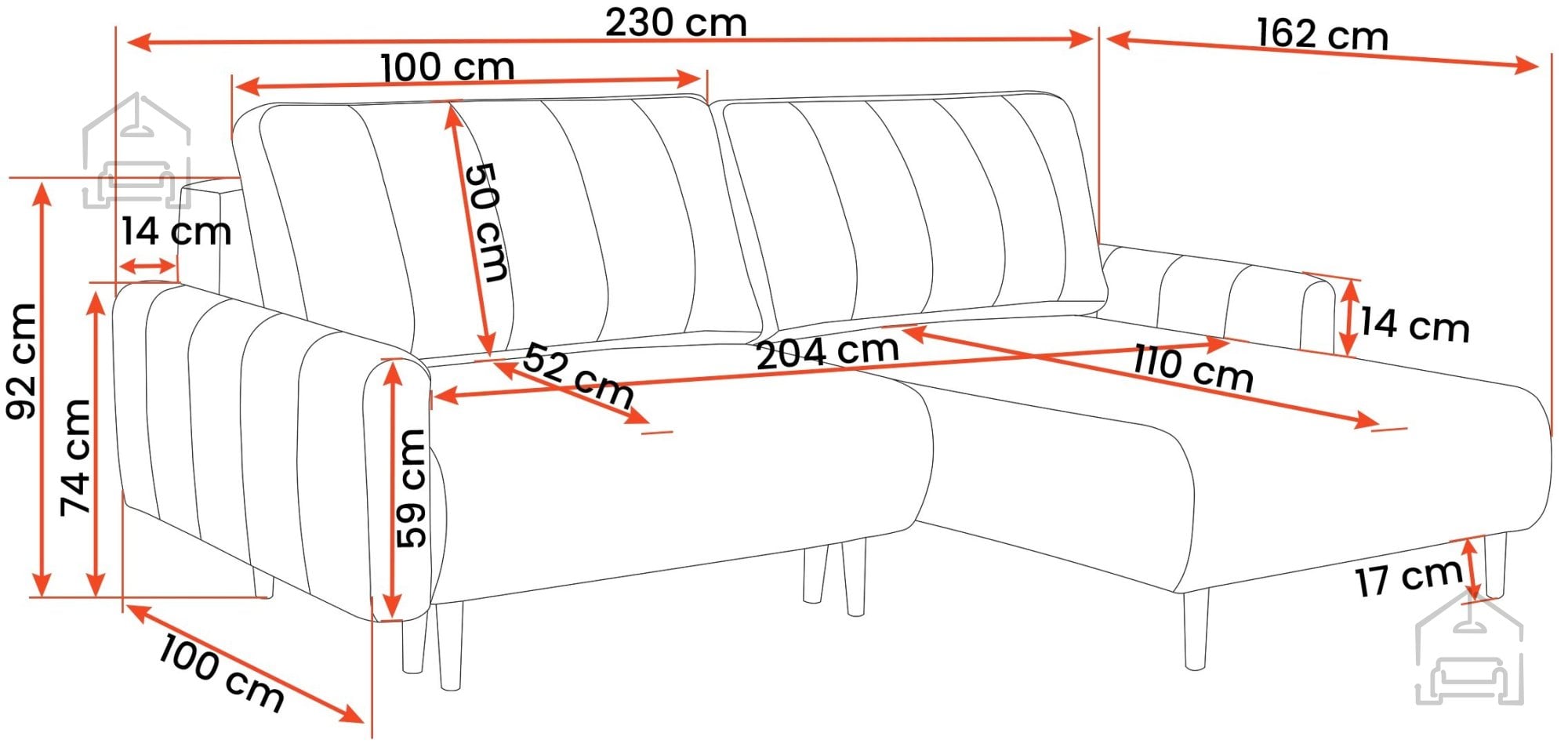 • Dimenzije garniture: 230x162x92 cm