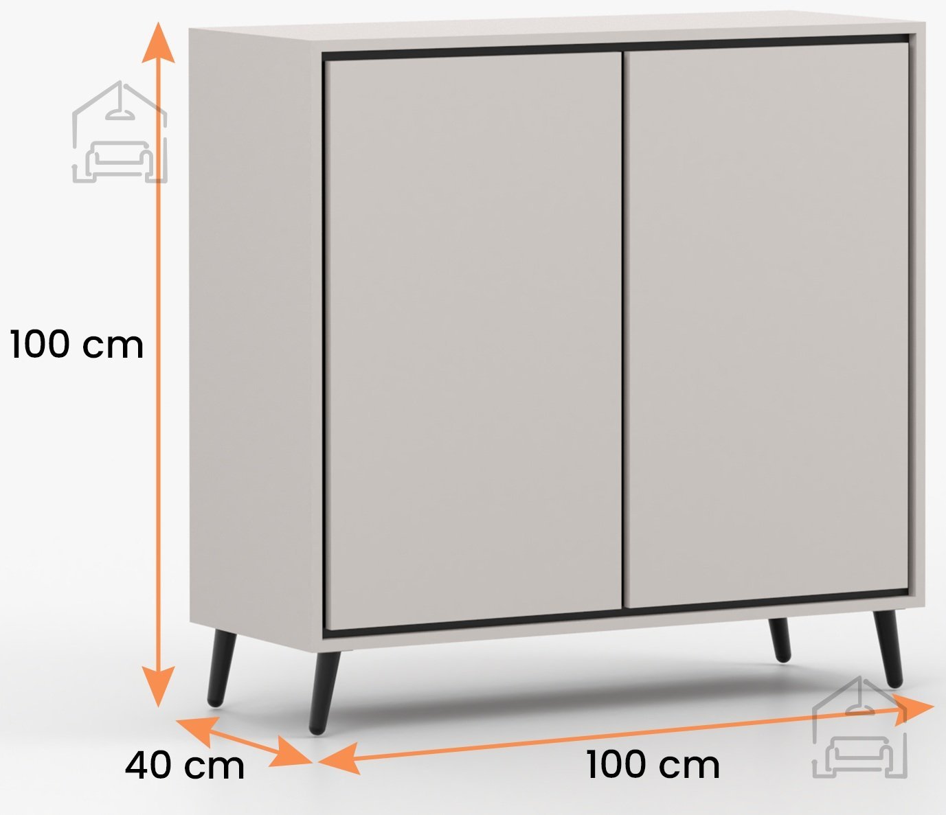 Komoda 2D Fresco znamke Idžczak meble združuje sodoben videz, funkcionalnost in kakovostno izdelavo. Njena kompaktna velikost 100x40x100 cm omogoča enostavno umestitev v različne prostore – bodisi v dnevno sobo, spalnico, predsobo ali pisarno. Izdelana je iz laminirane plošče, ki zagotavlja trpežnost in preprosto vzdrževanje, hkrati pa ohranja eleganten videz. Barva kašmir s črnimi vložki ustvarja prefinjen kontrast, ki se lepo ujema z različnimi notranjimi slogi, od minimalističnega do industrijskega.