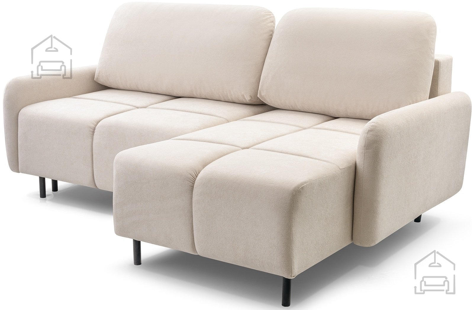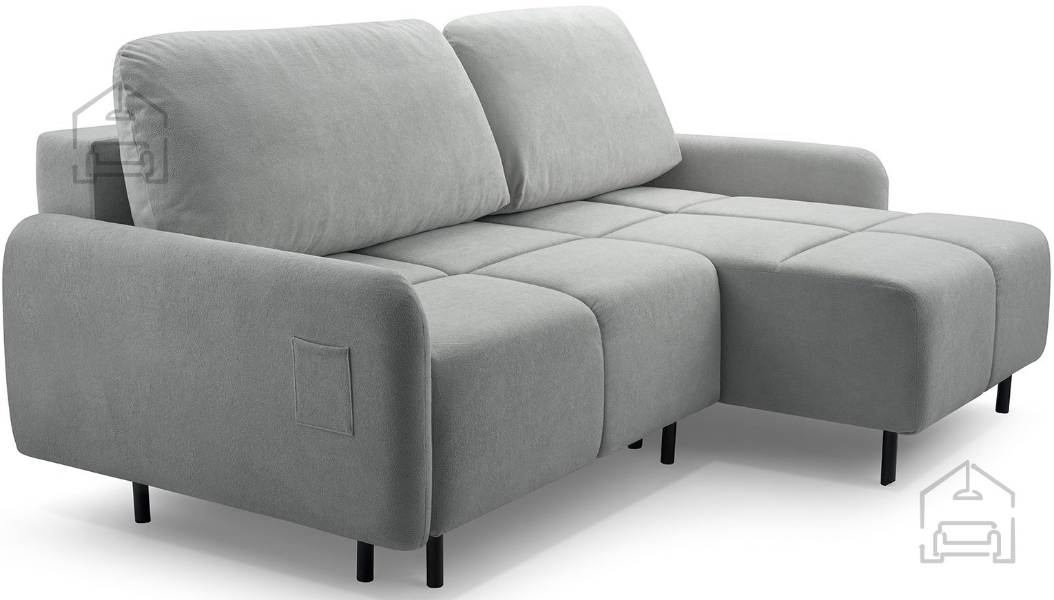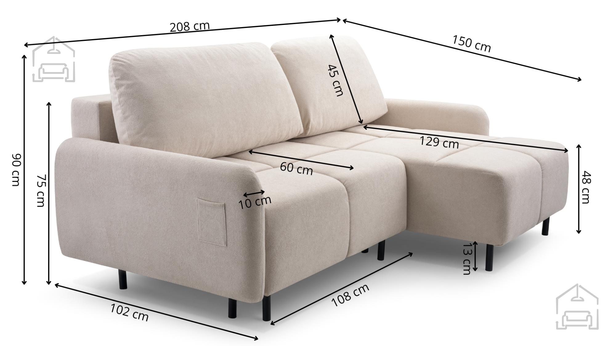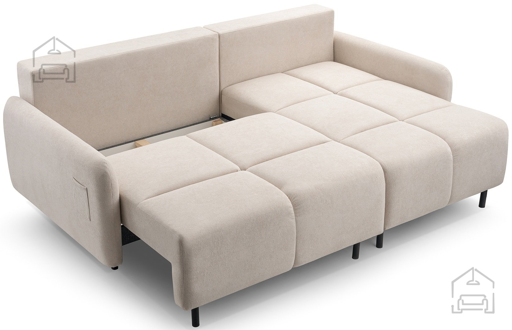 Pod sediščem se nahaja prostoren predal za posteljnino, kamor lahko shranite odeje, vzglavnike ali druge tekstilne dodatke. S tem garnitura ne ponuja le udobja, temveč tudi praktično rešitev za shranjevanje. Uporabniki bodo cenili tudi kieszonko – žep za telefon, ki je diskretno umeščen ob strani in omogoča priročno odlaganje manjših predmetov.