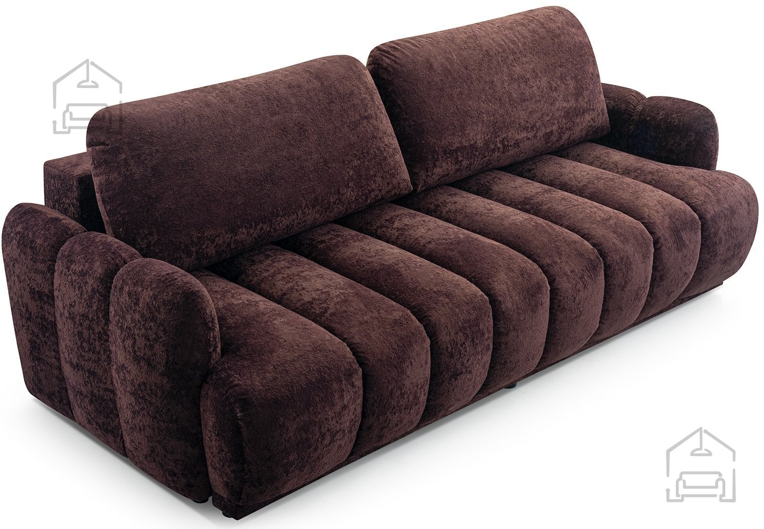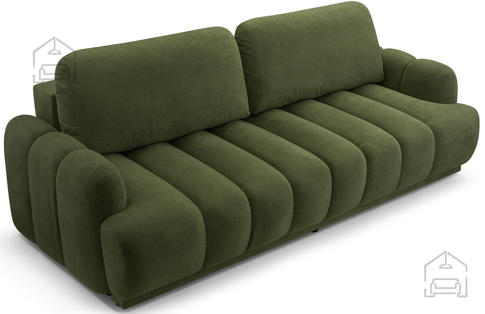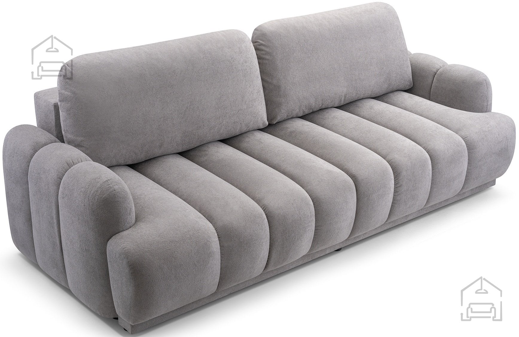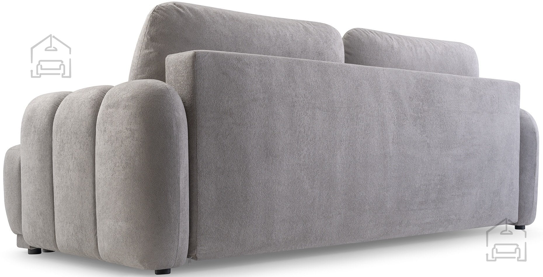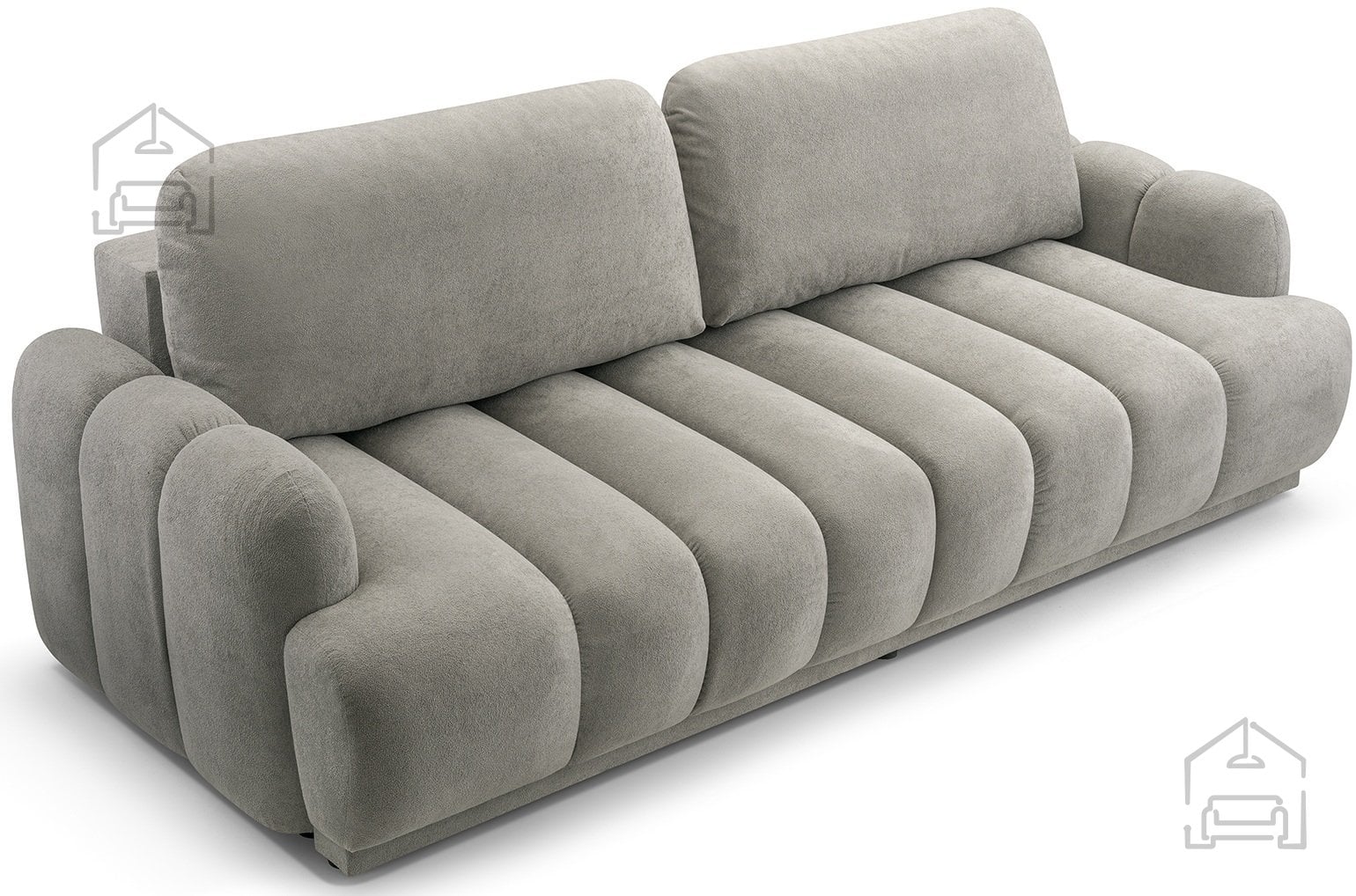 Osnova troseda je zgrajena iz lesenega okvirja v kombinaciji z laminirano iverico in vlakneno ploščo, kar zagotavlja stabilnost in dolgo življenjsko dobo. Sedež in naslon sta opremljena z vzmetnim jedrom Wave Spring, ki skrbi za enakomerno porazdelitev teže in odpornost proti posedanju. Dodatno udobje nudi mehka poliuretanska pena VP, ki ohranja svojo obliko tudi po daljši uporabi.