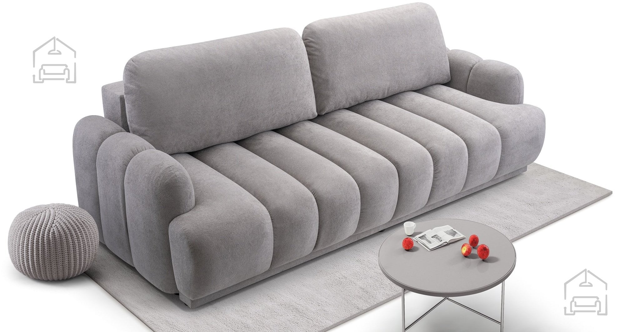 Udobje pri sedenju in ležanju je rezultat premišljene kombinacije materialov in ergonomskega oblikovanja. Vzmetno jedro v kombinaciji s peno ustvarja prijetno prožnost in podporo, ki ostajata stabilni tudi po večletni uporabi. Površina iz tkanine Gerra 65 je prijetna na dotik, odporna proti obrabi in enostavna za vzdrževanje. Ta model je dobra izbira za tiste, ki iščejo kakovostno, praktično in estetsko rešitev za dnevni prostor.