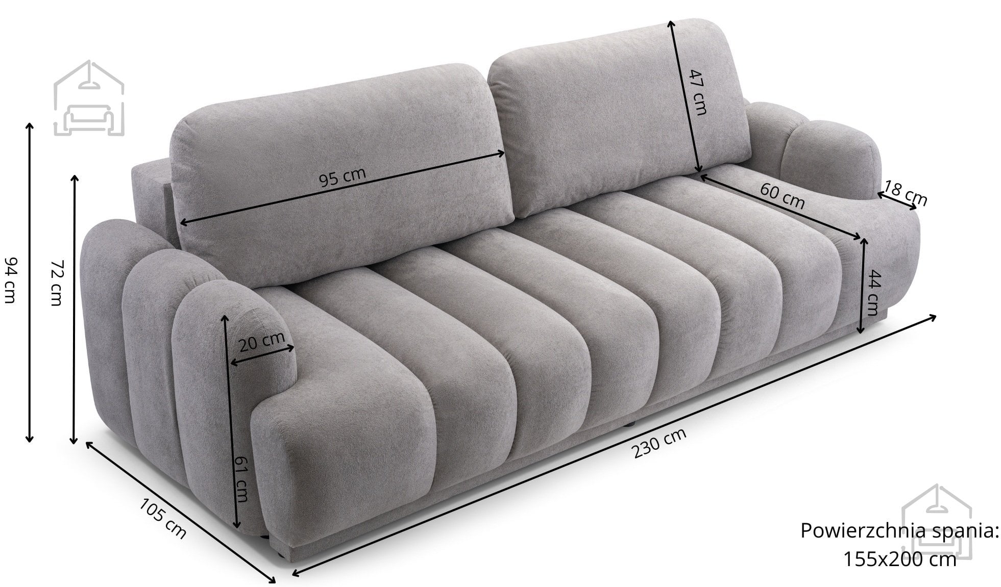 Trosed Tiko – Cambiale je sodoben kos oblazinjenega pohištva, ki združuje funkcionalnost, udobje in preprosto eleganco. Zasnovan je za vsakodnevno uporabo in hkrati ponuja možnost hitre preobrazbe v udobno ležišče. Ta večnamenski trosed je izdelan v tovarni Kinas meble na Poljskem, znani po kakovostni izdelavi in pozornosti do detajlov. Njegove dimenzije, 230x105x94 cm, zagotavljajo dovolj prostora za sproščeno sedenje več oseb, hkrati pa se lepo prilega večini sodobnih dnevnih sob.