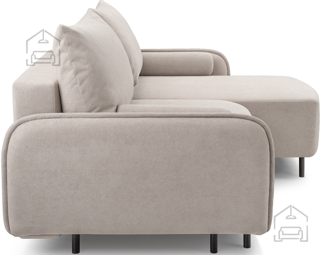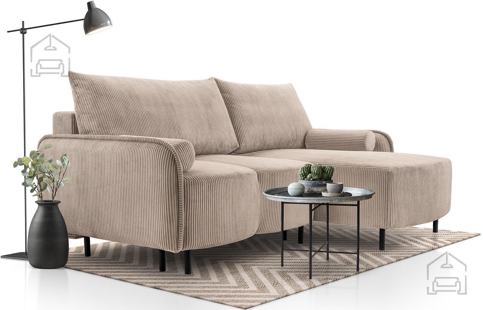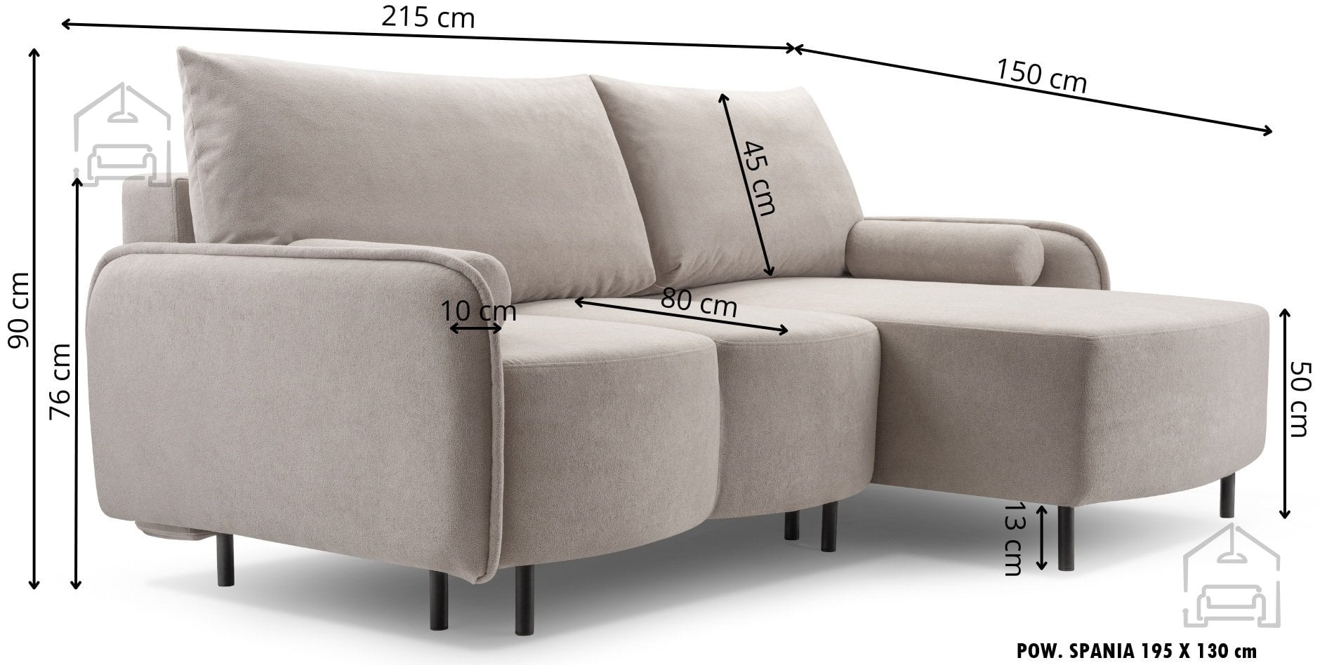 Kotna sedežna garnitura Tini predstavlja popolno ravnovesje med funkcionalnostjo in estetiko. Izdelana je v priznani poljski tovarni Kinas meble, kjer združujejo sodobno oblikovanje, kakovostne materiale in natančno obdelavo. Garnitura s svojimi dimenzijami 215x150x90 cm ponuja udobno sedenje in praktično rešitev za manjše ali srednje velike dnevne sobe. Gre za kos pohištva, ki združuje eleganco, udobje in pametno zasnovo s pomočjo preverjenega mehanizma Euro.