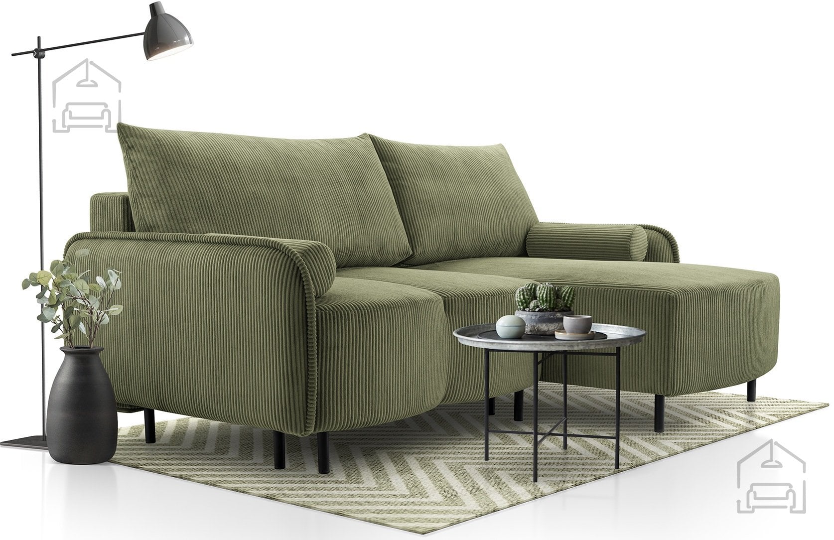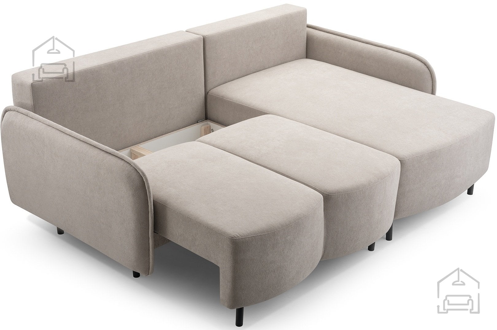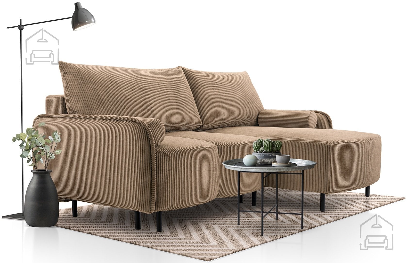 Kotna sedežna garnitura Tini predstavlja popolno ravnovesje med funkcionalnostjo in estetiko. Izdelana je v priznani poljski tovarni Kinas meble, kjer združujejo sodobno oblikovanje, kakovostne materiale in natančno obdelavo. Garnitura s svojimi dimenzijami 215x150x90 cm ponuja udobno sedenje in praktično rešitev za manjše ali srednje velike dnevne sobe. Gre za kos pohištva, ki združuje eleganco, udobje in pametno zasnovo s pomočjo preverjenega mehanizma Euro.