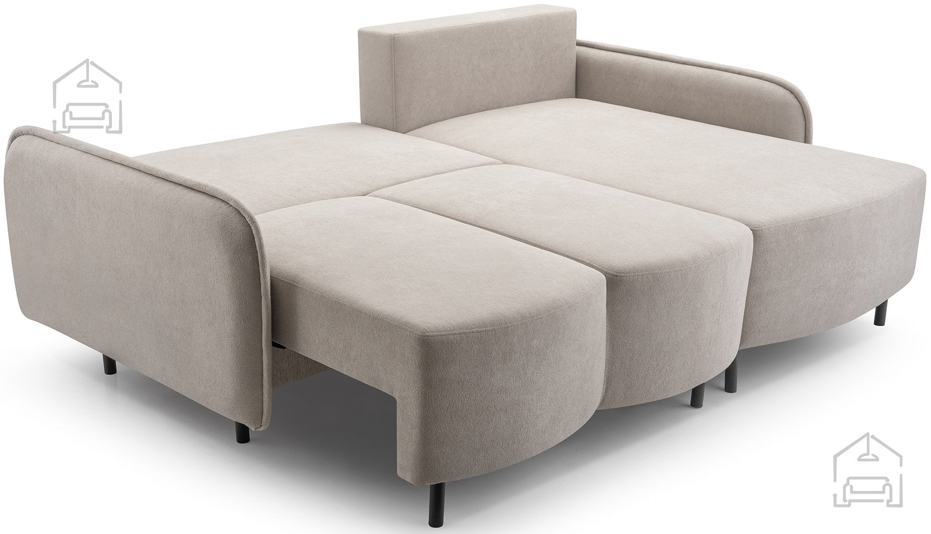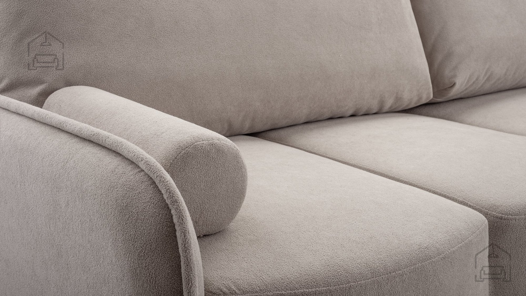 Okvir garniture je izdelan iz lesa v kombinaciji z iveralnimi in vlaknenimi ploščami, kar zagotavlja trdnost in dolgotrajno stabilnost konstrukcije. Sedežni del in naslon sta opremljena z vzmetnim jedrom Wave Spring, ki v kombinaciji z mehko poliuretansko peno nudi optimalno podporo in udobje pri sedenju in ležanju. Takšna zasnova poskrbi za enakomerno porazdelitev teže ter dolgo življenjsko dobo oblazinjenja.