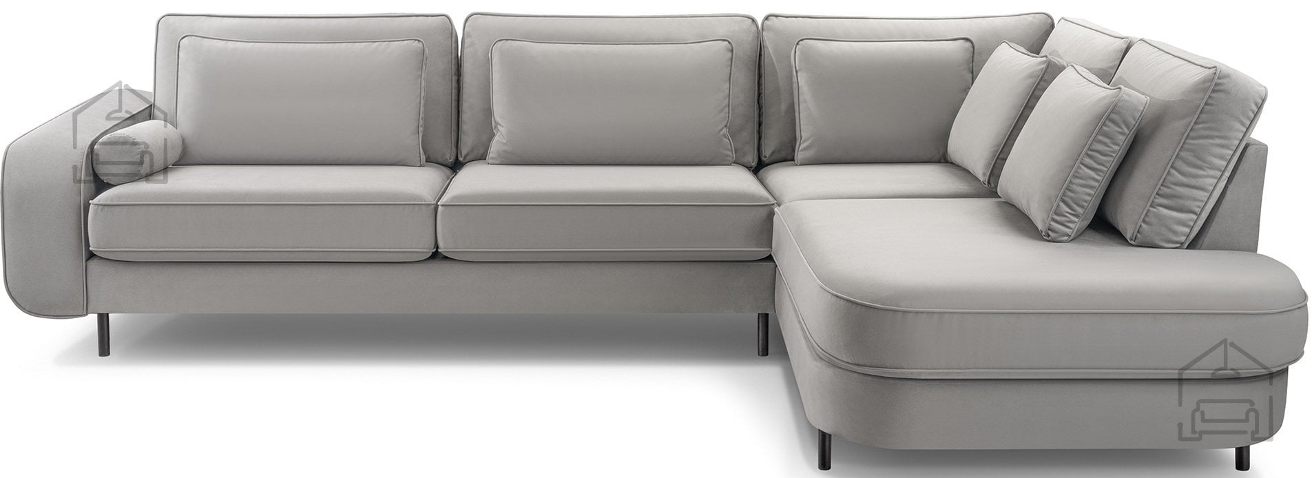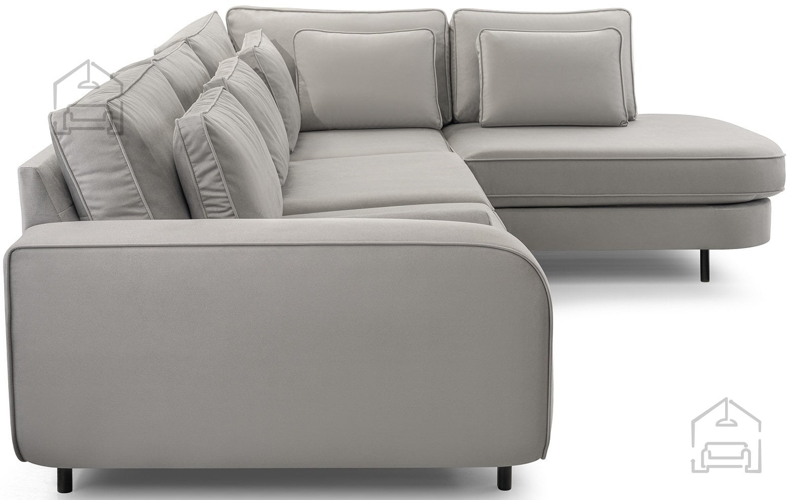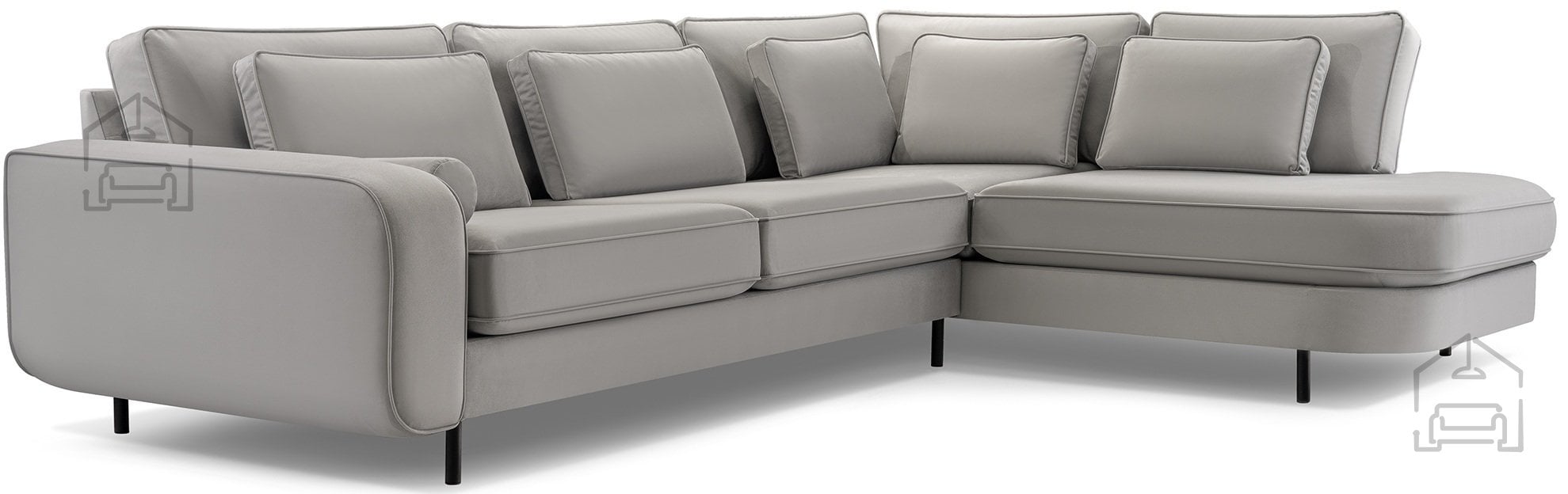 Kotna zasnova garniture Filip omogoča optimalno izrabo prostora, ne glede na to, ali jo postavite v dnevno sobo, večji salon ali odprt bivalni prostor. Njen moderen stil je poudarjen z jeklenimi črnimi nogami, ki dodajo pridih industrijske elegance, hkrati pa zagotavljajo stabilnost in vizualno lahkotnost. Garnitura nima spalne funkcije in nima predala za posteljnino, kar pomeni, da je namenjena izključno udobnemu sedenju in sproščanju.