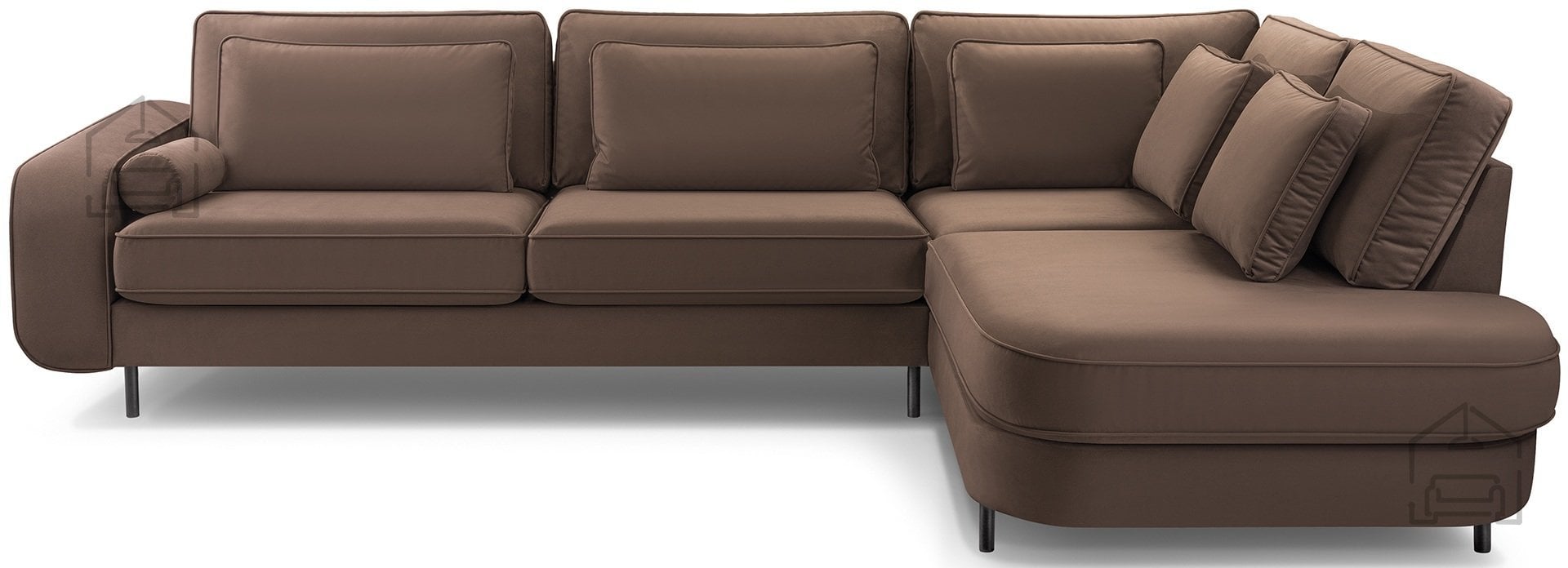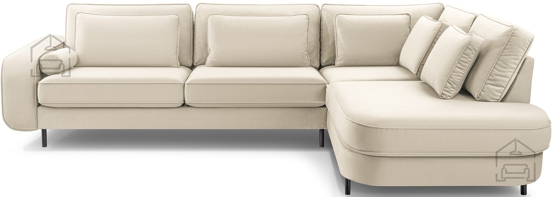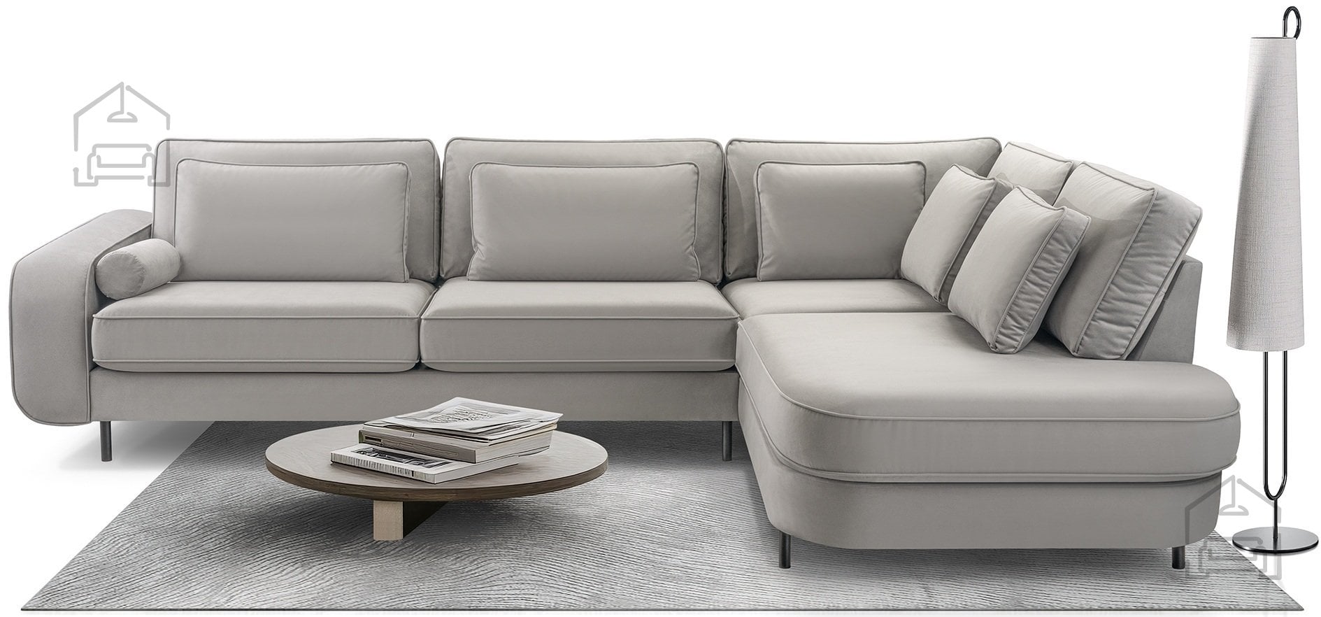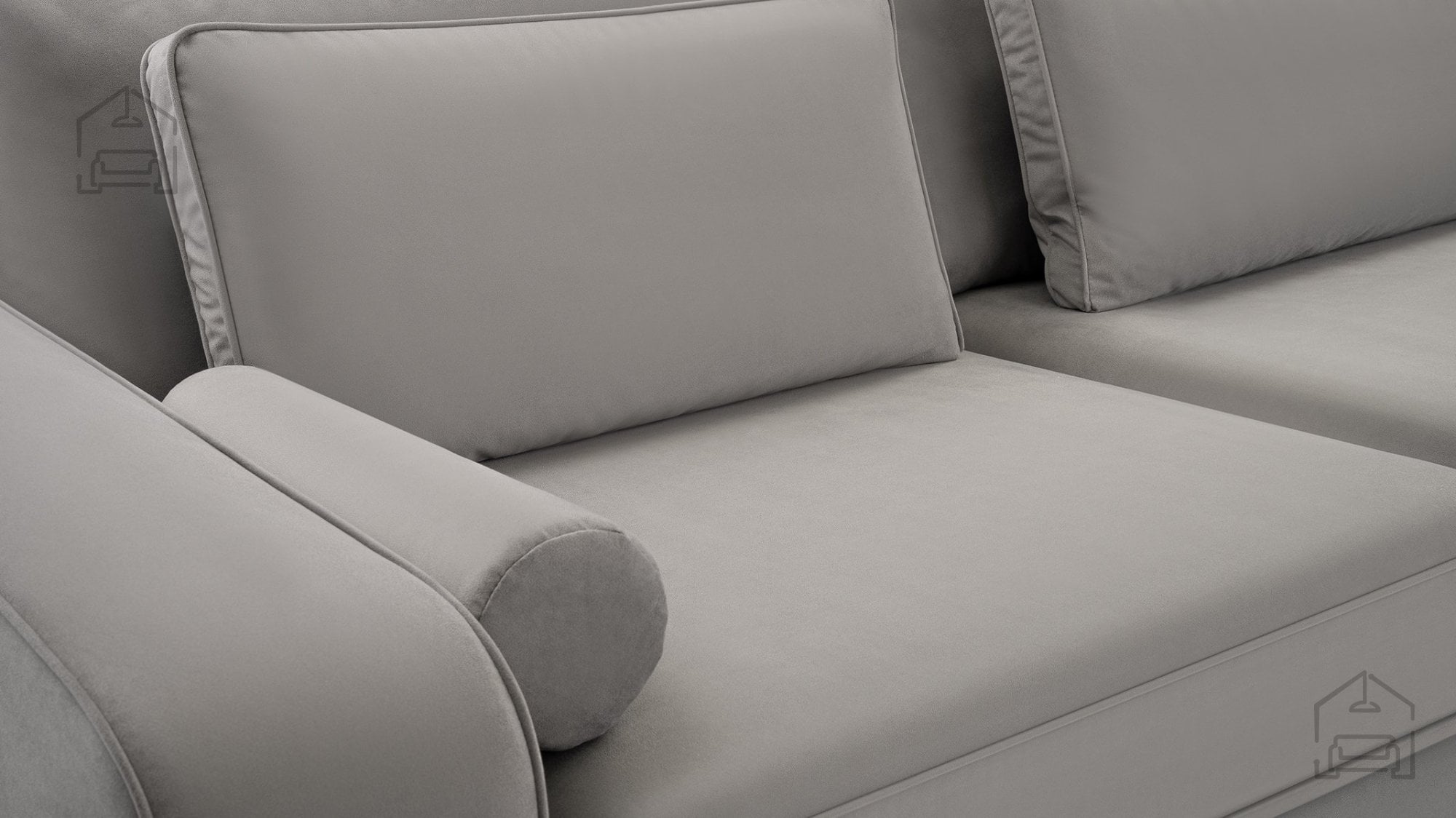 Kotna zasnova garniture Filip omogoča optimalno izrabo prostora, ne glede na to, ali jo postavite v dnevno sobo, večji salon ali odprt bivalni prostor. Njen moderen stil je poudarjen z jeklenimi črnimi nogami, ki dodajo pridih industrijske elegance, hkrati pa zagotavljajo stabilnost in vizualno lahkotnost. Garnitura nima spalne funkcije in nima predala za posteljnino, kar pomeni, da je namenjena izključno udobnemu sedenju in sproščanju.