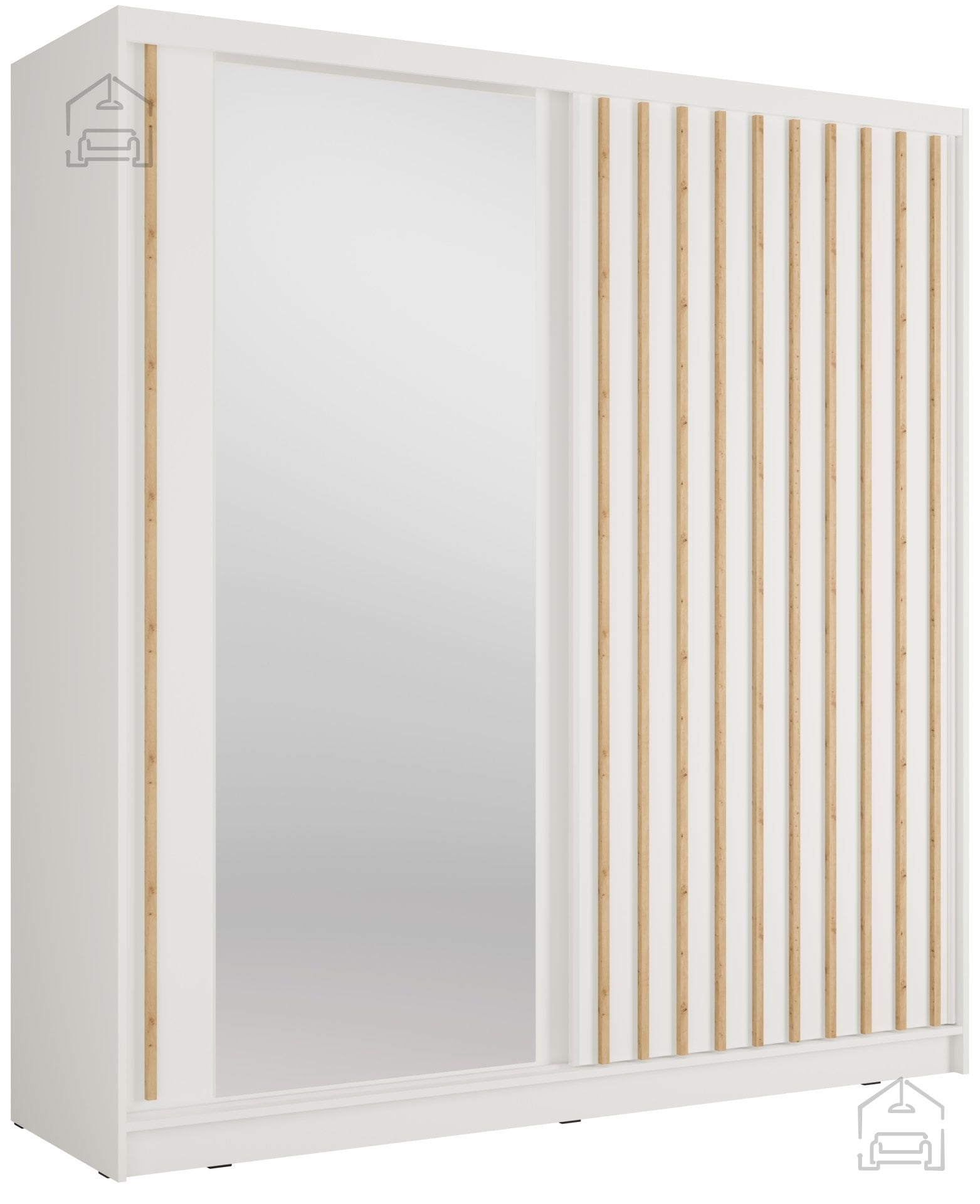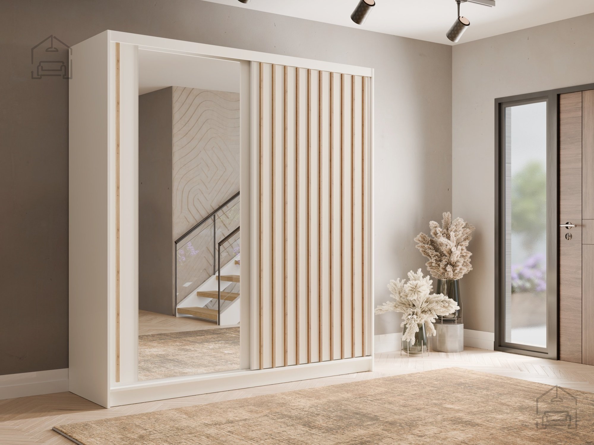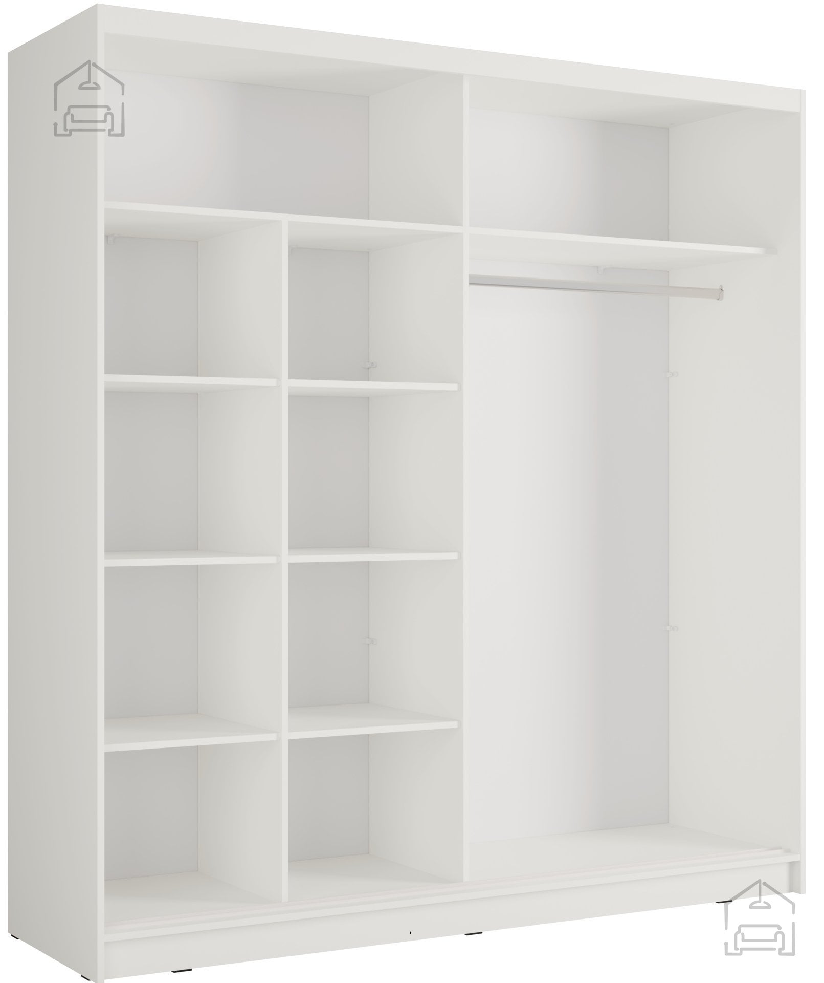 Garderobna omara z drsnimi vrati Aluna 11 – Meblosiek je premišljena izbira za vse, ki iščejo kombinacijo estetike, prostornosti in uporabne vrednosti. Njen čist dizajn, praktična notranja razporeditev ter kakovostna izdelava jo postavljajo med vsestranske rešitve za urejen dom. Zaradi svojih dimenzij in barvne kombinacije se lepo vključi tako v manjše spalnice kot v večje garderobne prostore, kjer lahko služi kot osrednji kos pohištva.