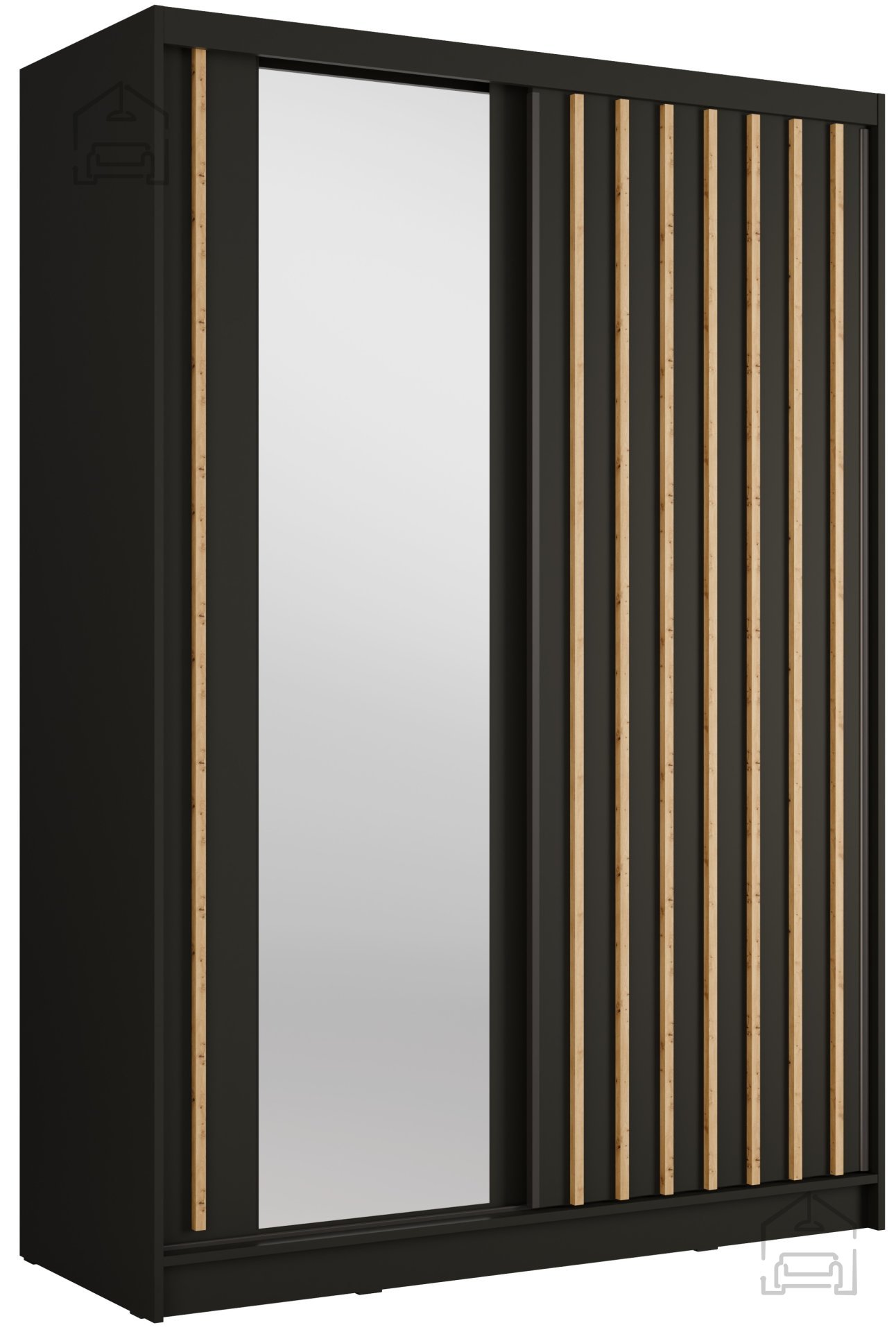 Garderobna omara z drsnimi vrati Aluna 10 znamke Meblosiek je zasnovana za tiste, ki cenijo urejen prostor, preprosto uporabo in sodoben videz. S svojo kombinacijo barv črna/artisan hrast ustvarja prijetno ravnovesje med modernim minimalizmom in toplino lesa. Drsna vrata omogočajo, da omaro brez težav postavite tudi v ožji hodnik ali spalnico, saj pri odpiranju ne zahtevajo dodatnega prostora.