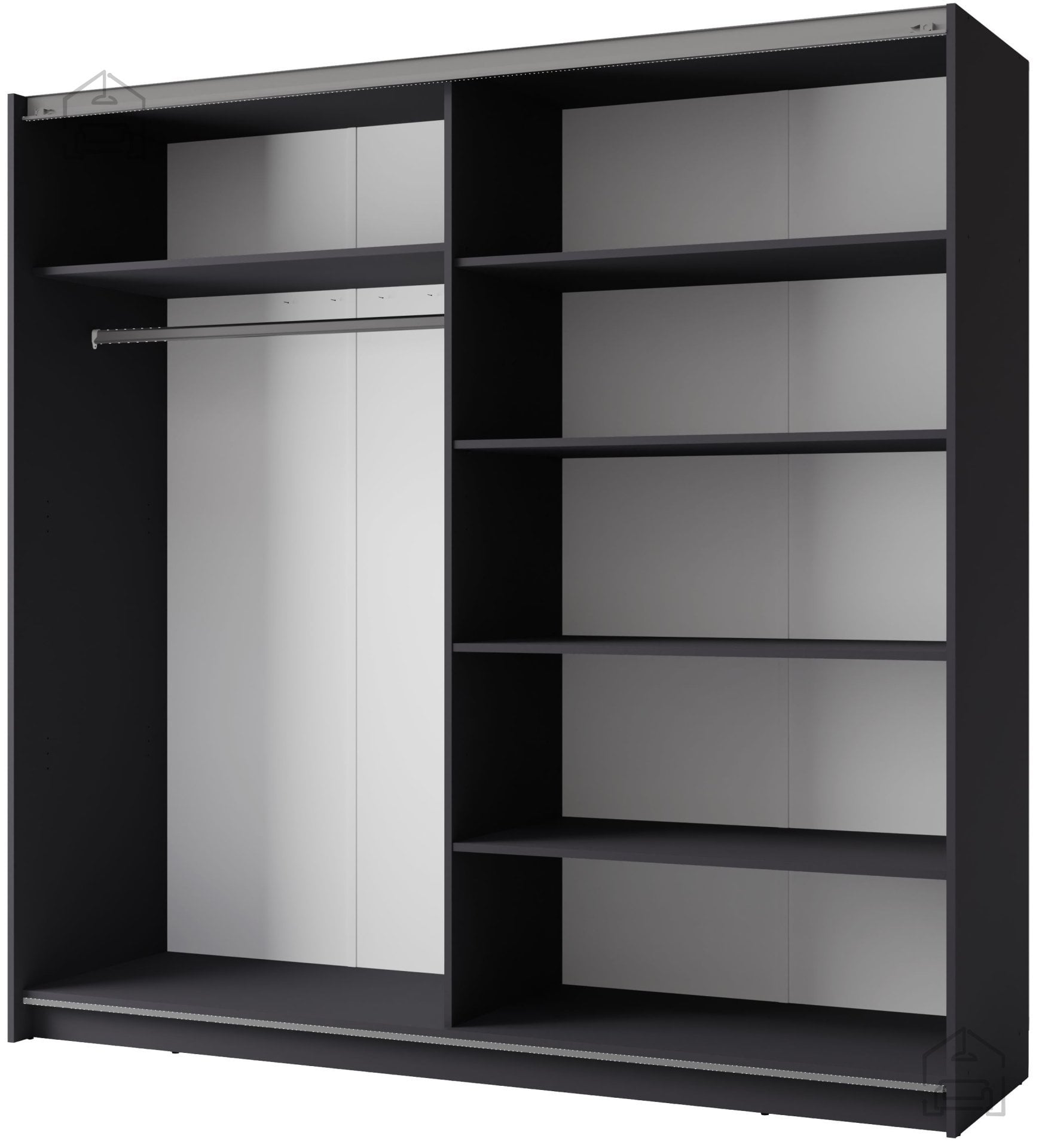 V notranjosti omare se skriva premišljeno razporejen prostor, ki omogoča optimalno organizacijo garderobe. Omara vsebuje pet polic, ki ponujajo dovolj prostora za zložena oblačila, dodatke in škatle. Na drugi strani je prostor za obešanje oblačil, primeren za plašče, srajce ali obleke. Kombinacija polic in obešalnega dela omogoča prilagoditev različnim potrebam uporabnikov, kar omaro Arsala 11 naredi izjemno praktično rešitev za vsak dom.