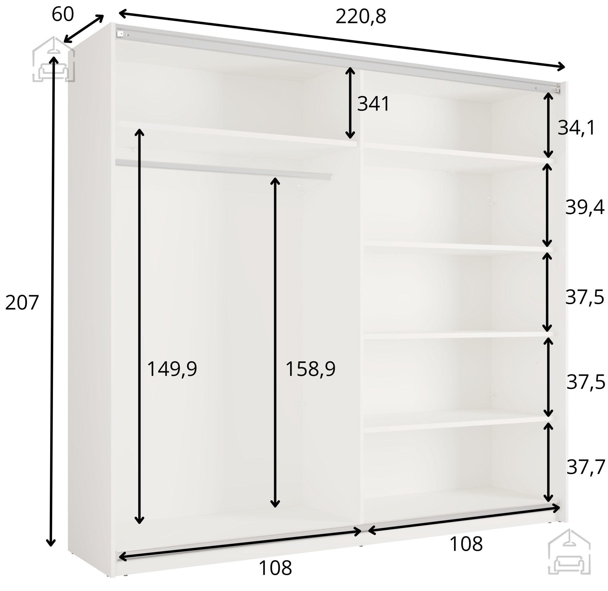 Ta omara predstavlja ravnovesje med estetiko in uporabnostjo. Zanesljivi materiali, kakovostna izdelava in brezčasna barvna zasnova poskrbijo, da bo kos pohištva služil dolga leta. Garderobna omara z drsnimi vrati Luxora 220 cm – Meblosiek je zato več kot le prostor za shranjevanje – je element, ki dopolnjuje značaj vašega doma.