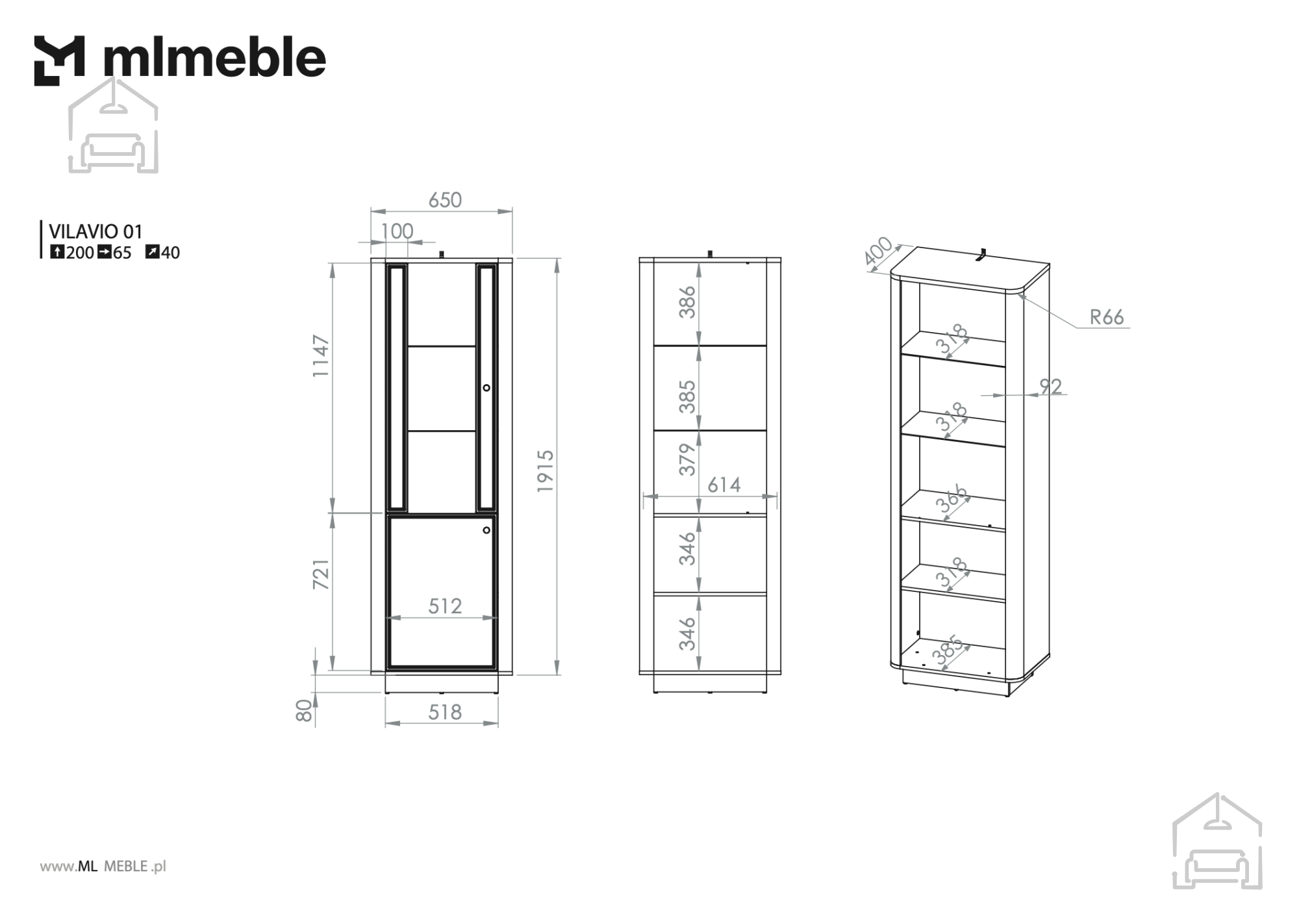 Model Vilavio 01 je primeren za dnevne sobe, kjer lahko služi kot razstavna omara za dekorativne predmete, knjige ali steklenino. V spalnici pa je lahko elegantno dopolnilo garderobnemu prostoru, saj omogoča shranjevanje dodatkov, dišav ali tekstila. Zaradi uravnotežene višine in globine se lepo ujema z nižjimi komodami ali televizijskimi omaricami iz iste linije.