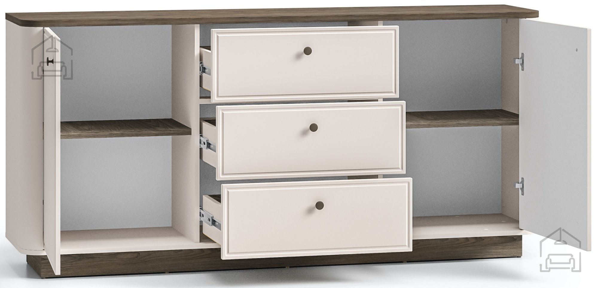Komoda Vilavio 03 – ML Meble združuje funkcionalnost, estetiko in kakovostno izdelavo. Z njo boste v svoj dom vnesli pridih poljske mizarske tradicije, dopolnjene s sodobnim občutkom za oblikovanje. Njen harmoničen videz, trpežni materiali in premišljene podrobnosti jo delajo vsestransko izbiro za vsak dom, kjer so pomembni red, toplina in eleganca.
