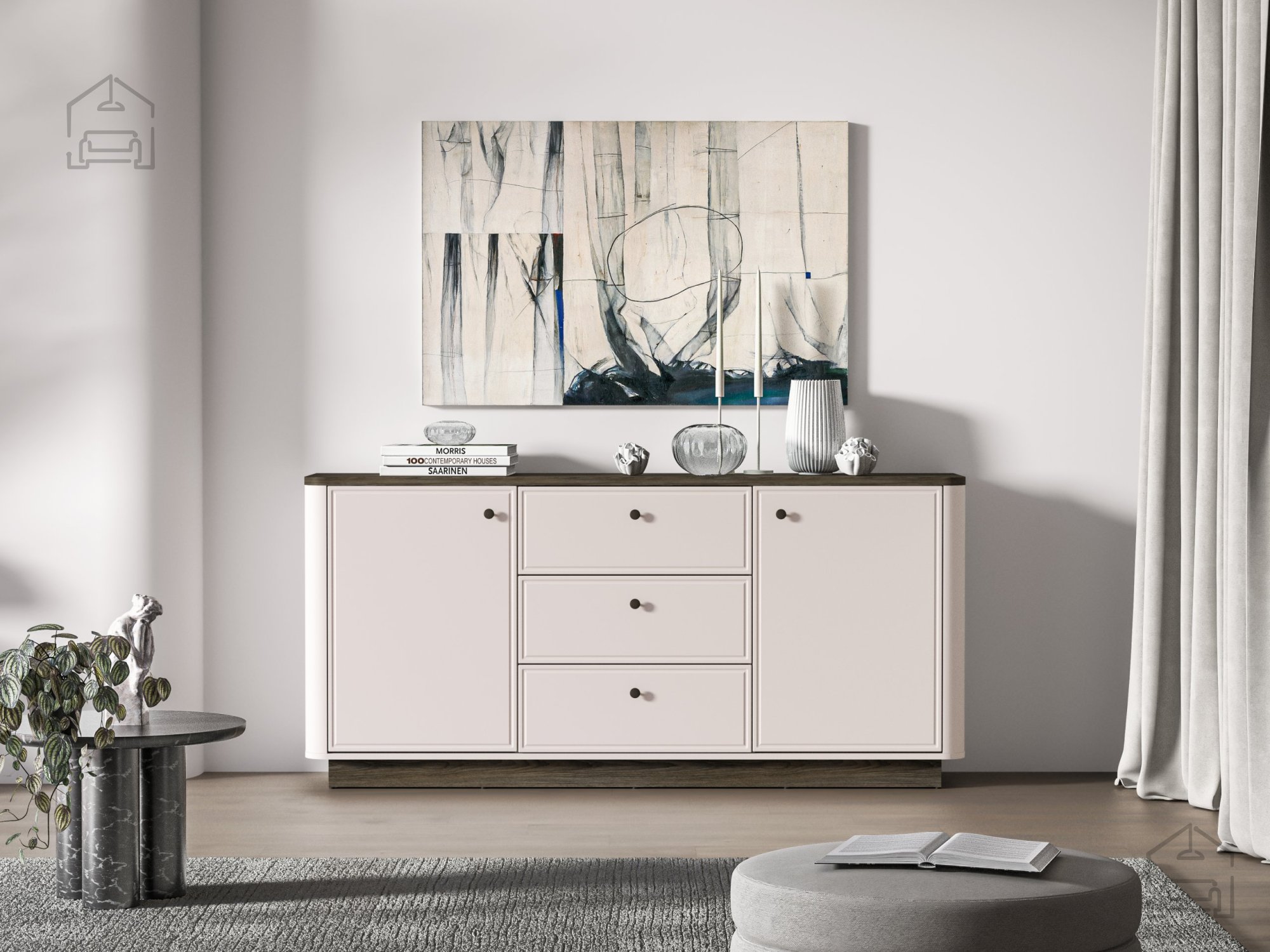 Komoda Vilavio 03 je zasnovana za večnamensko uporabo. V dnevni sobi lahko služi kot prostor za shranjevanje in dekorativni element pod televizorjem ali ogledalom. V spalnici pa nudi praktičen prostor za perilo, posteljnino ali dodatke. Zaradi uravnoteženega dizajna se lepo ujema z drugimi pohištvenimi elementi serije Vilavio, kar omogoča dosledno in estetsko celovito ureditev prostora.