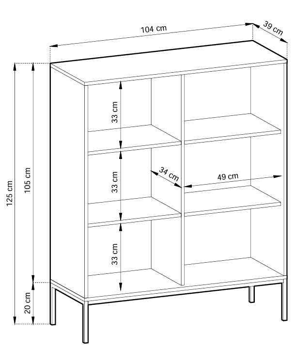 Komoda Nova K104 ponuja dovolj prostora za shranjevanje raznovrstnih predmetov – od dokumentov, tekstila do dekorativnih dodatkov. Zaradi premišljeno razporejenih polic in predalov lahko notranjost komode prilagodite svojim potrebam. Njen uravnotežen videz omogoča, da se lepo ujame z različnimi slogi notranje opreme – od minimalističnega do rustikalnega.