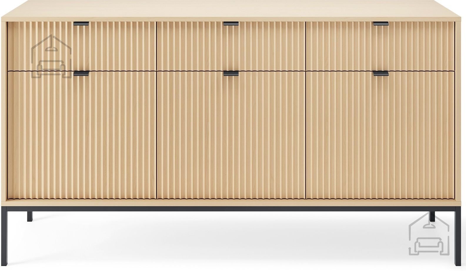 Komoda Nova KSZ154 v barvi hrast vicenza je popoln primer sodobnega pohištva, ki združuje toplino naravnega videza z minimalistično kovinsko eleganco. Izdelana je v tovarni Piaski na Poljskem, kjer se tradicija kakovostne izdelave pohištva prepleta z modernimi tehnologijami obdelave materialov. S svojimi uravnoteženimi proporcijami in premišljeno funkcionalnostjo je ta komoda primerna tako za dnevne sobe kot tudi za predsobe ali spalnice. Dimenzije 154x39x83 cm omogočajo optimalno razporeditev prostora, ne da bi komoda delovala preveliko ali pretežko.