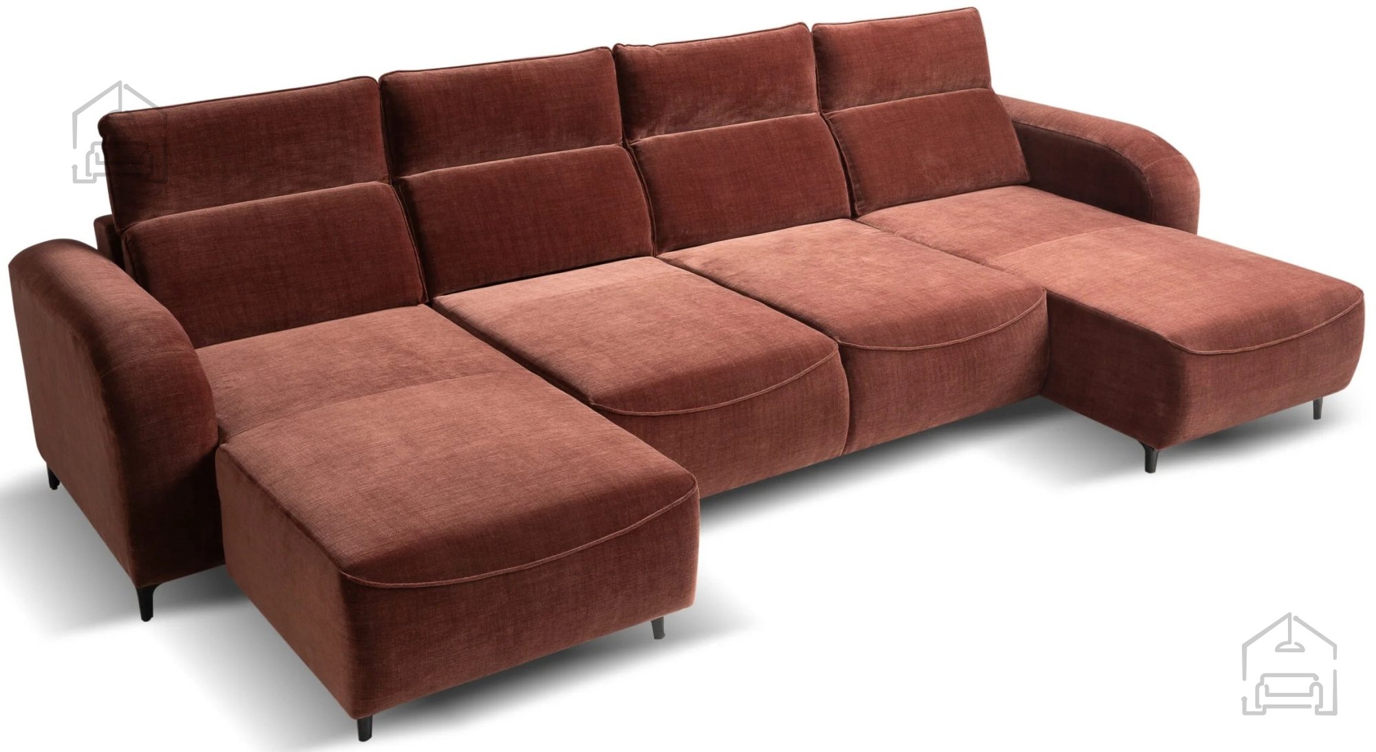 Poleg električnega podaljška ima sedežna garnitura Amari tudi druge praktične funkcije. Nastavljivi vzglavniki omogočajo individualno prilagoditev višine in naklona, kar povečuje ergonomsko udobje med sedenjem. Vgrajena posoda za posteljnino ponuja dodaten prostor za shranjevanje odej, blazin ali posteljnine, kar je posebej uporabno v manjših stanovanjih. Mehanizem tipa Dolphin omogoča preprosto raztegovanje in zlaganje, zato je prehod iz sedežne v ležišče hiter in brez napora.