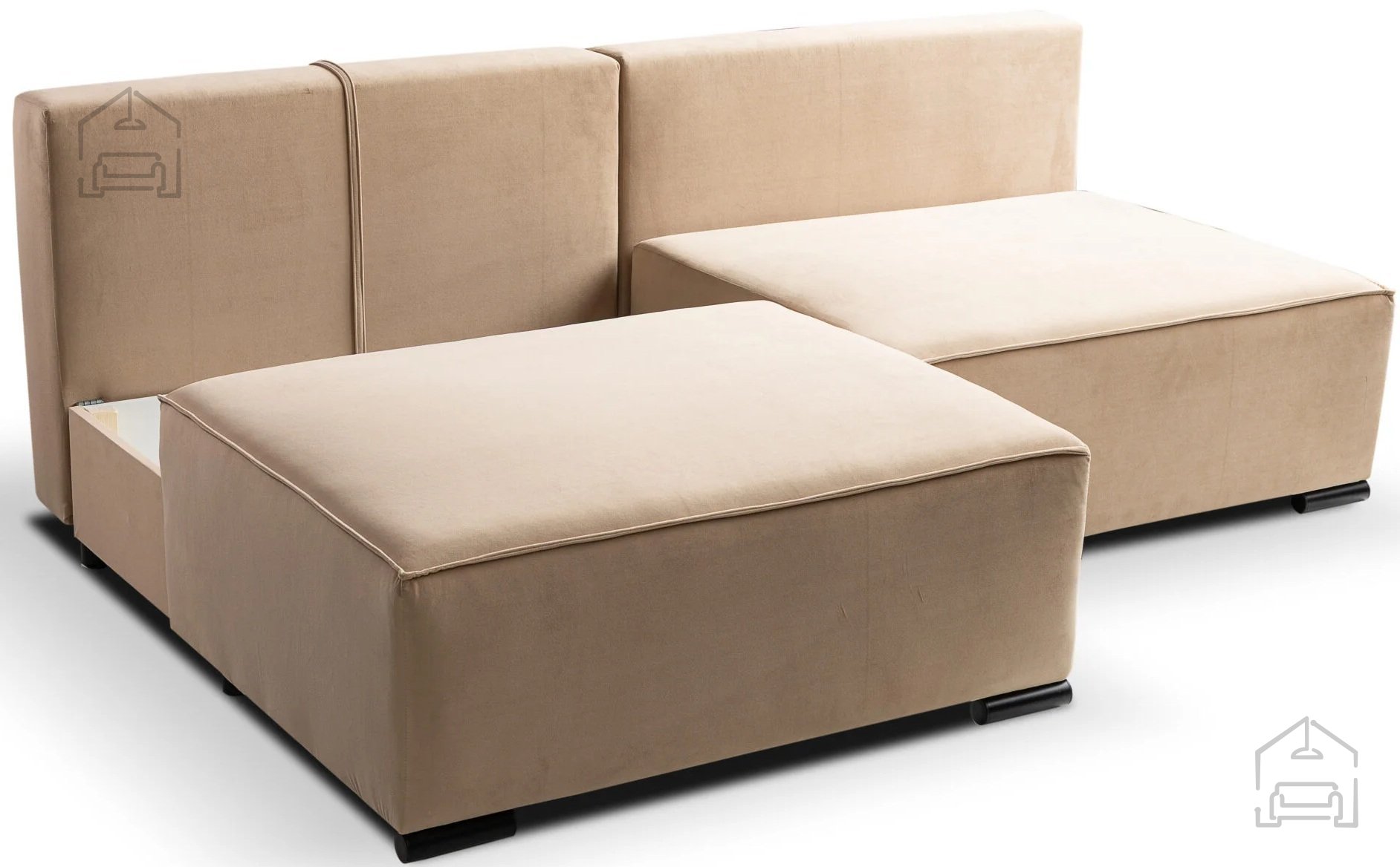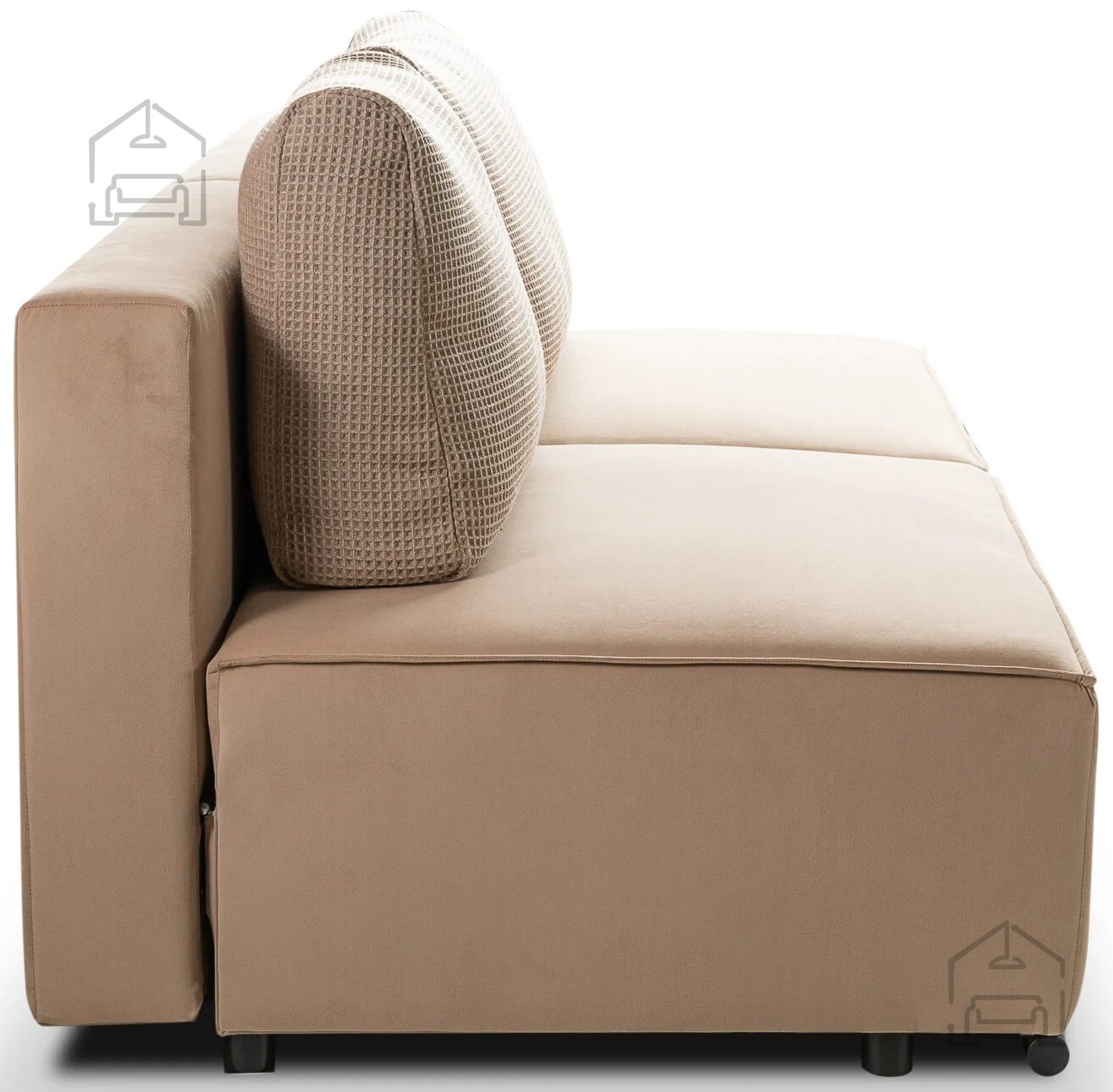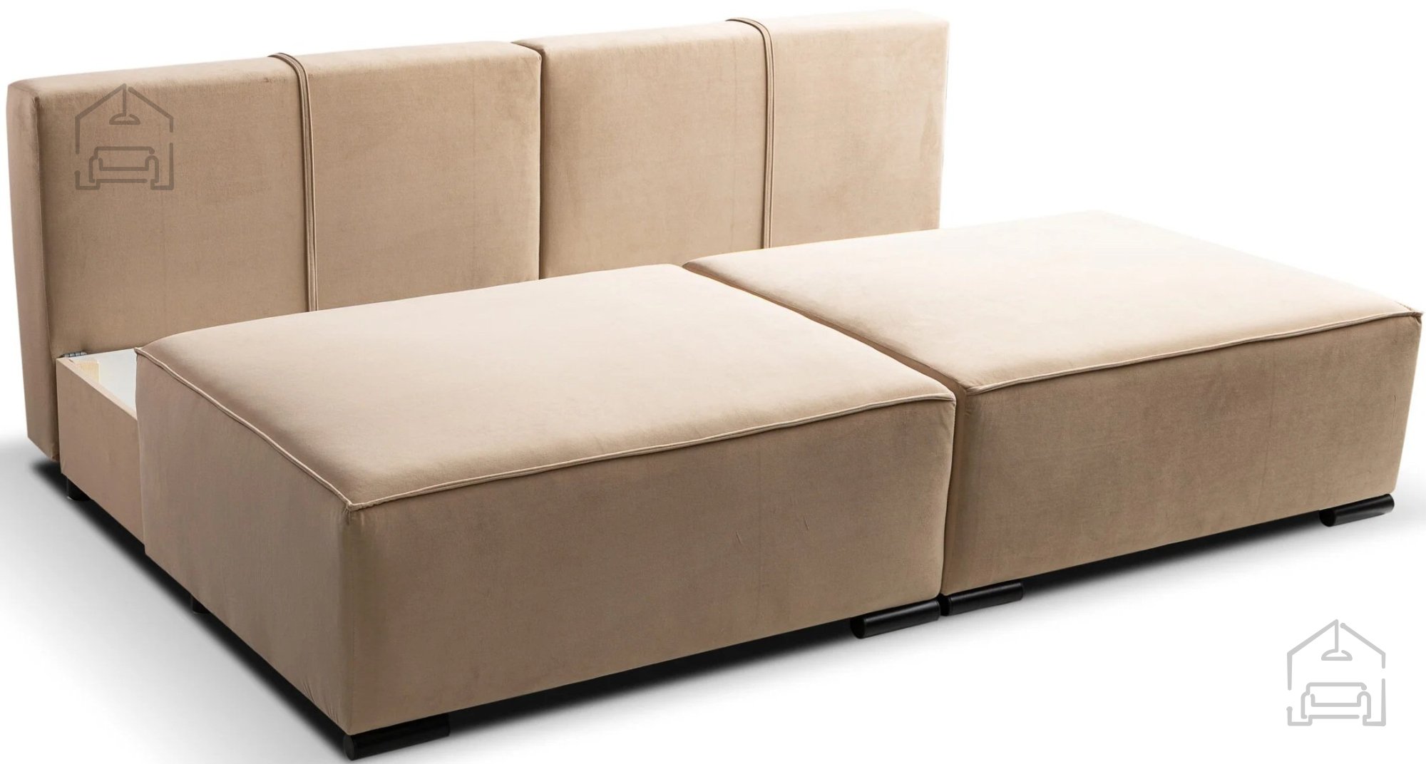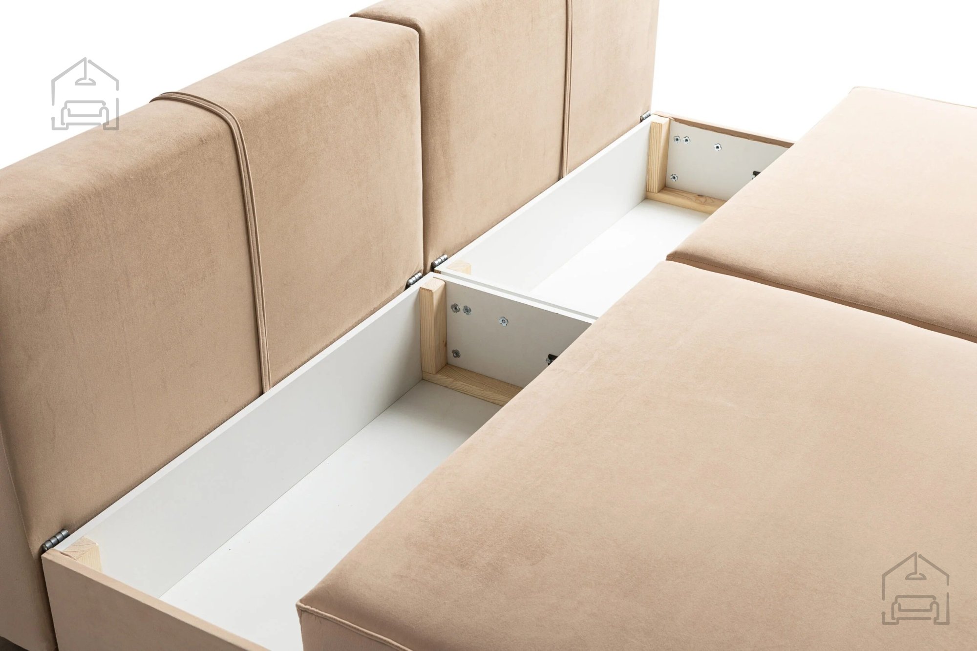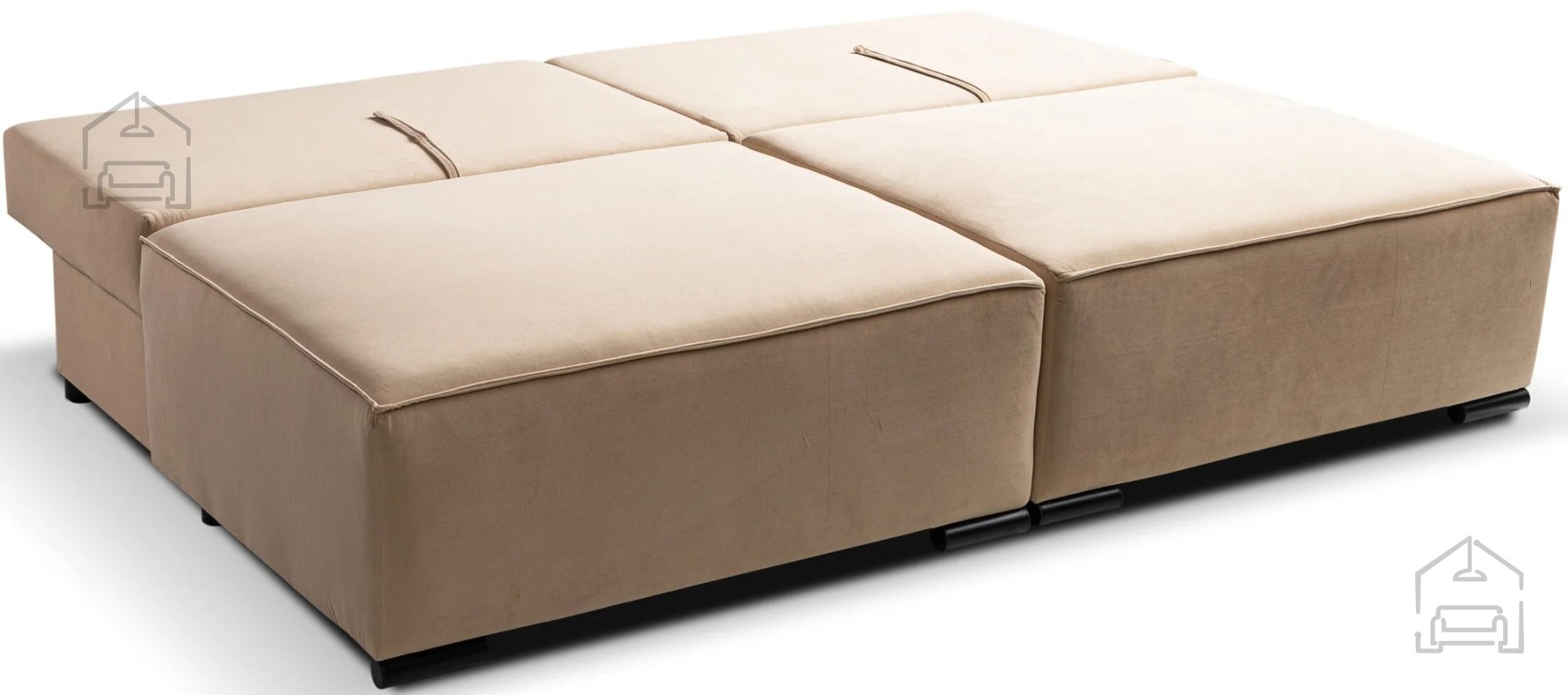 Pod sediščem se nahaja praktičen predal za posteljnino, kamor lahko shranite odeje, blazine ali posteljnino. Ta dodatek je še posebej uporaben v manjših stanovanjih, kjer je vsak centimeter prostora dragocen. Mehanizem je zasnovan tako, da raztegovanje poteka gladko in stabilno, brez sunkovitih gibov ali potrebe po večji sili.