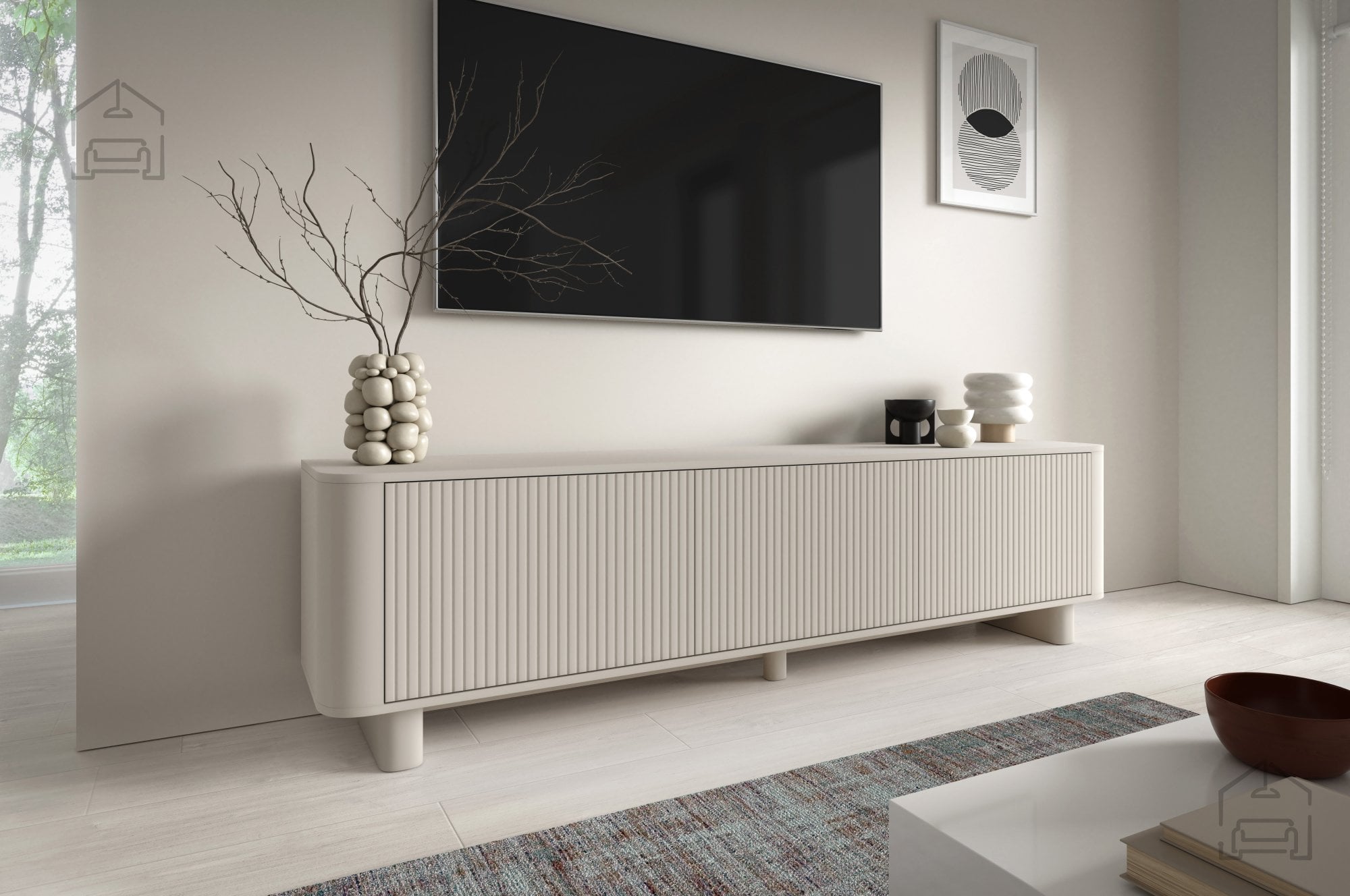 TV komoda Trenza – PKMebel je odlična izbira za vse, ki iščejo sodobno, elegantno in kakovostno rešitev za opremo dnevne sobe. Njena premišljena zasnova, visoka izdelava in brezčasna barva kašmir ustvarjajo popolno ravnovesje med estetiko in uporabnostjo – kos pohištva, ki navdušuje s preprostostjo in detajli.