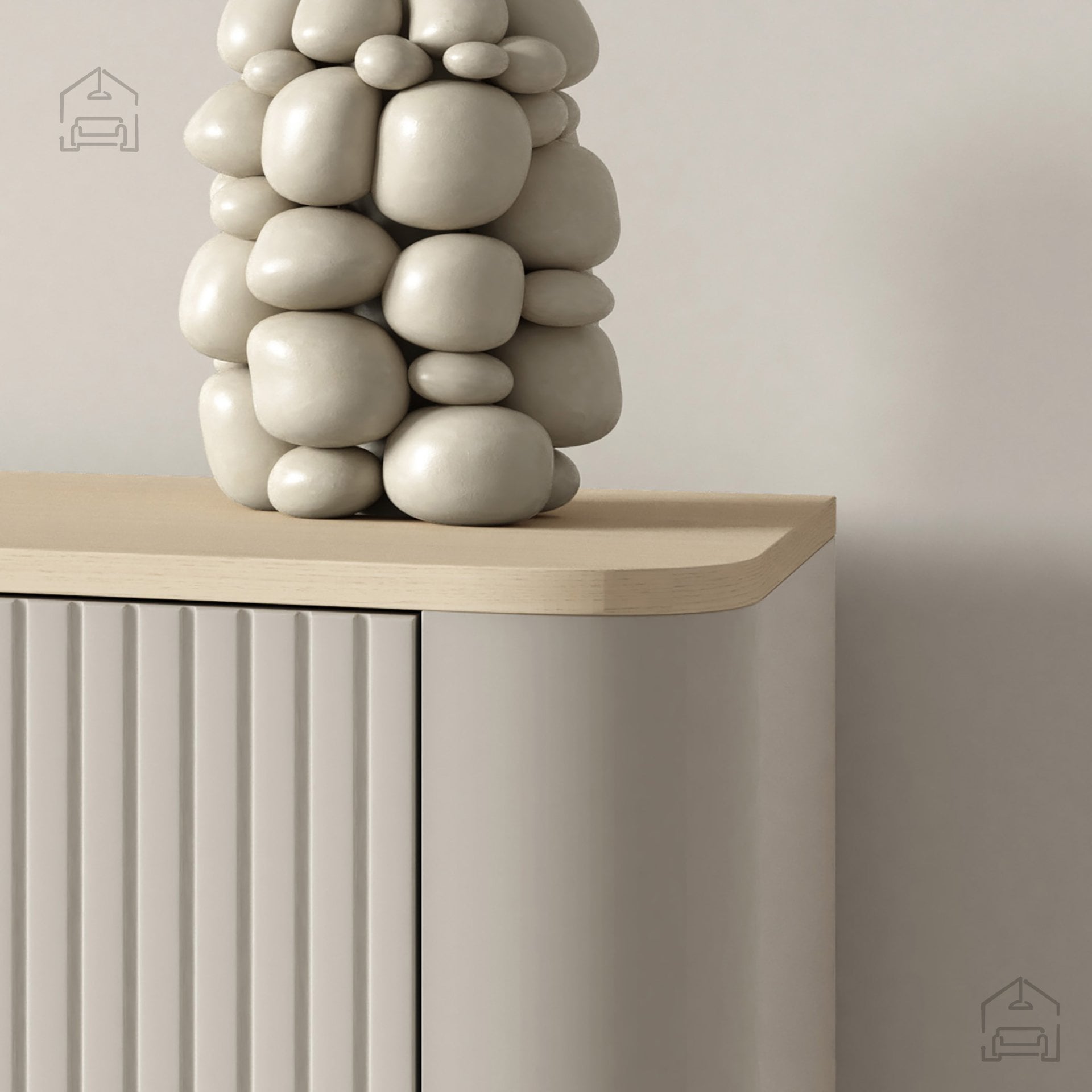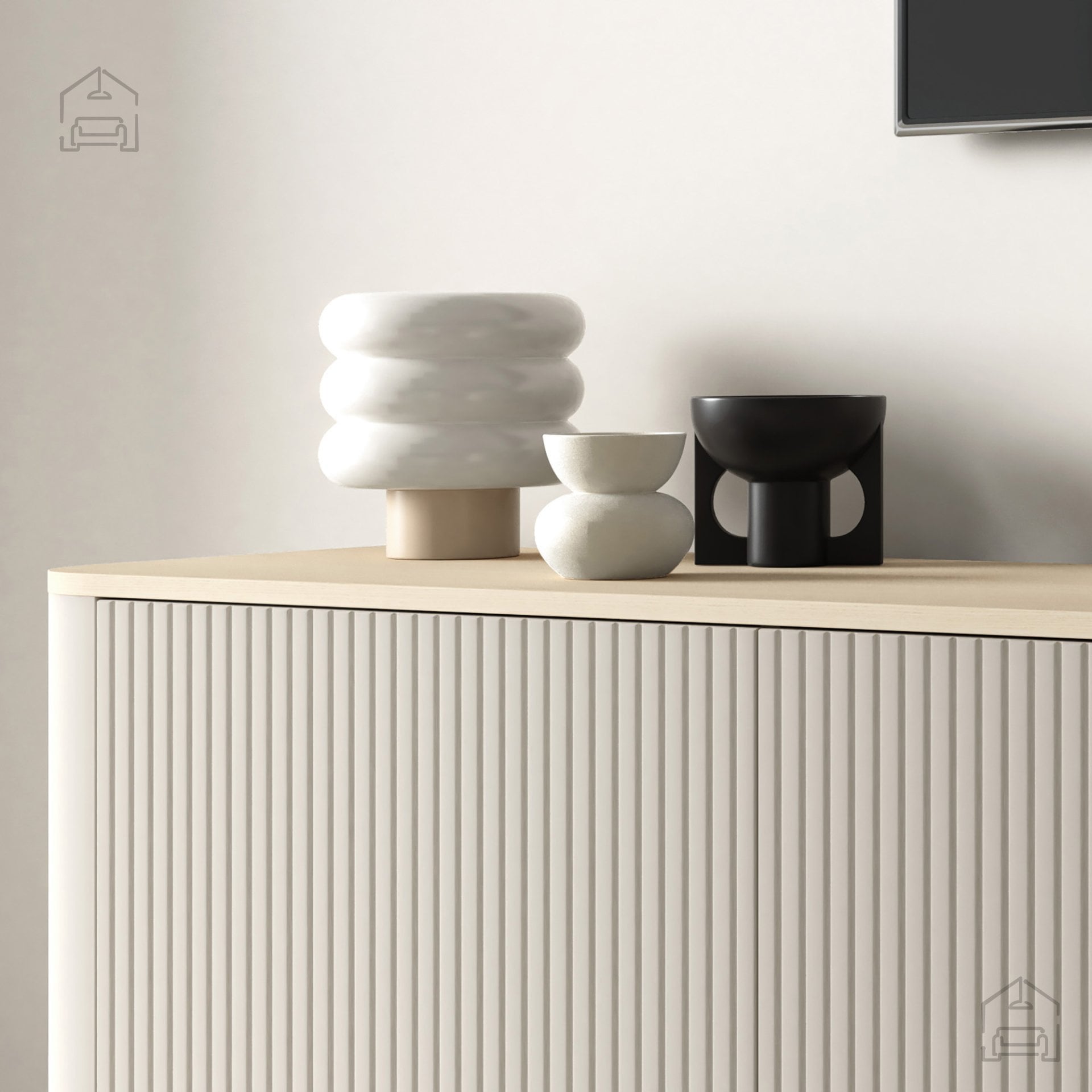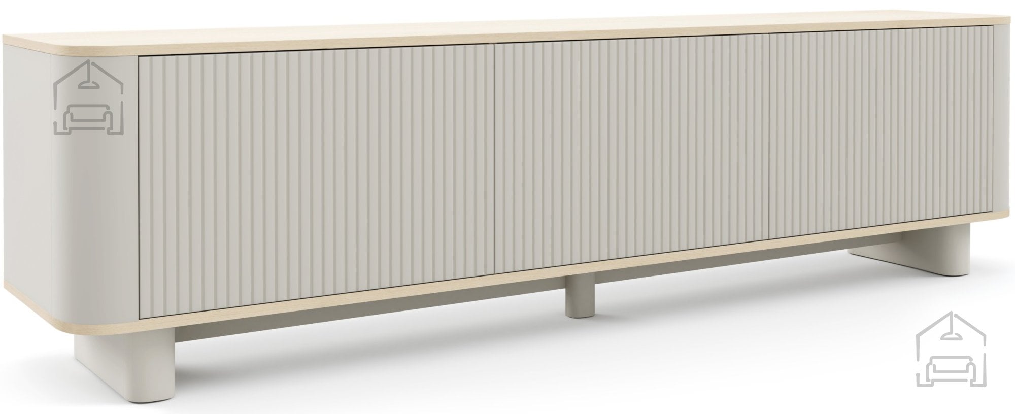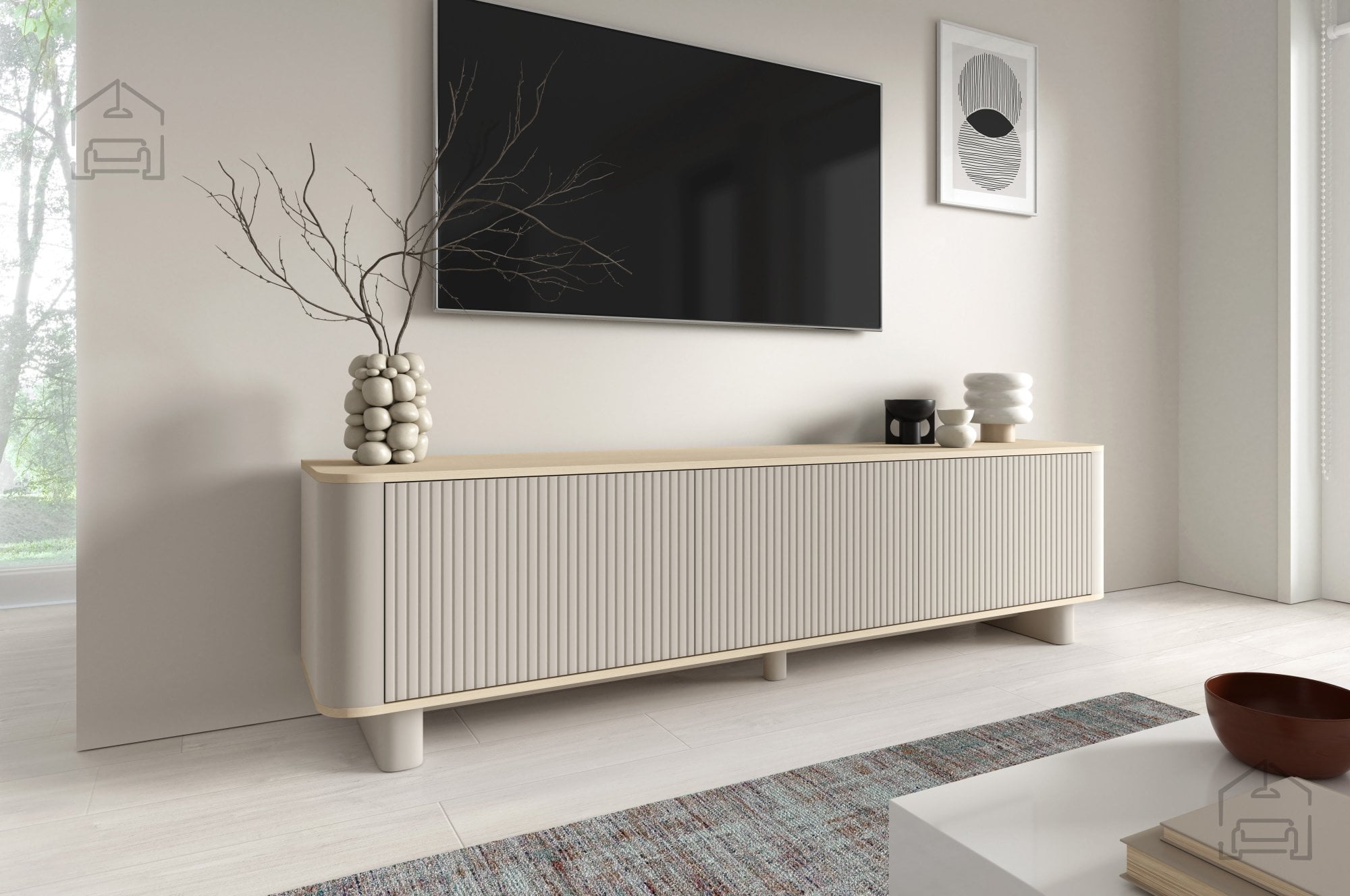 Zaobljene noge dodajajo komodi Trenza prepoznaven oblikovni poudarek. Njihova nežna, lepo zaobljena oblika kontrastira z ravnimi linijami ohišja, kar ustvarja harmonično ravnovesje med funkcionalnostjo in estetiko. Ta detajl hkrati olajša čiščenje pod pohištvom ter prispeva k občutku lahkotnosti celotnega kosa. Preplet mehkih zaobljenih robov in strukturiranih lamel ustvarja izrazit, a uravnotežen sodoben videz.