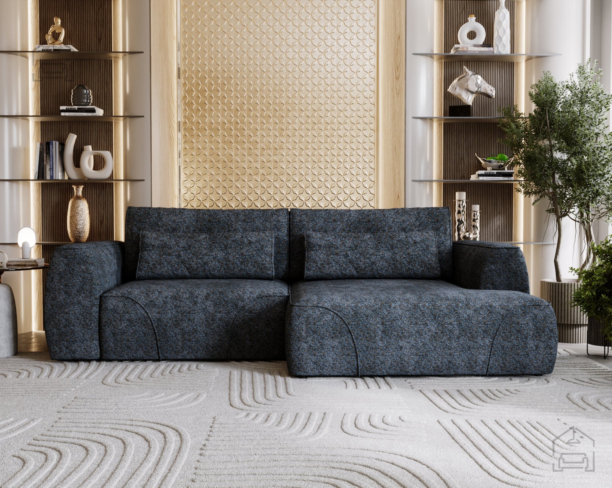 Z modernimi linijami in uravnoteženimi proporcijami se Kotna sedežna garnitura Polaris odlično ujema z različnimi notranjimi slogi – od minimalističnega do skandinavskega ali urbanega. Tkanina v nežnih odtenkih in čiste šive dopolnjuje prefinjena oblika naslonjal, kar ustvarja občutek topline in subtilne elegance. Nevsiljiv, a izrazit videz omogoča, da garnitura postane središčna točka prostora, ne da bi ga vizualno obtežila.