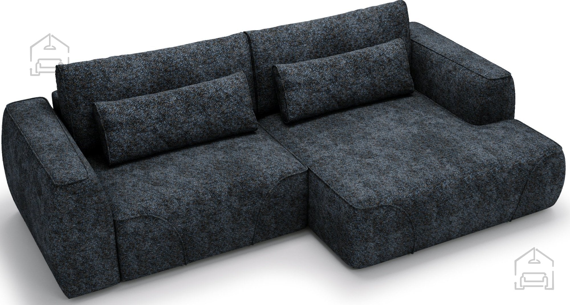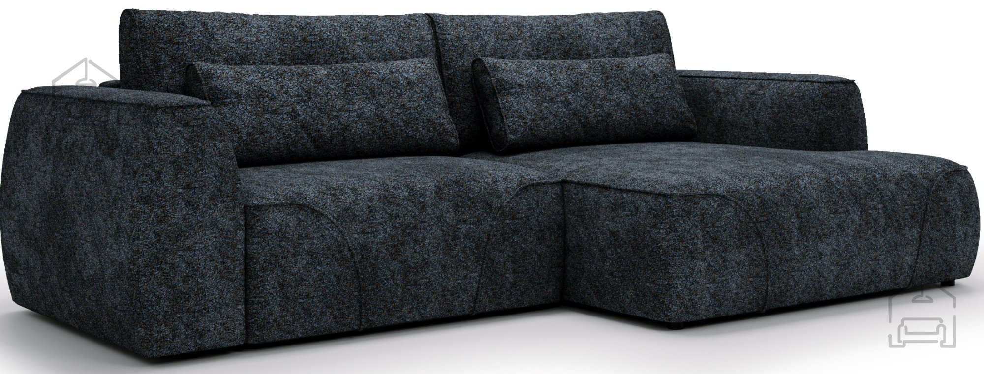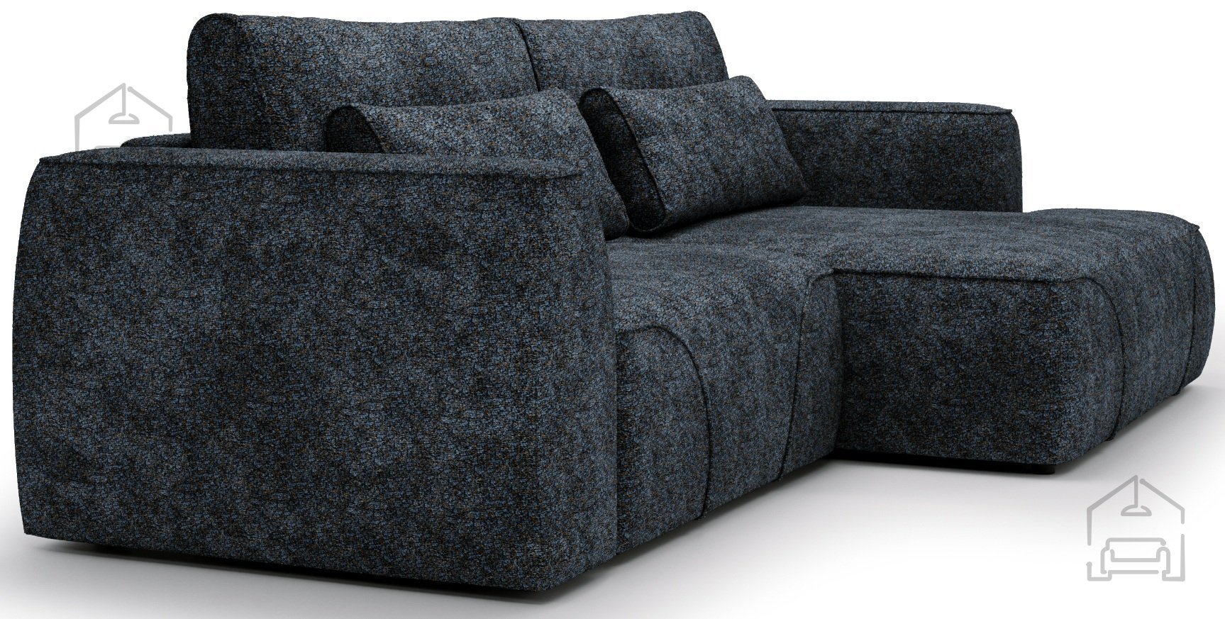 Dodatna prednost je tapeciran hrbtni del, ki omogoča, da garnituro postavite tudi sredi prostora, ne le ob steno. Model je na voljo v desni ali levi postavitvi, kar omogoča popolno prilagoditev razporeditvi vašega dnevnega prostora. Zaradi široke izbire barv tkanin lahko garnituro ujemate s preostalim pohištvom in slogom notranje opreme.