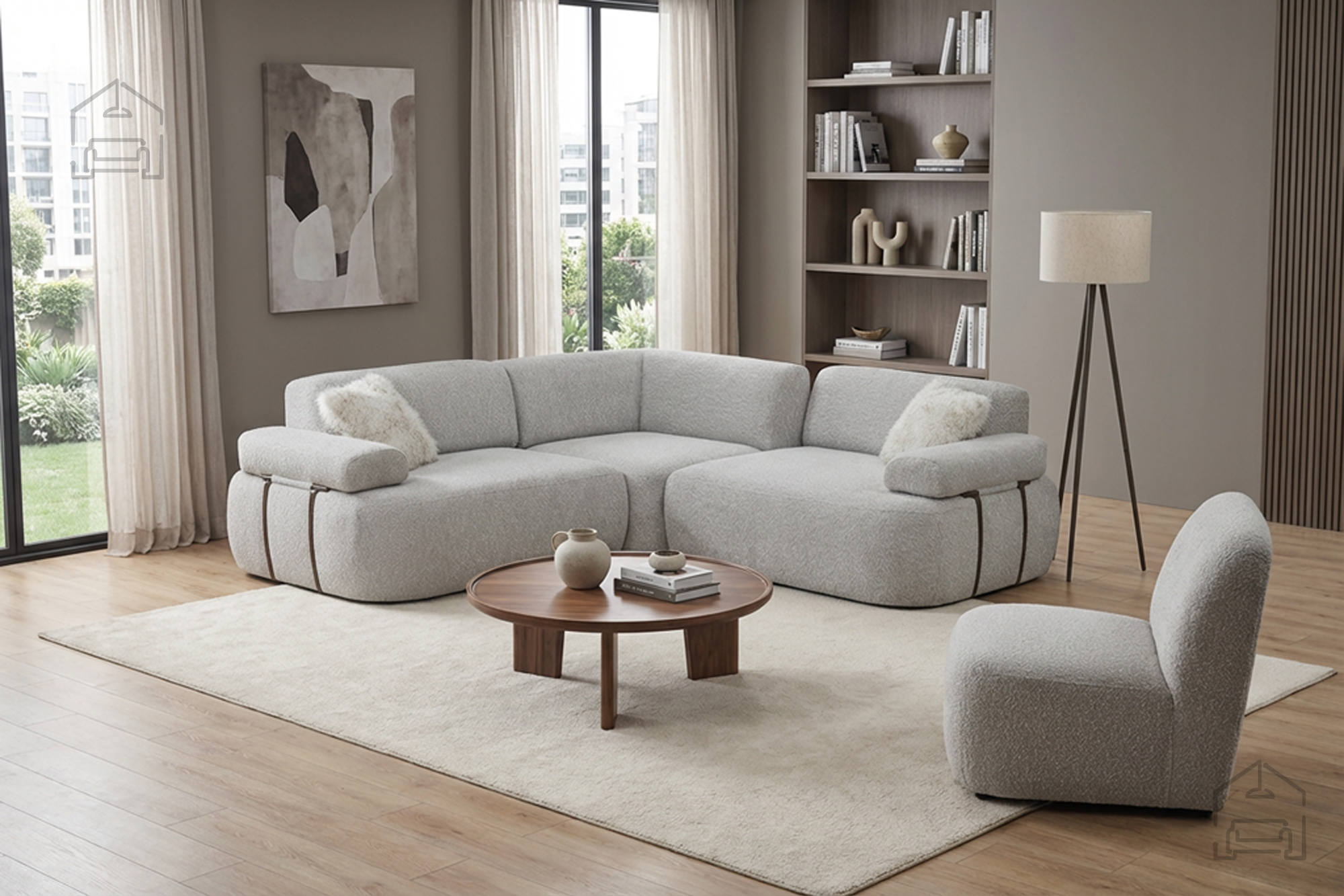 Kotna oblika omogoča učinkovito izrabo prostora – idealna je tako za večje dnevne sobe kot za odprte bivalne prostore, kjer ločuje območje za sedenje od jedilnega ali delovnega dela. Z vidika ergonomije in uporabnosti je Emir premišljen do zadnje podrobnosti, kar ga postavlja med izjemno priljubljene modele v sodobnih interierjih.