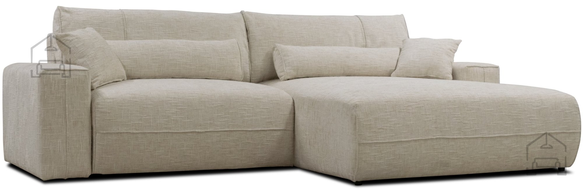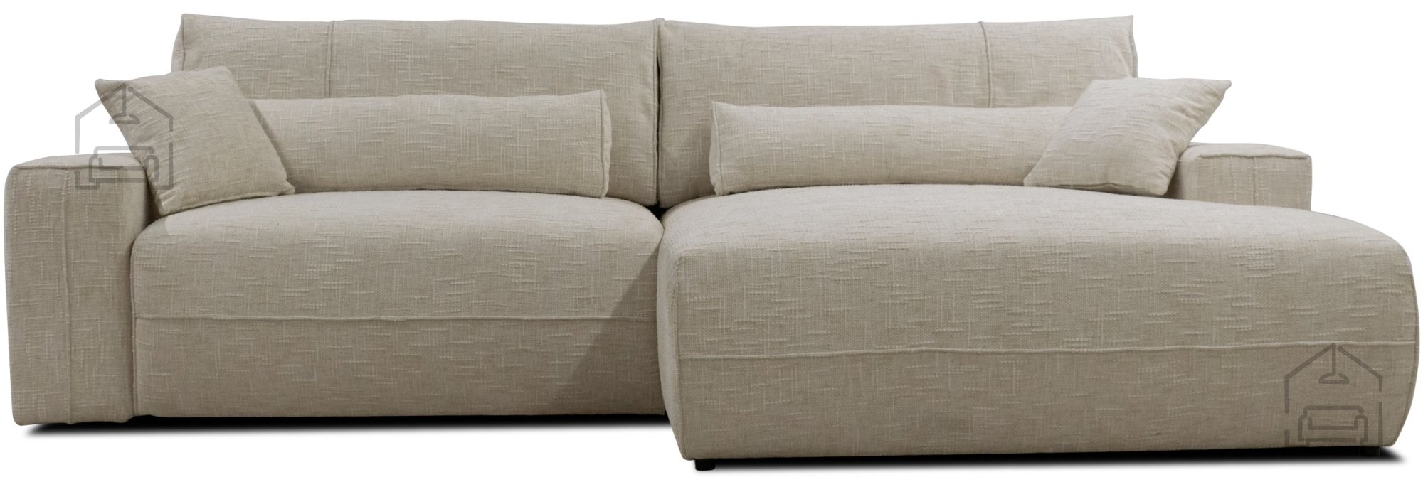 Kotna sedežna garnitura Derio ponuja več kot le udoben prostor za sedenje. Vgrajeni mehanizem Euro omogoča hitro in enostavno preoblikovanje garniture v posteljo z ležalno površino 223x130 cm. Ta funkcija je posebej uporabna v manjših stanovanjih ali kadar potrebujete dodatno ležišče za goste. Preoblikovanje poteka gladko in brez napora, zato je Derio odlična izbira za vsak dom, kjer je pomembna prilagodljivost.