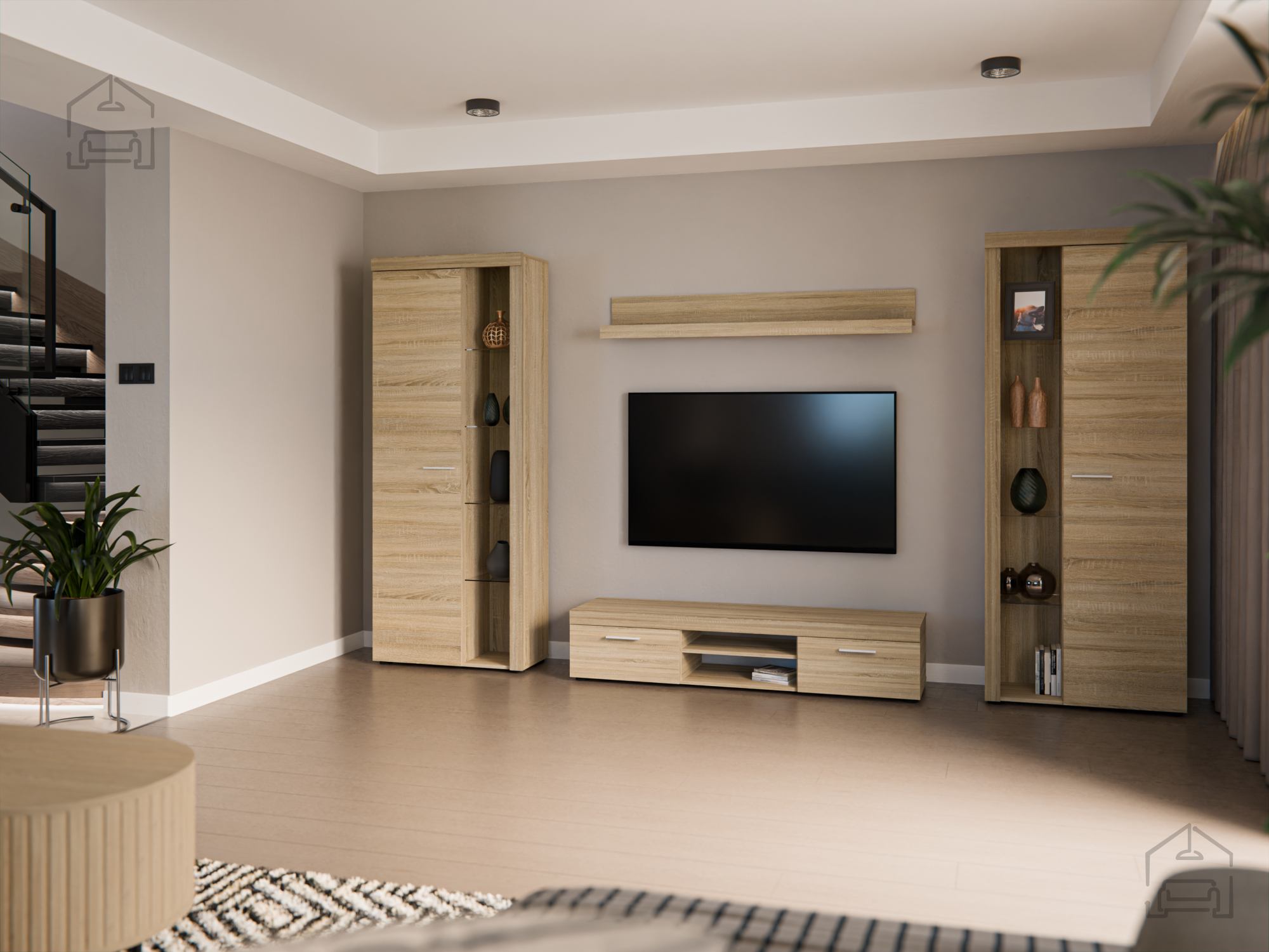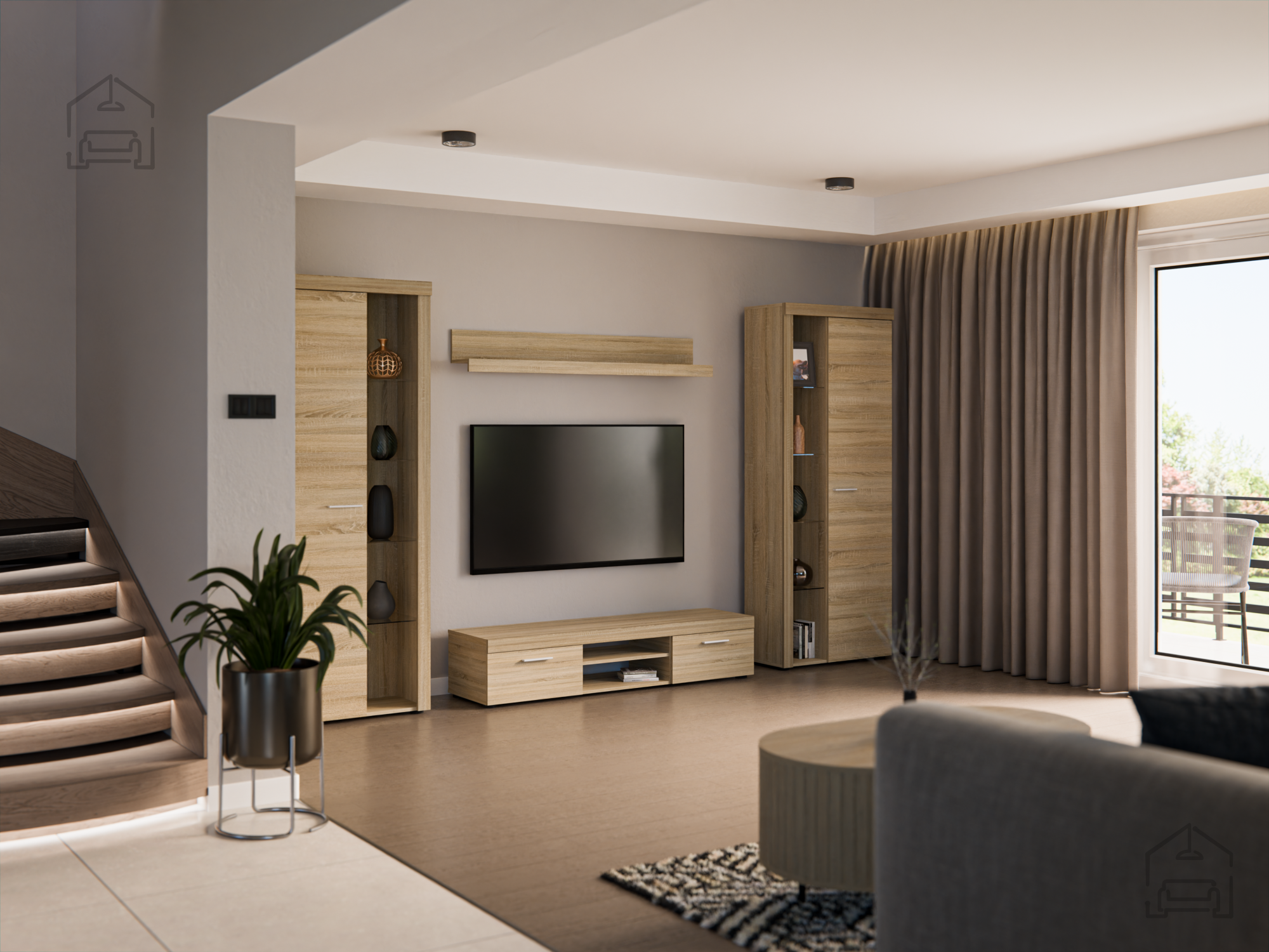 V sodobnem domu televizijski kotiček že dolgo ni več le prostor za ogled priljubljenih oddaj, temveč postaja osrednji del dnevne sobe, kjer se združujejo funkcionalnost, estetika in družabnost. Prav zato je pomembno, da je pohištvo, ki ga izberemo za ta prostor, premišljeno oblikovano ter omogoča udobno uporabo in estetsko skladnost z drugimi elementi notranje opreme. TV regal Rumba XL v barvi hrast sonoma s svojo uravnoteženo kombinacijo topline naravnega lesa in sodobne linije popolnoma izpolnjuje ta pričakovanja. Njegov impresiven videz dopolnjujejo premišljene dimenzije, ki zagotavljajo dovolj prostora za televizor, avdio-video naprave in osebne dekorativne dodatke.