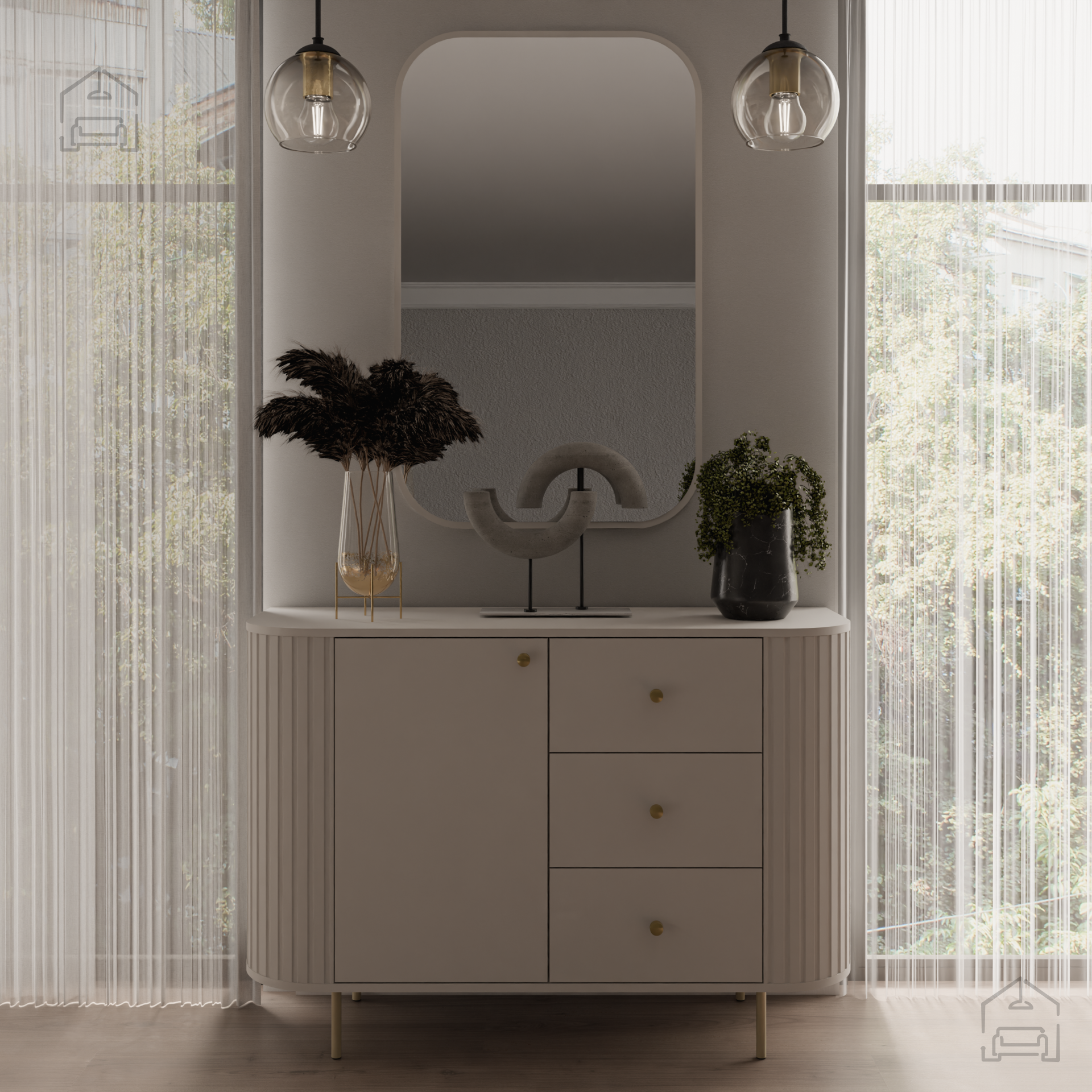 Komoda 1F3S Ovalio je odlična izbira za vse, ki iščejo ravnovesje med elegantnim videzom in praktično uporabnostjo. Njena kombinacija preprostih linij, svetlega odtenka in robustnega materiala omogoča dolgotrajno uporabo brez kompromisov pri estetiki. Ne glede na to, ali jo postavite v dnevno sobo, spalnico ali predsobo, bo ta komoda prispevala k urejenemu in harmoničnemu videzu vašega doma.