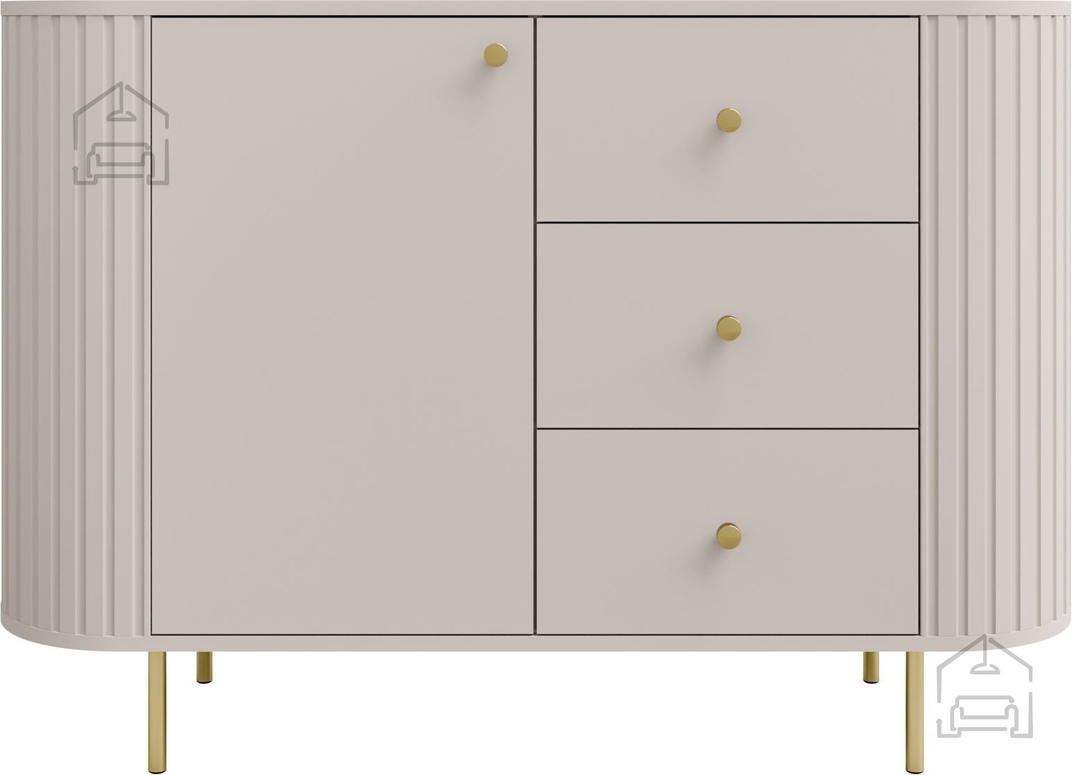 Ta elegantna komoda v peščeno bež barvi združuje sodobno obliko, praktično razporeditev in kakovostno izdelavo, ki jo zagotavlja priznani poljski proizvajalec Stolarz-Lempert. Model Komoda 1F3S Ovalio z dimenzijami 123×42,3×85,4 cm je odličen kos pohištva za dnevno sobo, spalnico ali predsobo. Njegova uravnotežena višina in širina omogočata enostavno umeščanje v različne prostore, hkrati pa ponuja dovolj prostora za shranjevanje vsakodnevnih predmetov.