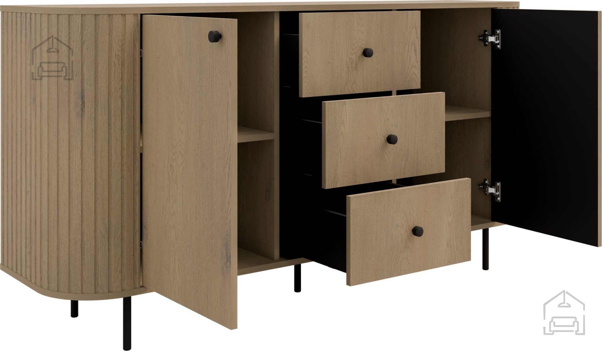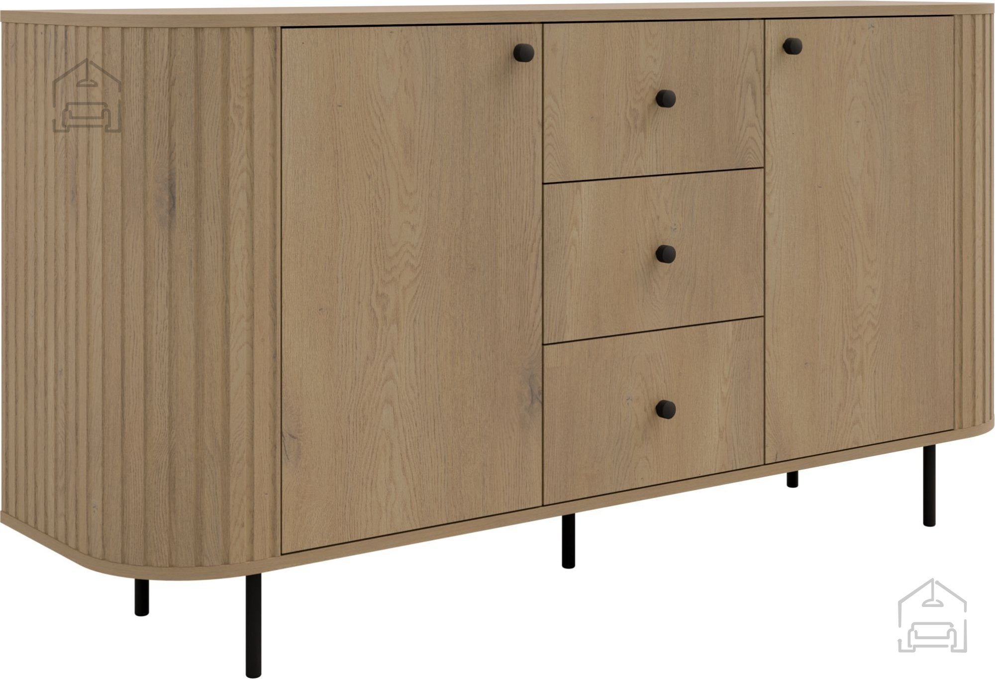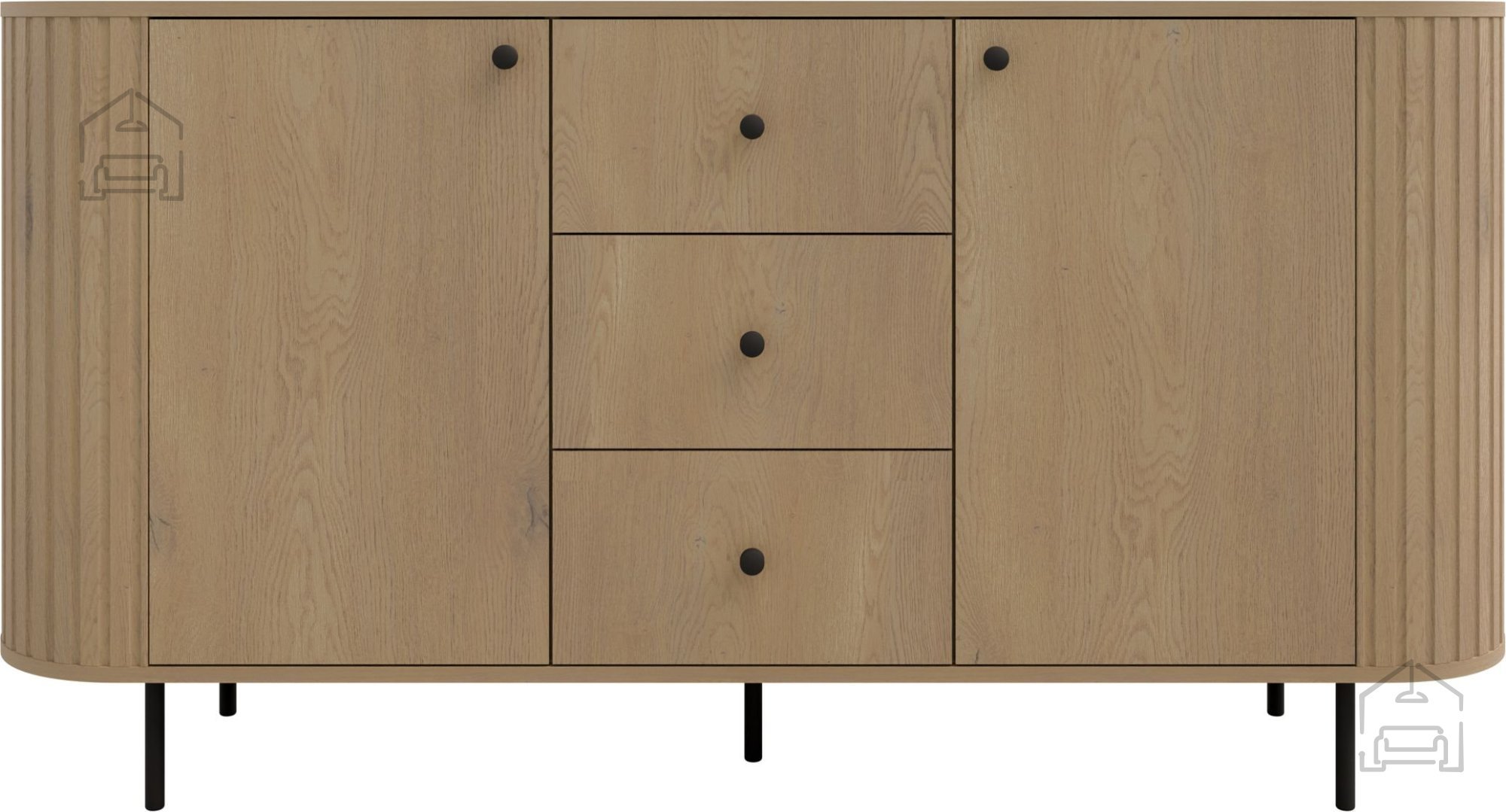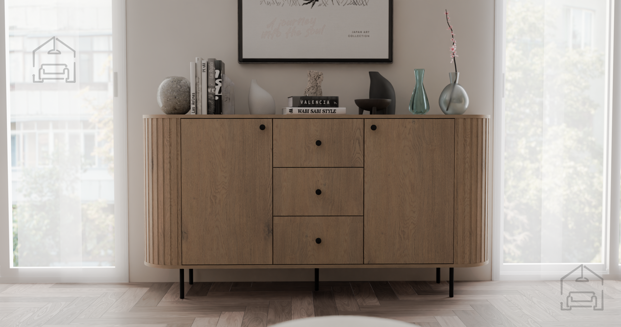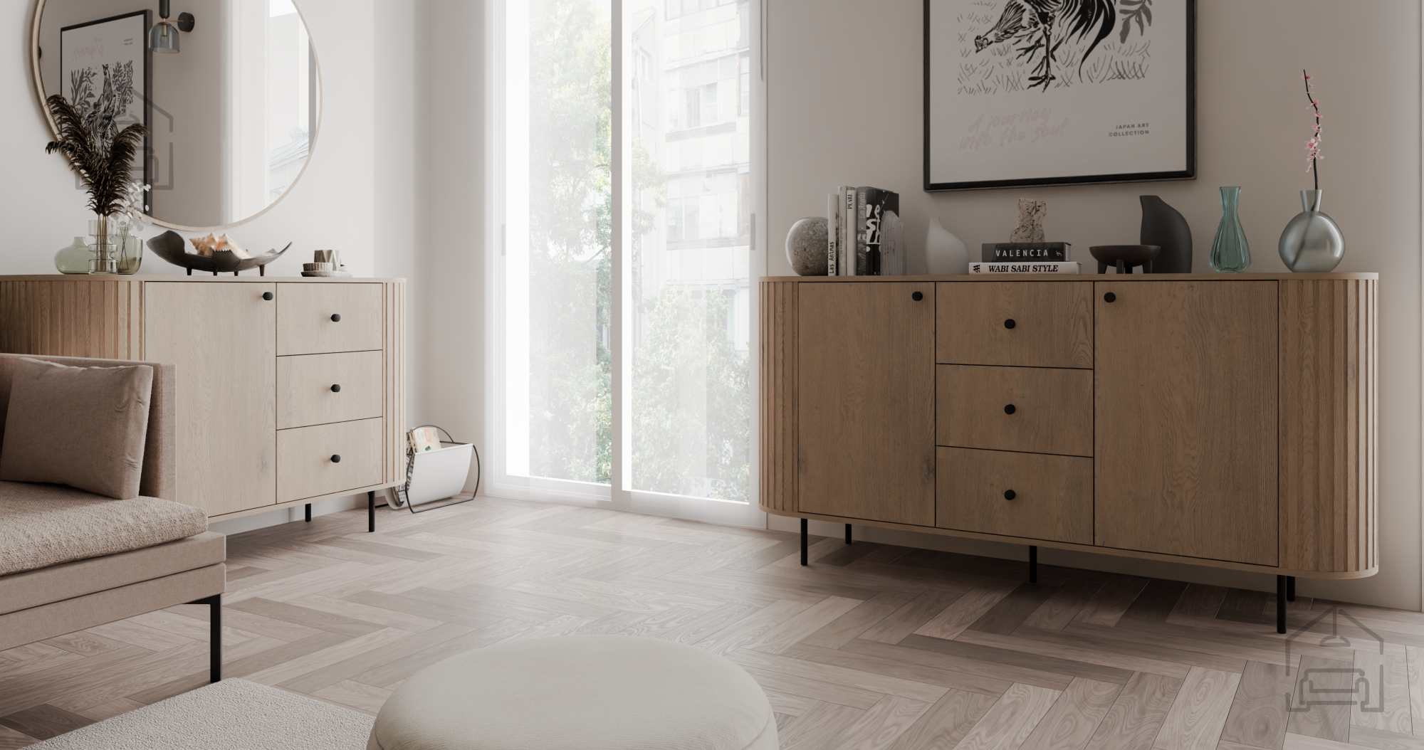 Komoda 2F3S Ovalio – Stolarz-Lempert je kakovosten in estetsko dovršen kos pohištva, ki združuje trpežnost, praktičnost in eleganten videz. Z dimenzijami 164,6×42,3×85,4 cm se odlično prilega različnim prostorskim zasnovam, barva cremona hrast pa poskrbi za prijeten in topel ambient. Izdelana na Poljskem iz laminirane plošče debeline 16 mm predstavlja zanesljivo izbiro za vse, ki iščejo uravnoteženo kombinacijo funkcionalnosti in oblikovne prefinjenosti. Komoda Ovalio ni le prostor za shranjevanje – je estetski poudarek doma, ki izraža občutek reda, topline in brezčasne elegance.