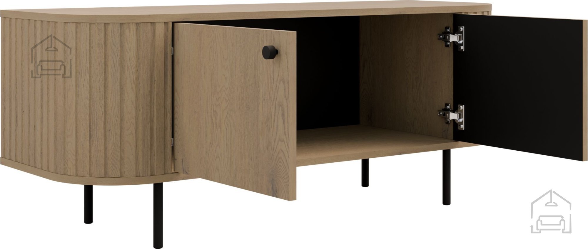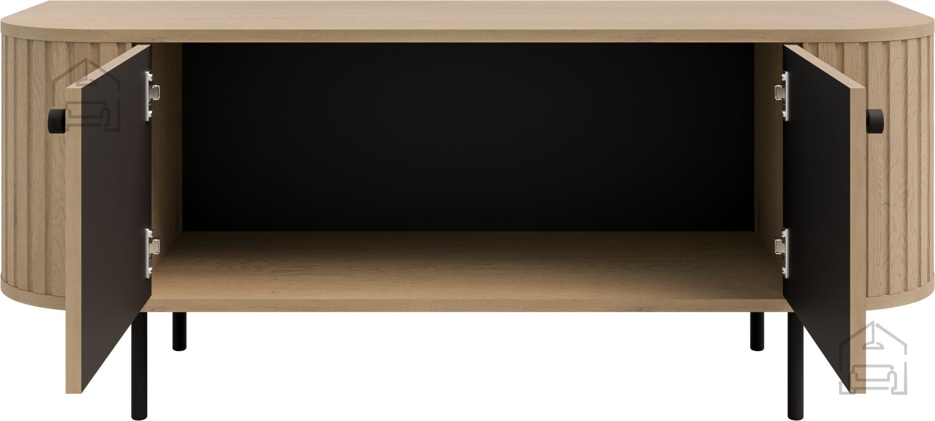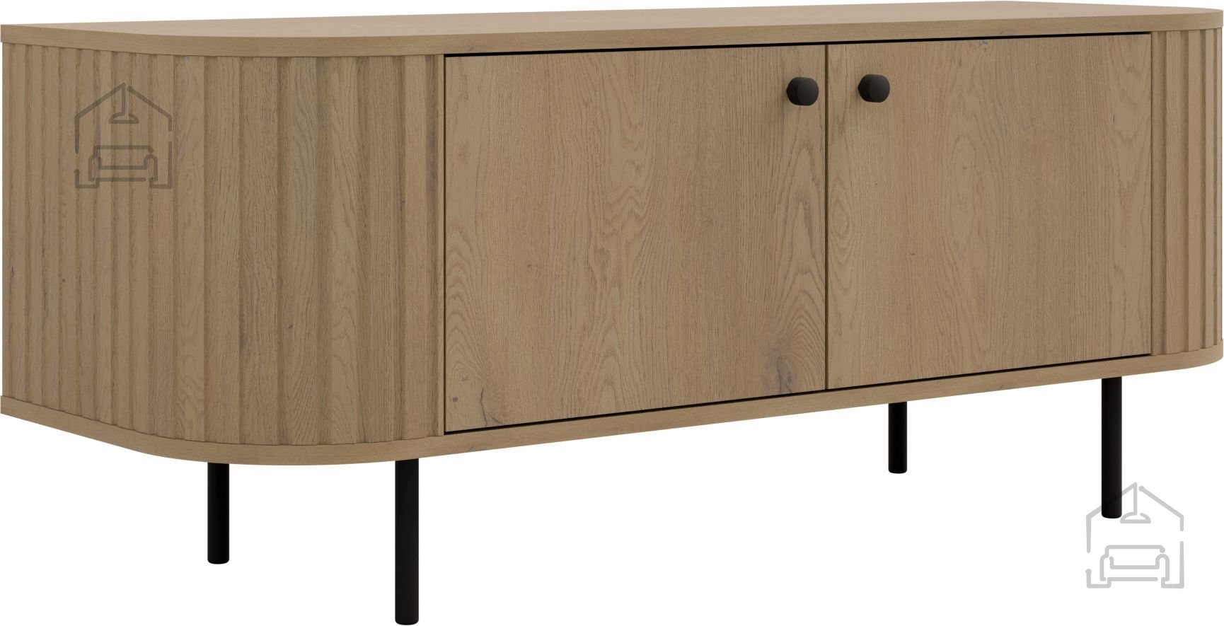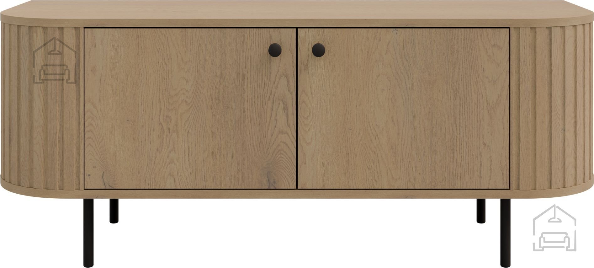 RTV komoda 2F Ovalio je zasnovana za praktično shranjevanje in organizacijo multimedijskih naprav. Njena širina 123 cm omogoča stabilno postavitev televizorja, medtem ko globina 42,3 cm zagotavlja dovolj prostora za predvajalnike, igralne konzole ali zvočne sisteme. Višina 50 cm omogoča udobno gledanje iz kavča ali fotelja. Komoda vključuje dva zaprta predala, ki nudita prostor za shranjevanje kablov, daljinskih upravljalnikov in drugih dodatkov, kar pripomore k urejenemu videzu dnevne sobe.