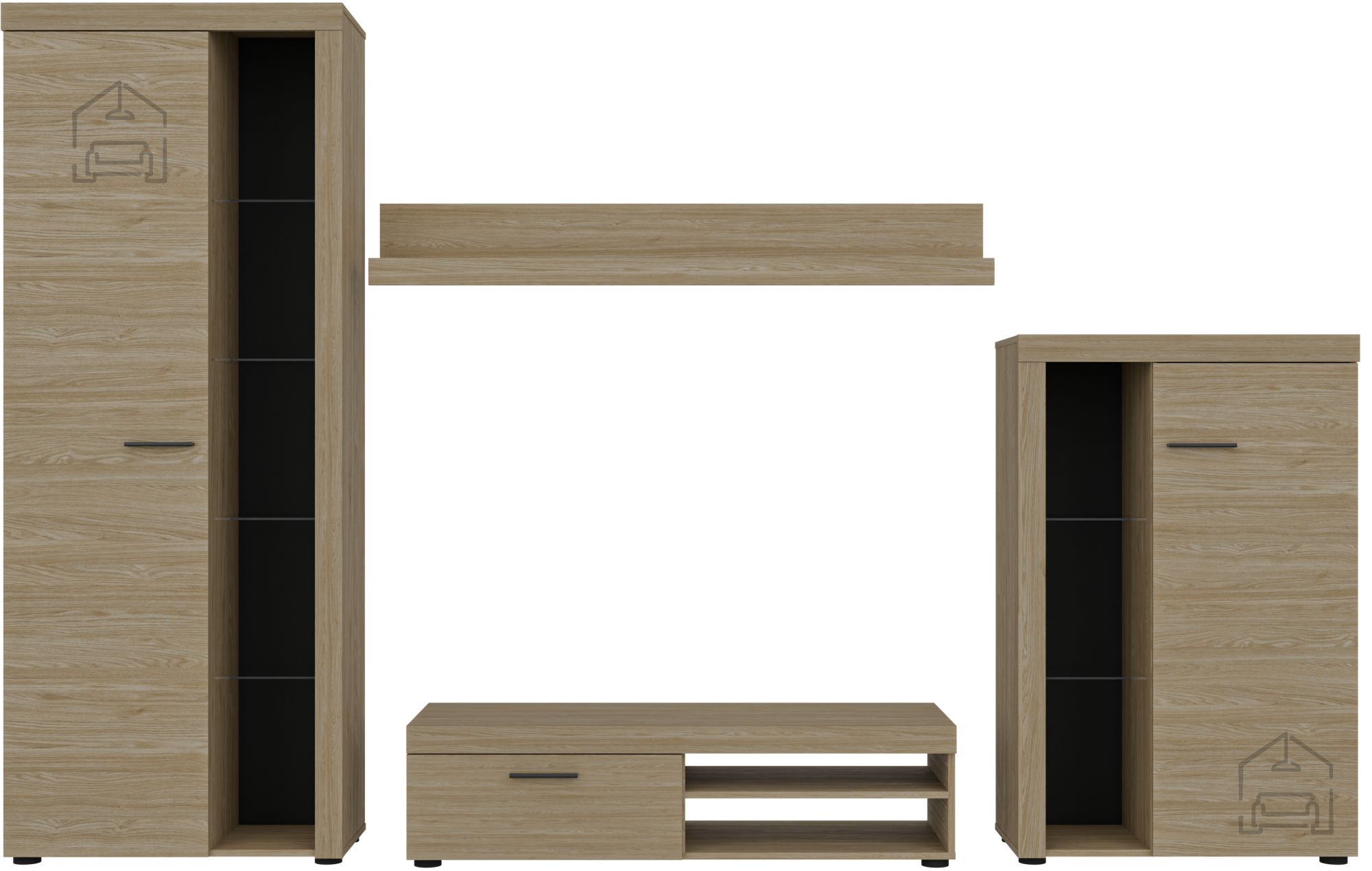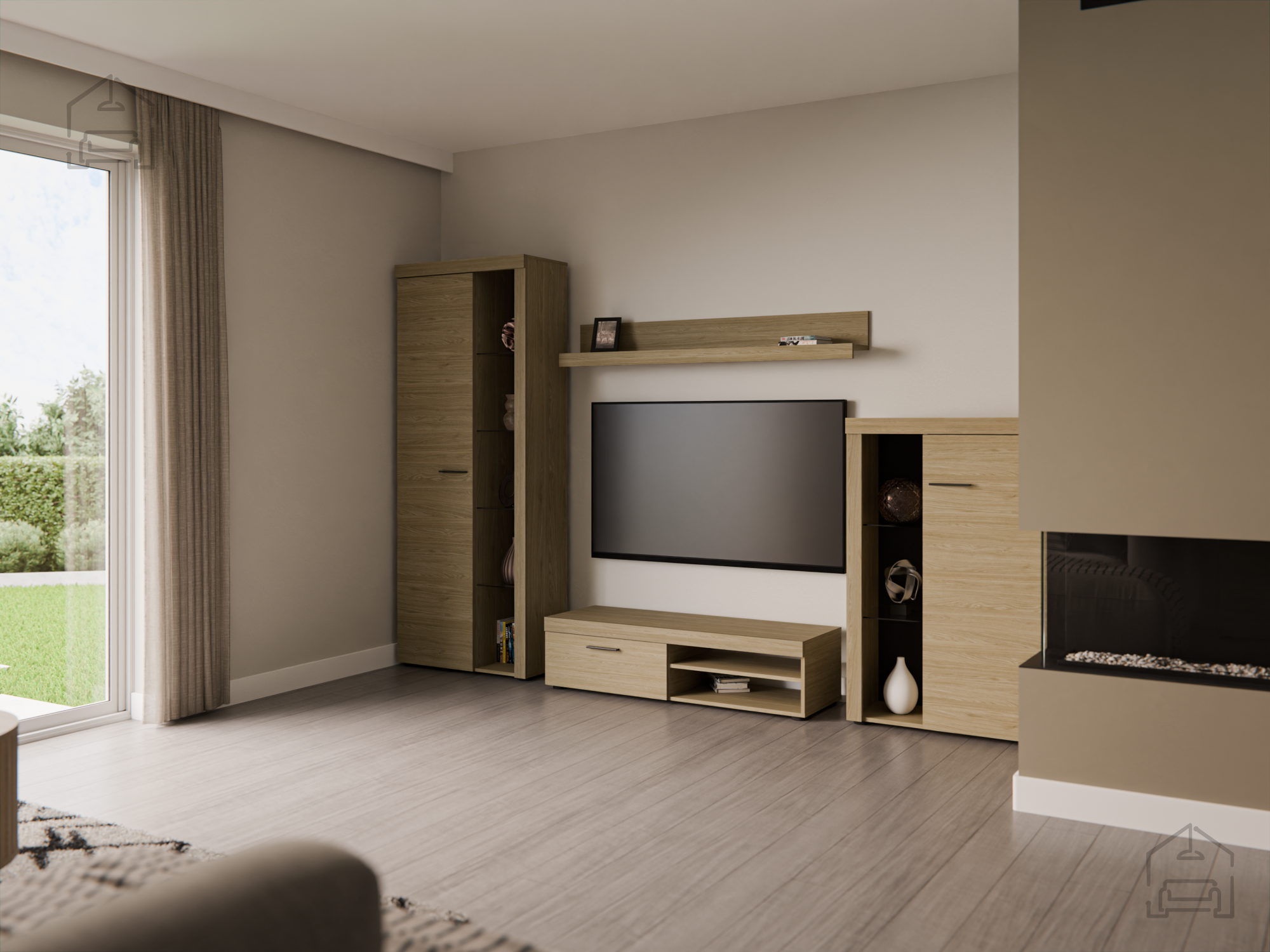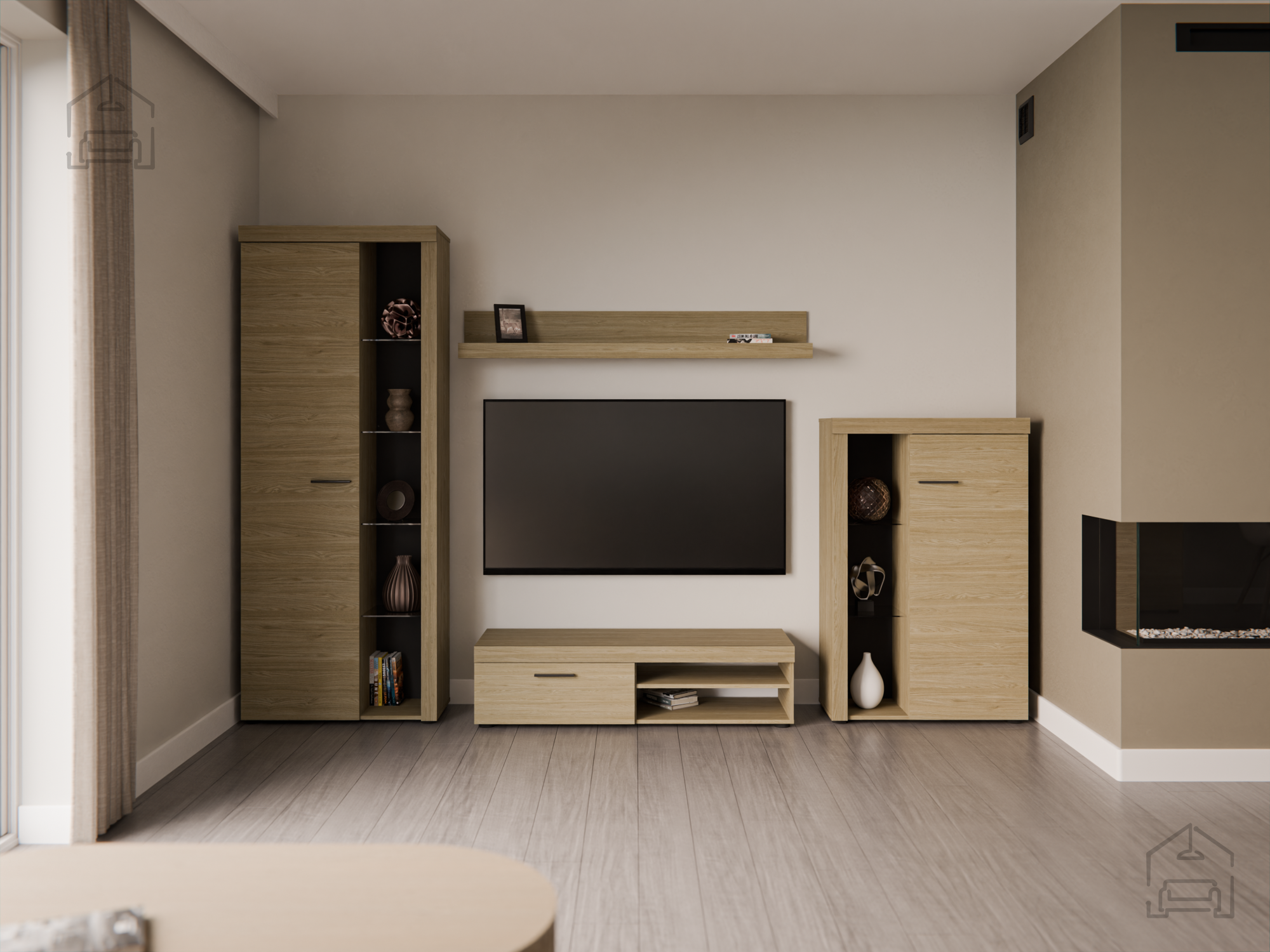 Regal Rumba je zasnovan tako, da omogoča pregledno postavitev vseh naprav in dodatkov, ki jih potrebujete ob televizorju. Zaradi širine 270 cm lahko na zgornjo površino brez težav postavite večji televizor, medtem ko spodnji in stranski deli nudijo prostor za ojačevalnike, igralne konzole ali medijske predvajalnike. Višina 190 cm omogoča vključitev odprtih in zaprtih delov, kar povečuje uporabnost regala in prispeva k urejenemu videzu dnevnega prostora.