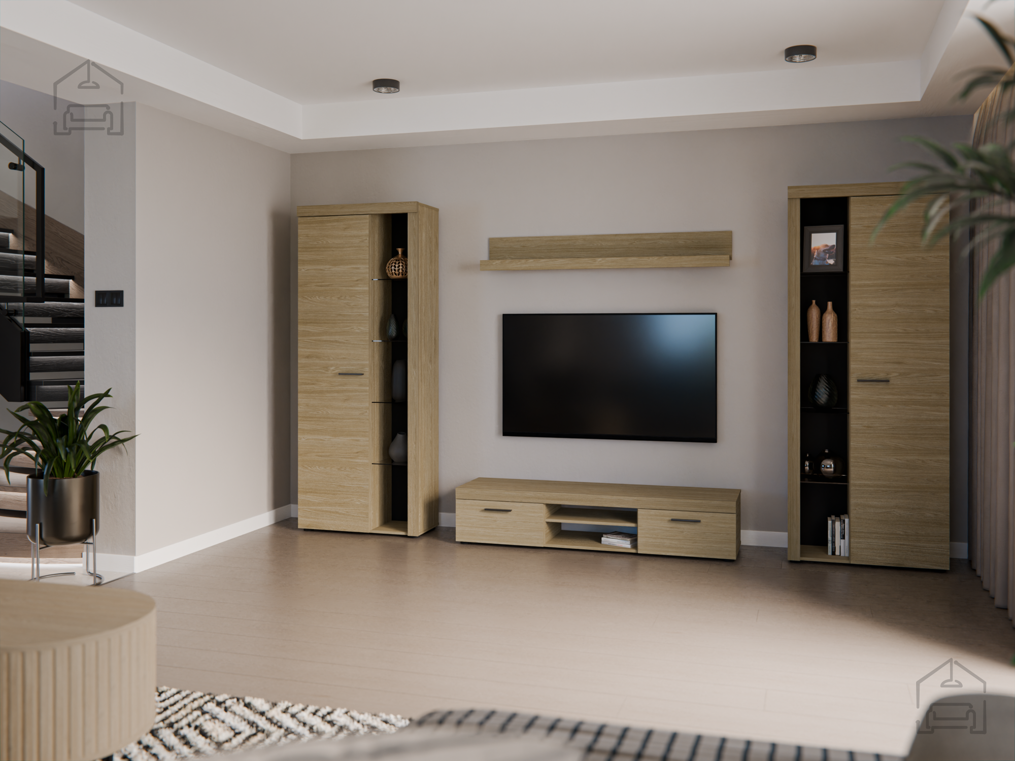 Rumba XL ni le estetsko dovršen, ampak tudi izjemno funkcionalen. Njegova notranja razporeditev omogoča optimalno shranjevanje različnih predmetov, od elektronskih naprav do knjig in okrasnih dodatkov. Regal je primeren za večje dnevne prostore, kjer želimo združiti praktičnost in eleganco v enem kosu pohištva.
