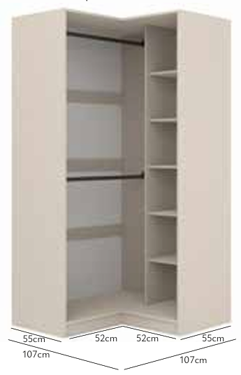 Osnova za kotno garderobno omaro Fox znamke Arkos meble predstavlja temelj modularnega sistema, ki omogoča popolno prilagoditev garderobnega prostora glede na vaše potrebe in razpoložljiv prostor. Izdelana je iz kakovostnega iverala v sodobni barvi kašmir, ki v prostor vnese mehkobo, toplino in občutek urejenosti. Zasnovana je za sestavljanje z drugimi elementi iz kolekcije Fox, kar omogoča ustvarjanje funkcionalne in estetsko dovršene garderobne rešitve za predsobo, spalnico ali garderobno sobo.