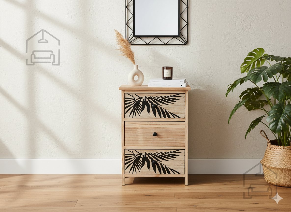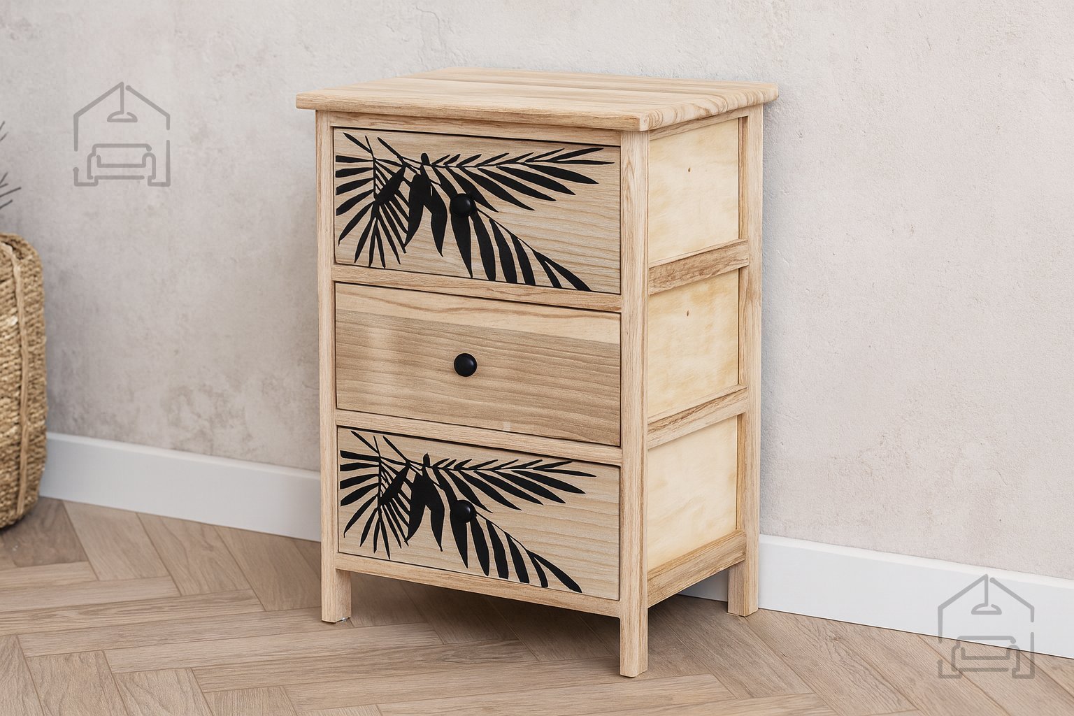Elegantna, naravna in funkcionalna – pripravljena, da osveži vaš dom! Komoda Zofia združuje naravno eleganco in praktičen dizajn. Izdelana je iz lahkega, a trpežnega lesa paulovnija, navdušuje z naravnim odtenkom in subtilnim listnim motivom, ki prostoru doda pridih topline in eksotičnega značaja. Idealna je za spalnico, dnevno sobo ali predsobo – povsod, kjer štejeta slog in red.