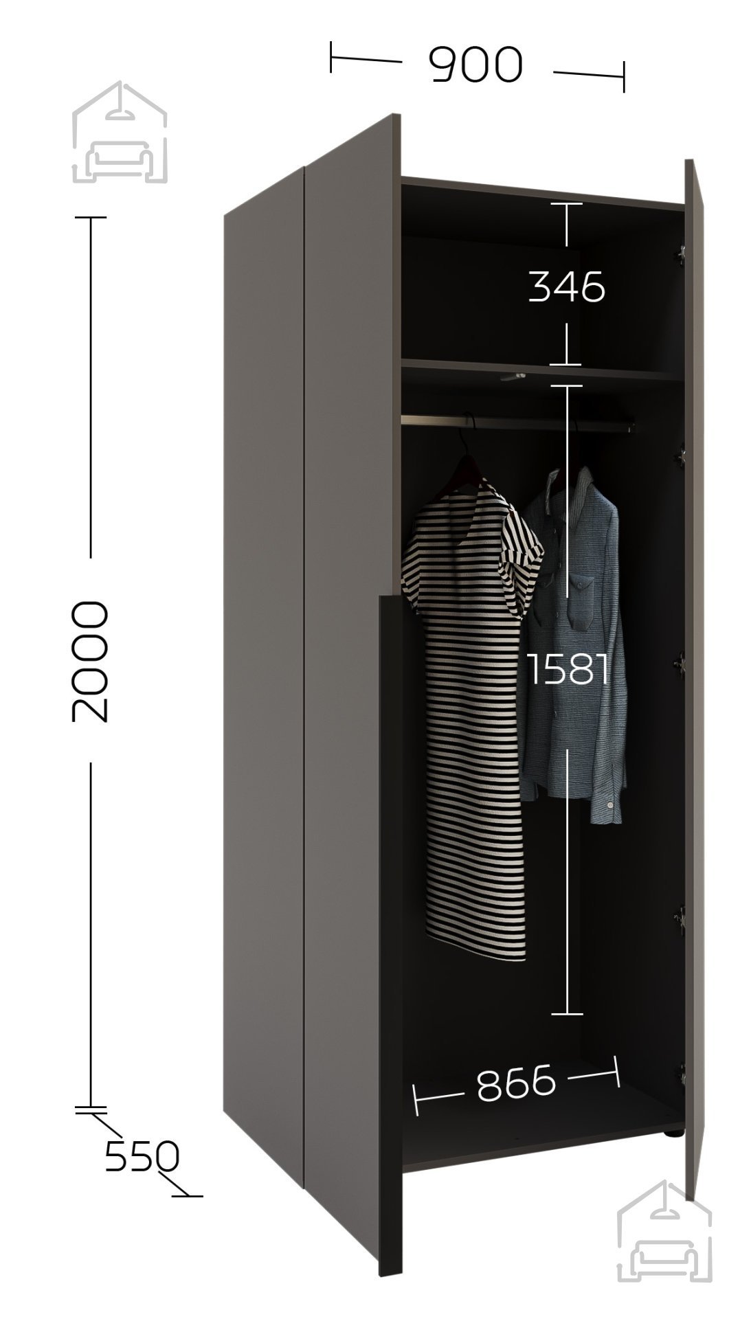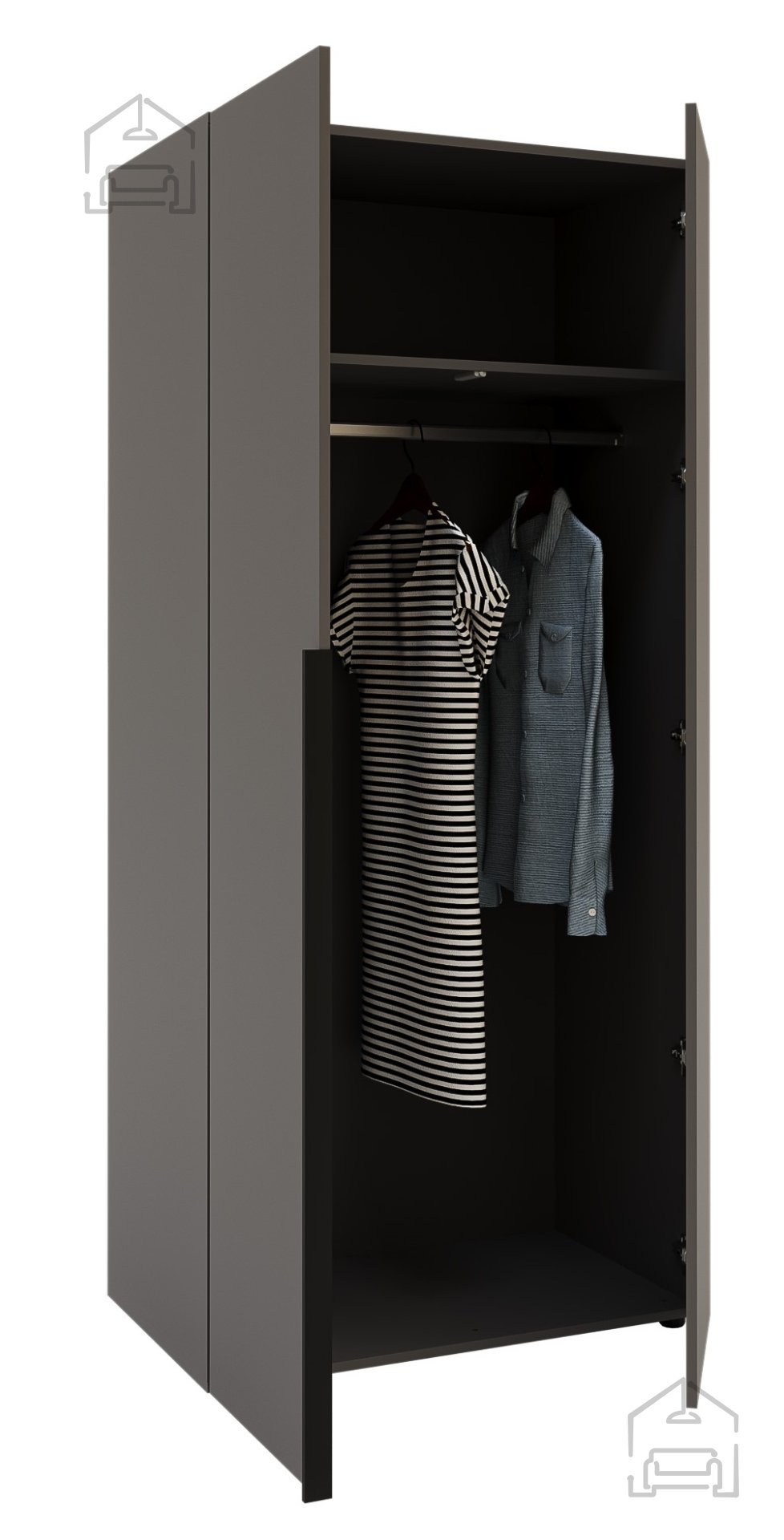 Elegantna in funkcionalna rešitev za shranjevanje oblačil in dodatkov – to je garderobna omara, ki s svojim modernim dizajnom in premišljenimi detajli navduši vsakega uporabnika. V grafitno sivi barvi se popolnoma zlije z različnimi stili notranje opreme, od minimalističnih do klasičnih, hkrati pa prostoru doda pridih sodobne elegance. Zaradi svoje praktične zasnove je odlična izbira tako za spalnice kot predsobe, kjer potrebujete zanesljiv in prostoren prostor za shranjevanje.