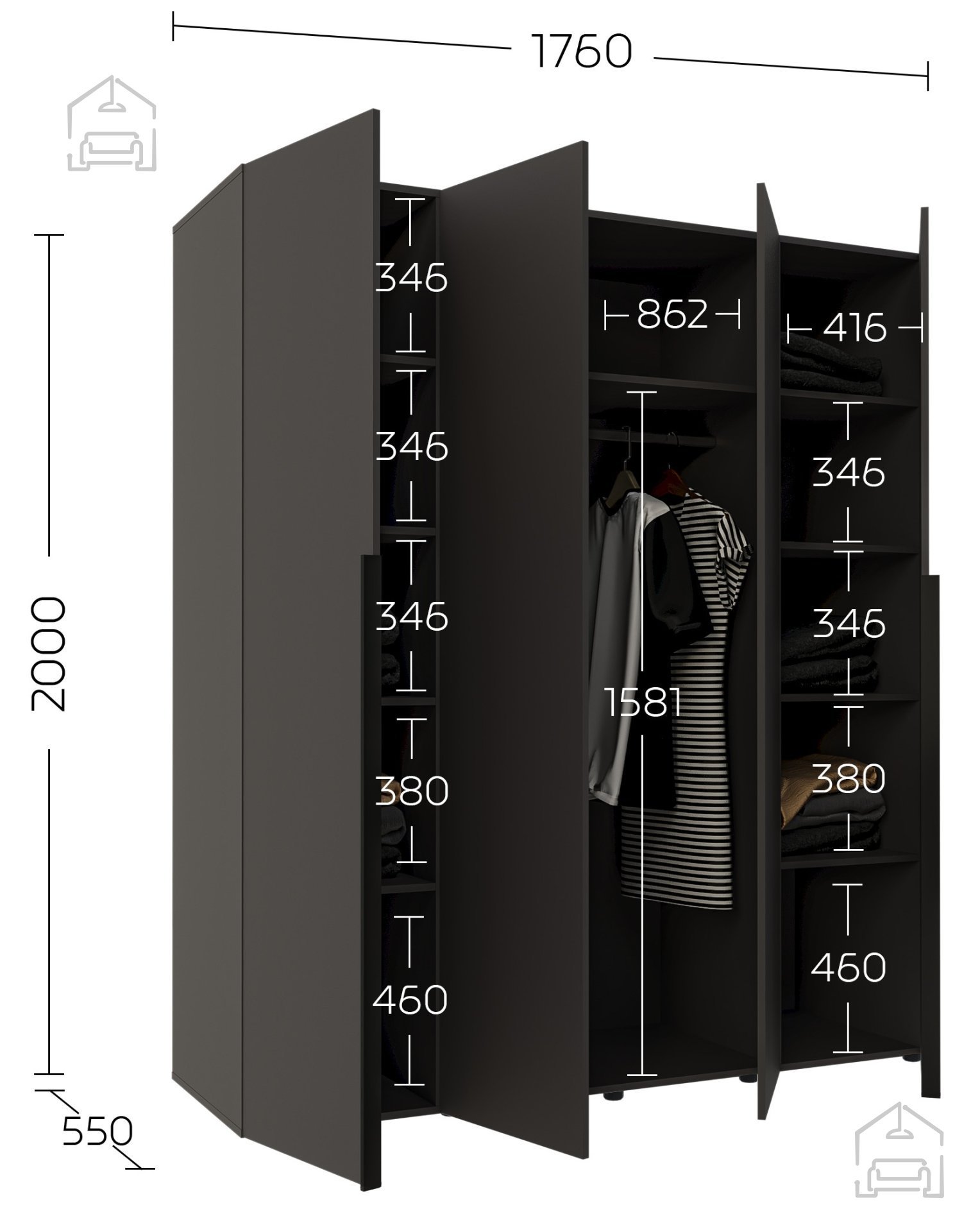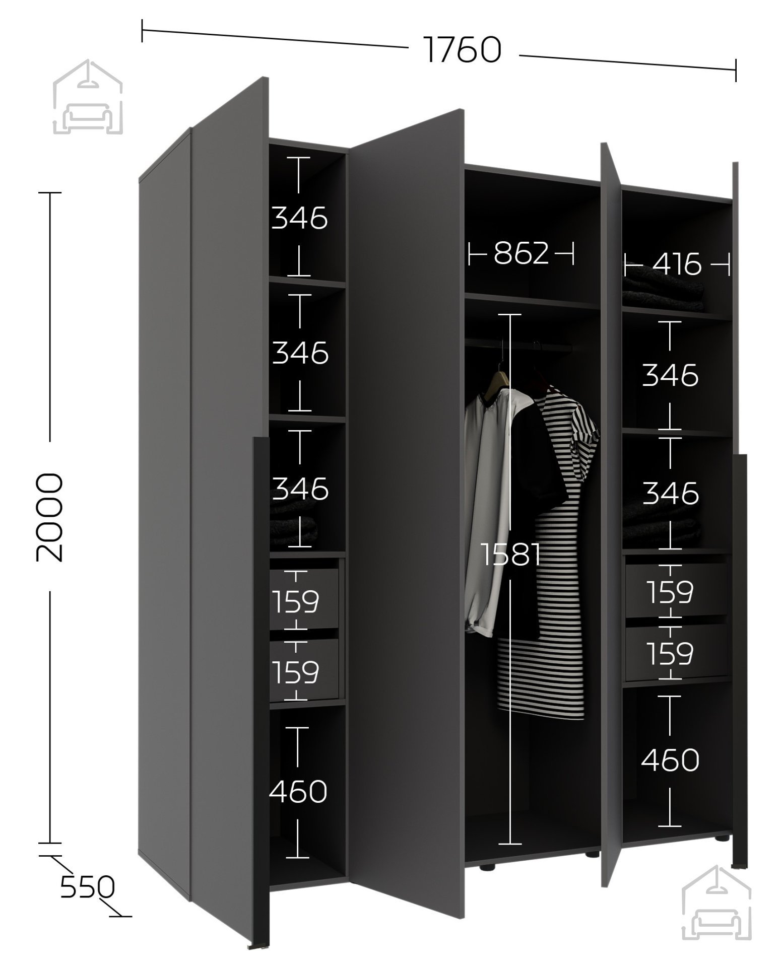Omara dimenzij 176×55×200 cm je zasnovana tako, da zagotavlja obilico prostora za shranjevanje, hkrati pa ne zavzame preveč prostora v sobi. V notranjosti omogoča pregledno razporeditev oblačil, obutve ter modnih dodatkov, zato bo vaš vsakdan bolj organiziran in enostaven. Zahvaljujoč štirim vratom je dostop do vsebine vedno praktičen in hiter.