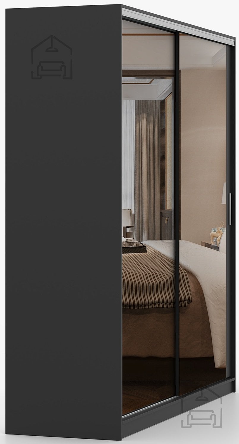 Garderobna omara z drsnimi vrati Tokyo M – Idżczak Meble se ponaša s sodobnim in funkcionalnim dizajnom, ki združuje eleganco črne barve z izjemno praktičnostjo drsnega mehanizma vrat. Ta omara z dimenzijami 203x58x215 cm je popolna izbira za spalnice, predsobe ali garderobne prostore, kjer je pomembna tako estetska usklajenost kot optimalna izraba prostora. Izdelana je iz kakovostne laminirane plošče, kar zagotavlja trdnost, stabilnost in dolgo življenjsko dobo tudi ob vsakodnevni uporabi.
