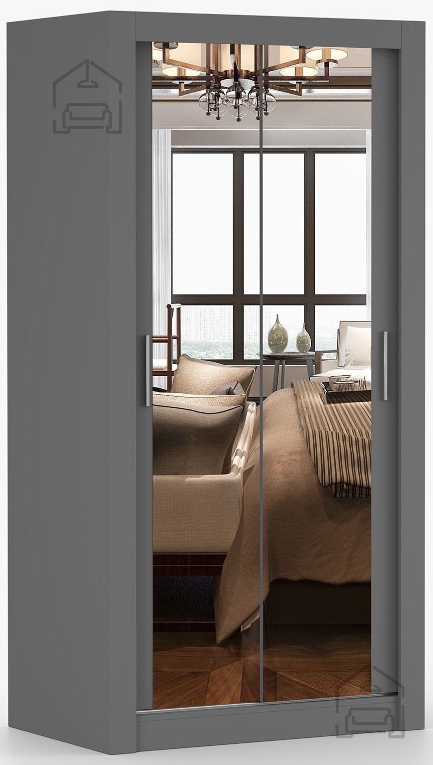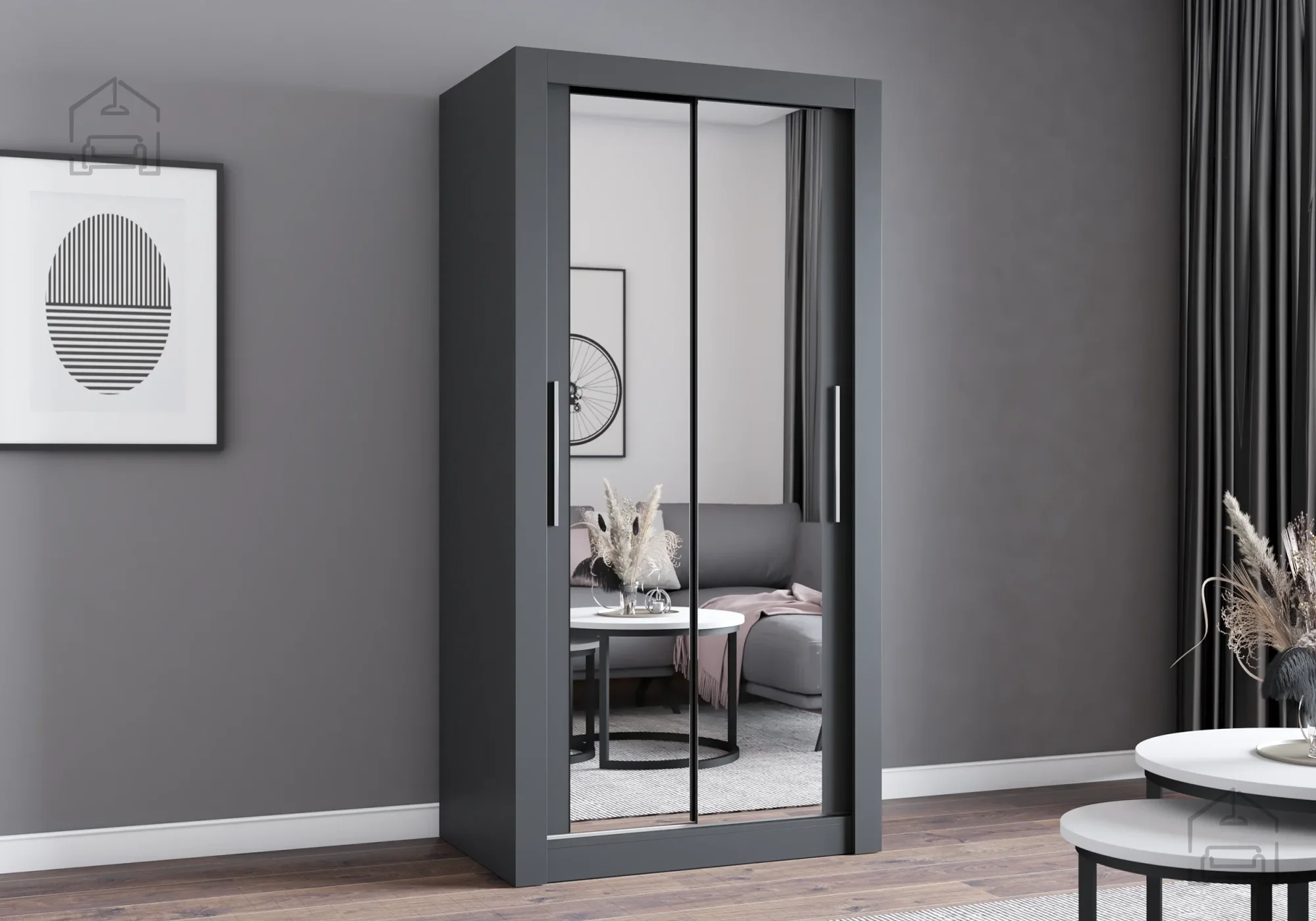 Čeprav je ta model predstavljen v sivi barvi, je omara Milan na voljo tudi v drugih izvedbah, kot je hrast sonoma. Siva barva ustvarja umirjen, eleganten vtis in se odlično kombinira z belimi, lesenimi ali črnimi elementi pohištva. V spalnici se lepo ujema s tekstilom v pastelnih tonih, v predsobi pa s kovinskimi ali steklenimi dodatki. Hrast sonoma pa daje prostoru toplo, naravno noto, zato je primeren za ljubitelje svetlega lesa in prijetnega ambienta.