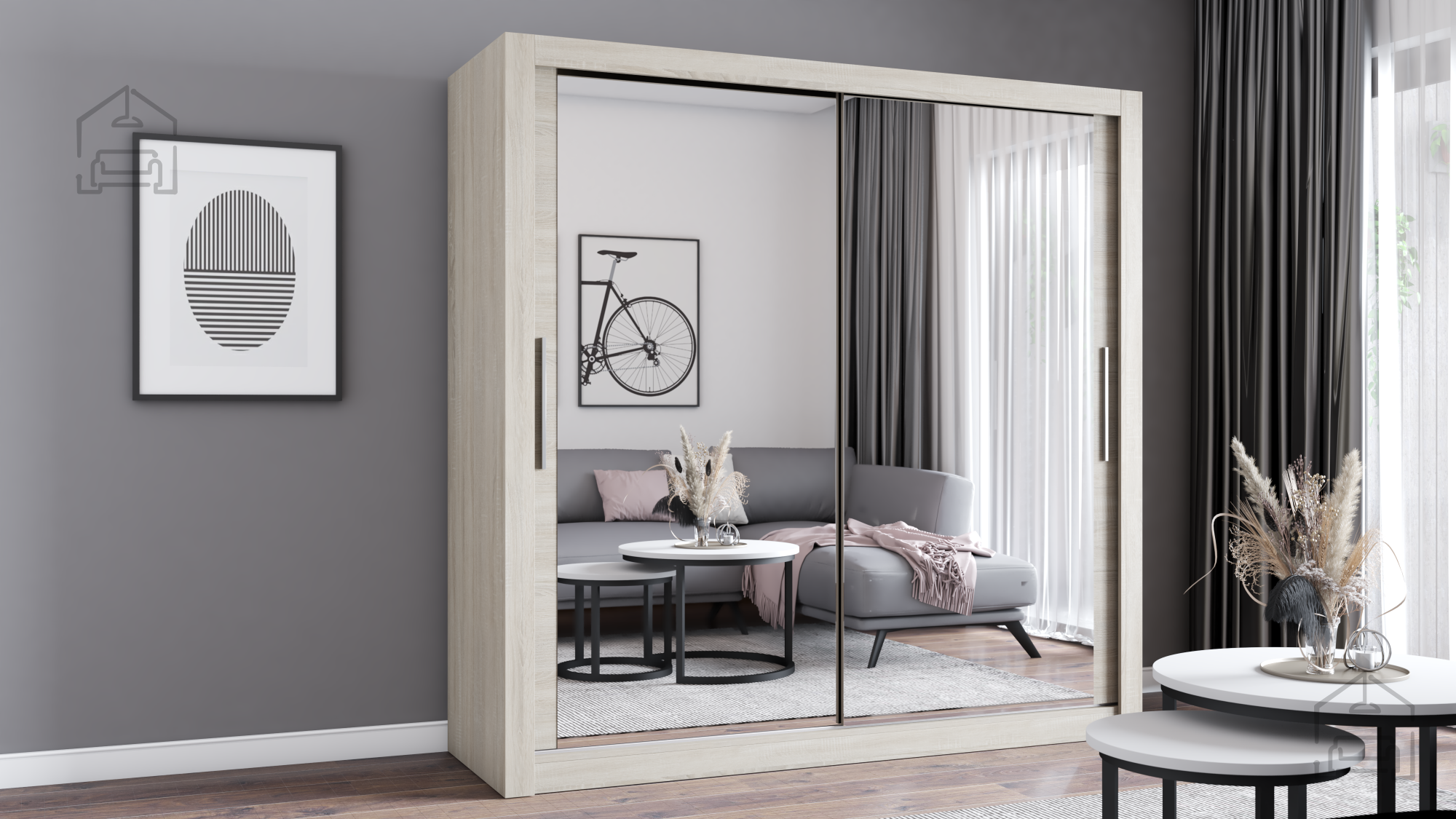 Topel in naraven ton sonoma hrasta ustvarja občutek domačnosti in miru. Ta barva je izjemno priljubljena, saj se lepo ujema z različnimi stili notranje opreme – od klasičnega do modernega. Površina laminirane plošče posnema naravno teksturo lesa, kar omari daje prefinjen videz, hkrati pa jo je enostavno čistiti in vzdrževati. V kombinaciji z minimalističnim dizajnom drsnih vrat omara Milan predstavlja brezčasno izbiro, ki se popolnoma zlije z okoljem.