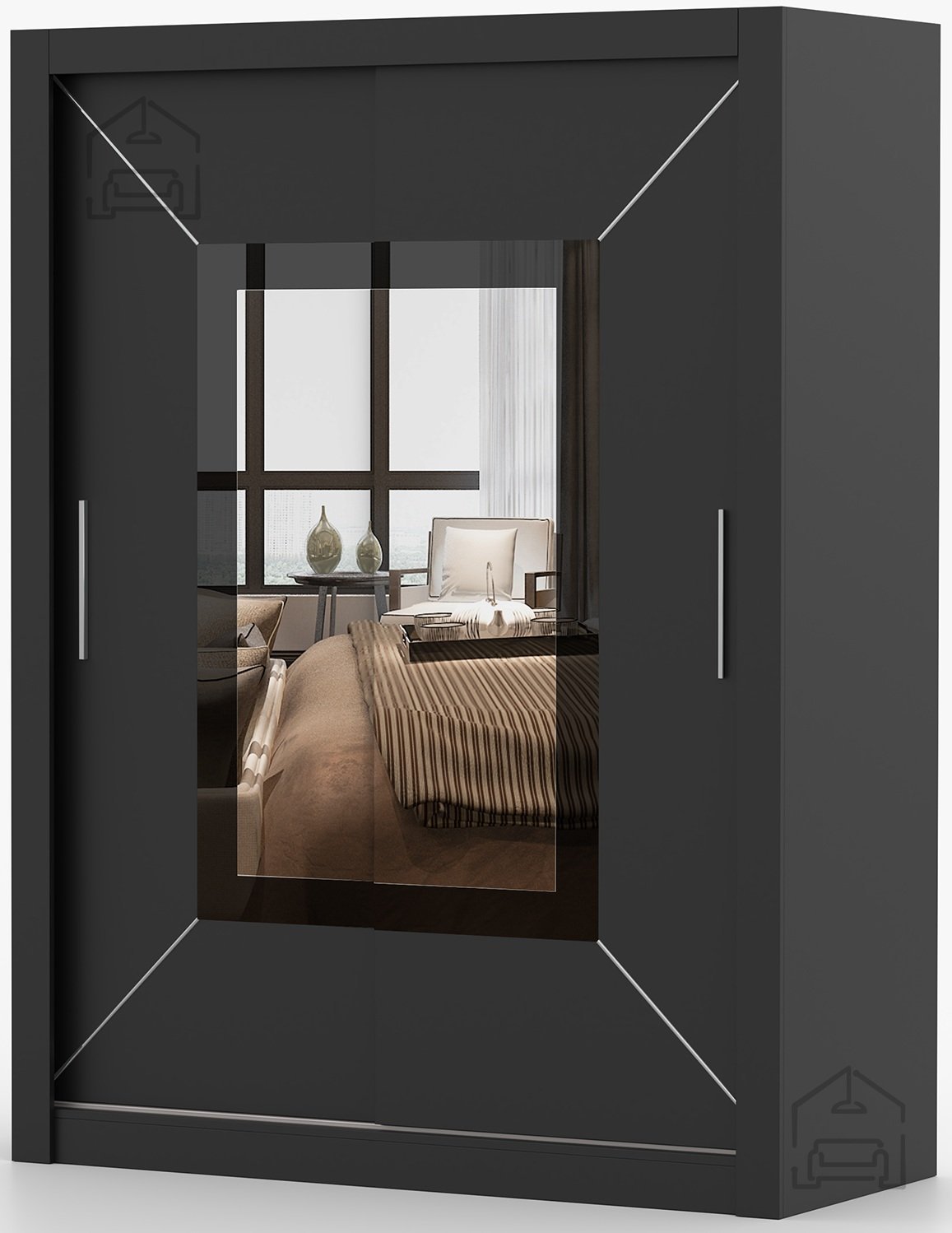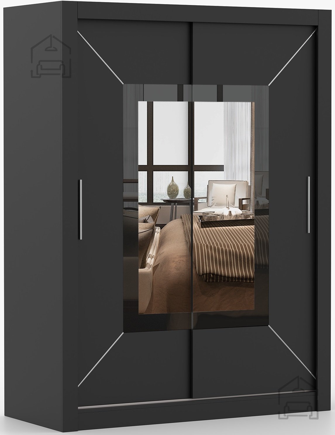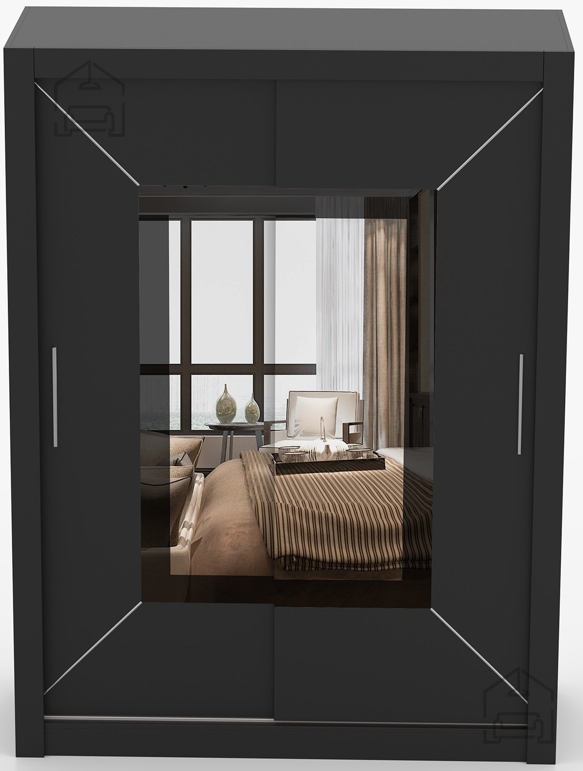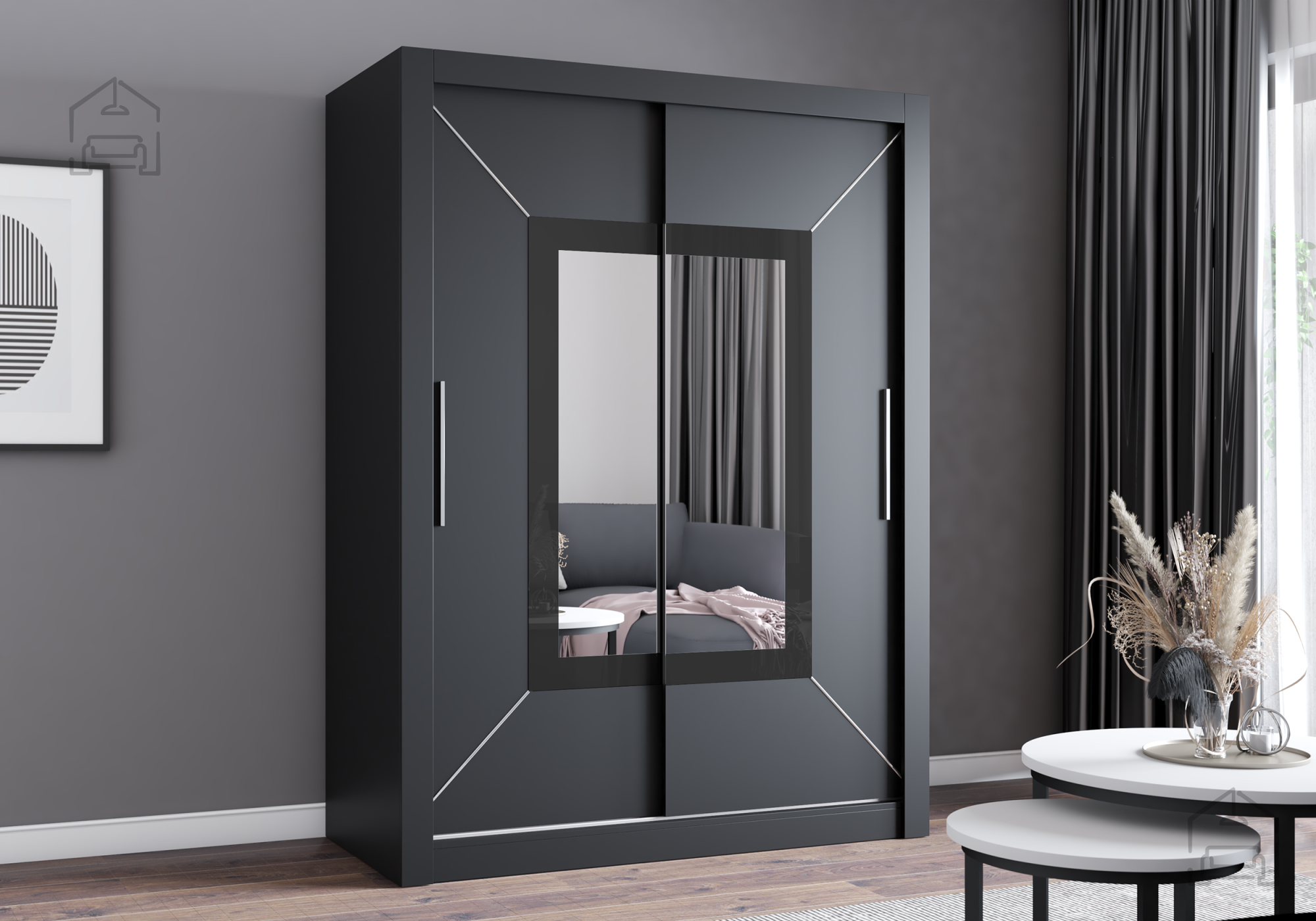 Garderobna omara z drsnimi vrati Venice znamke Idžczak Meble združuje sodoben videz, funkcionalnost in kakovostno izdelavo. Izdelana je iz trpežne laminirane plošče, ki je znana po odpornosti proti praskam in enostavnem vzdrževanju. Elegantna črna barva daje prostoru prefinjen in minimalističen značaj, primeren tako za sodobna stanovanja kot za klasično opremljene interierje. Z dimenzijami 150x64x215 cm nudi dovolj prostora za shranjevanje oblačil, obutve in dodatkov, hkrati pa ne zavzame preveč prostora v spalnici ali predsobi.