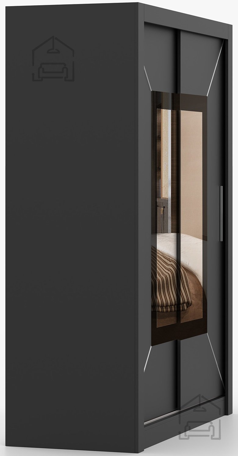 Črna garderobna omara je univerzalna izbira, ki se zlahka kombinira z različnimi barvnimi toni in materiali. Lepo se poda k svetlim stenam ali kontrastnim lesenim talnim oblogam. Površina laminirane plošče ima subtilen sijaj, ki daje vtis večje globine in prefinjenosti. V kombinaciji z drugimi kosi pohištva iz iste kolekcije Venice lahko ustvarite harmoničen in usklajen videz prostora.
