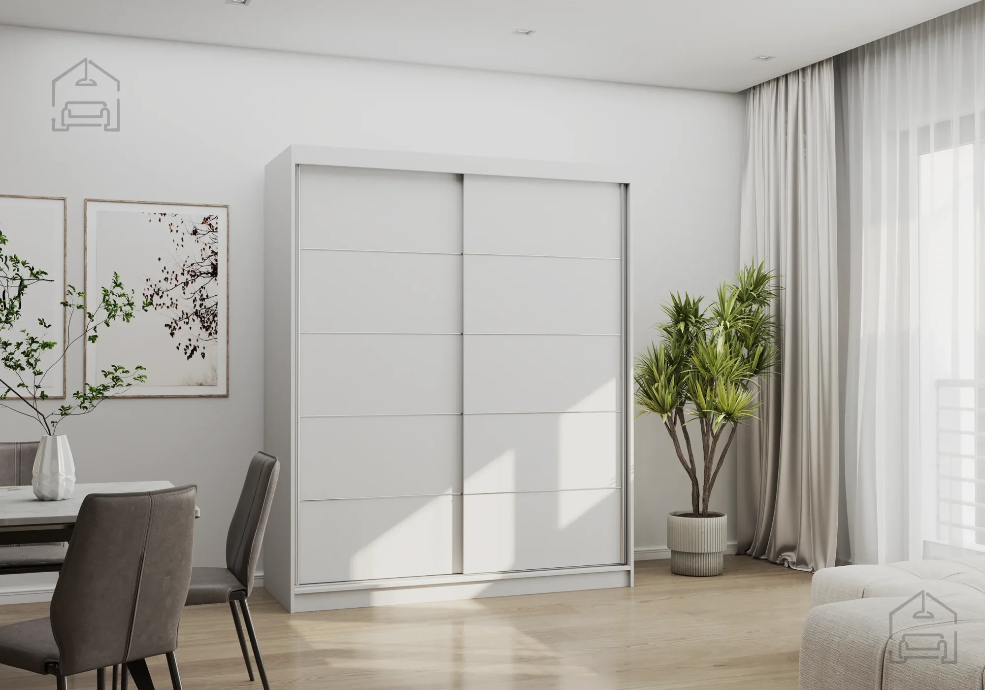 Garderobna omara z drsnimi vrati Bono 06 je zasnovana tako, da omogoča optimalen izkoristek prostora. Drsna vrata se odpirajo gladko in tiho, kar je posebej priročno v manjših prostorih, kjer ni veliko manevrskega prostora za klasična krilna vrata. Notranja razporeditev omare omogoča pregledno shranjevanje oblačil, dodatkov in drugih osebnih predmetov, s čimer lahko enostavno ohranite red in urejenost.