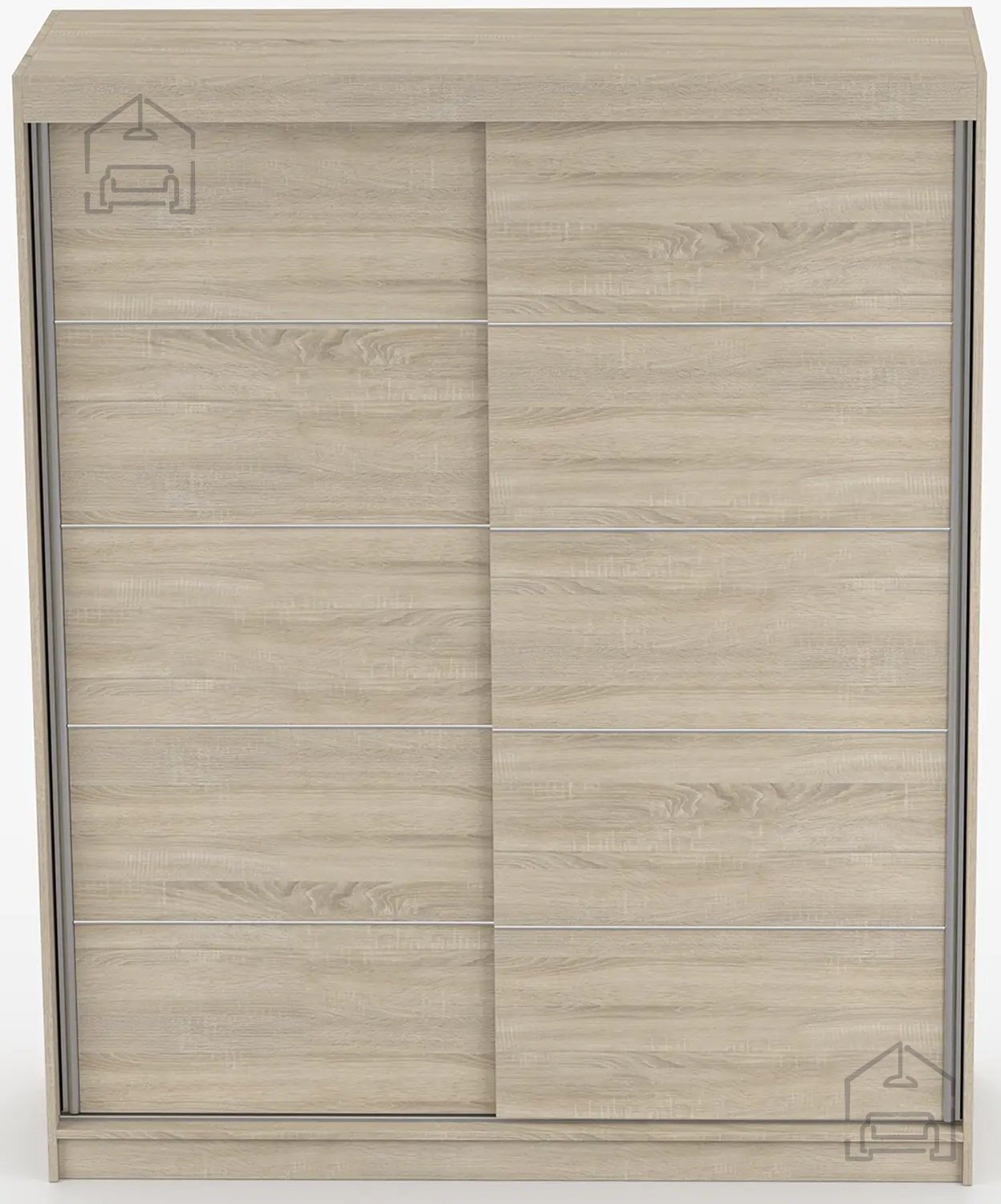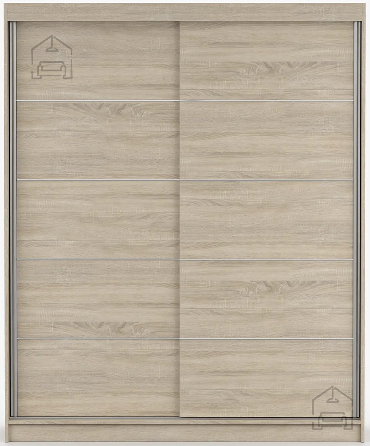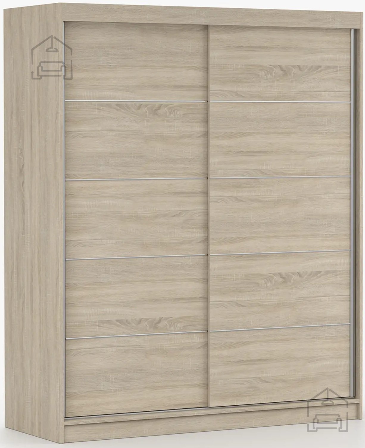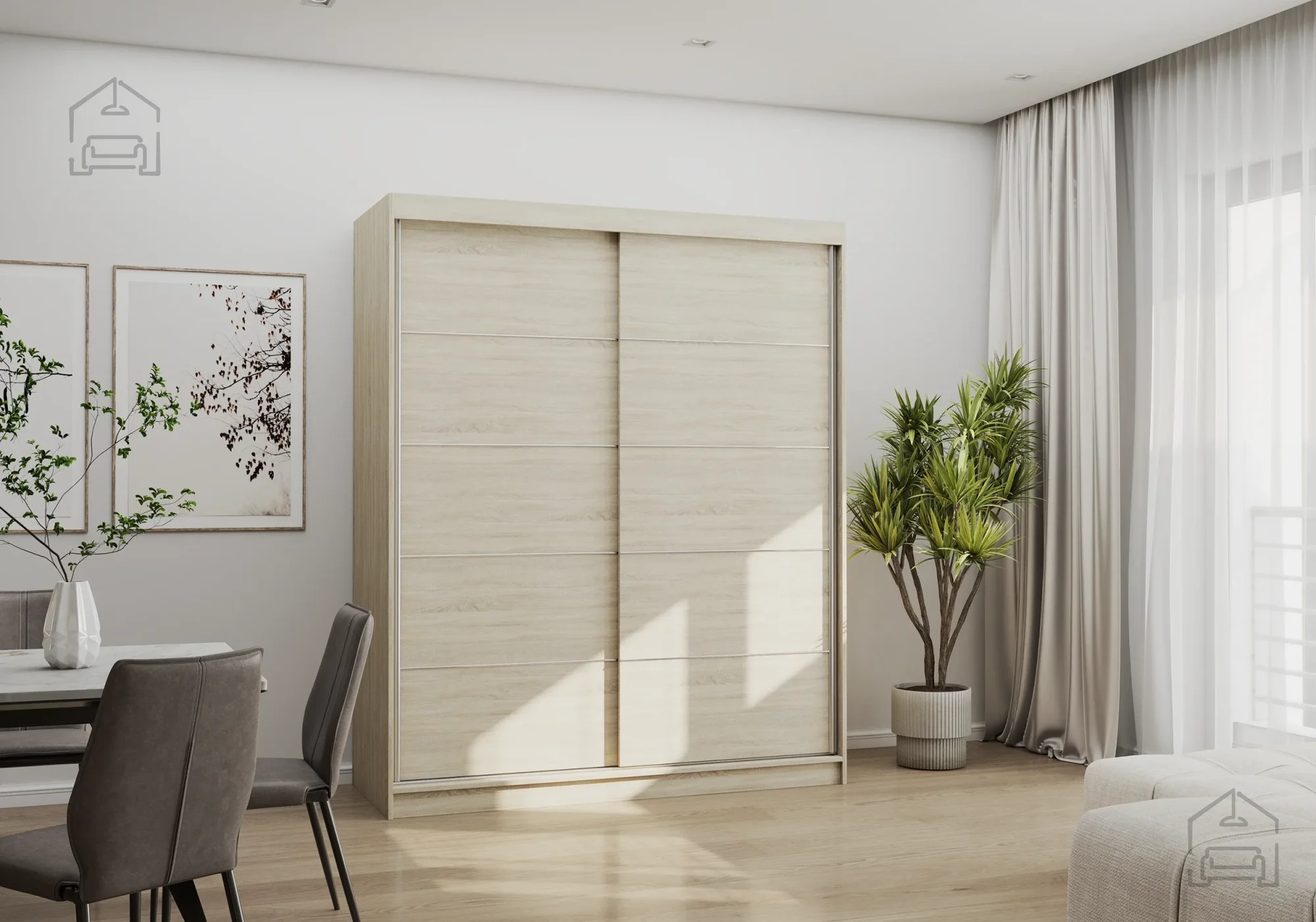 Omara meri 160x61x195 cm, kar pomeni, da nudi dovolj prostora za shranjevanje oblačil, obutve in dodatkov, hkrati pa ne zavzame preveč prostora v spalnici, predsobi ali garderobi. Drsna vrata omogočajo enostavno odpiranje tudi v manjših prostorih, saj ne potrebujejo dodatnega prostora za nihanje kot klasična krilna vrata. Ta rešitev povečuje uporabnost in olajša dostop do vsebine omare.