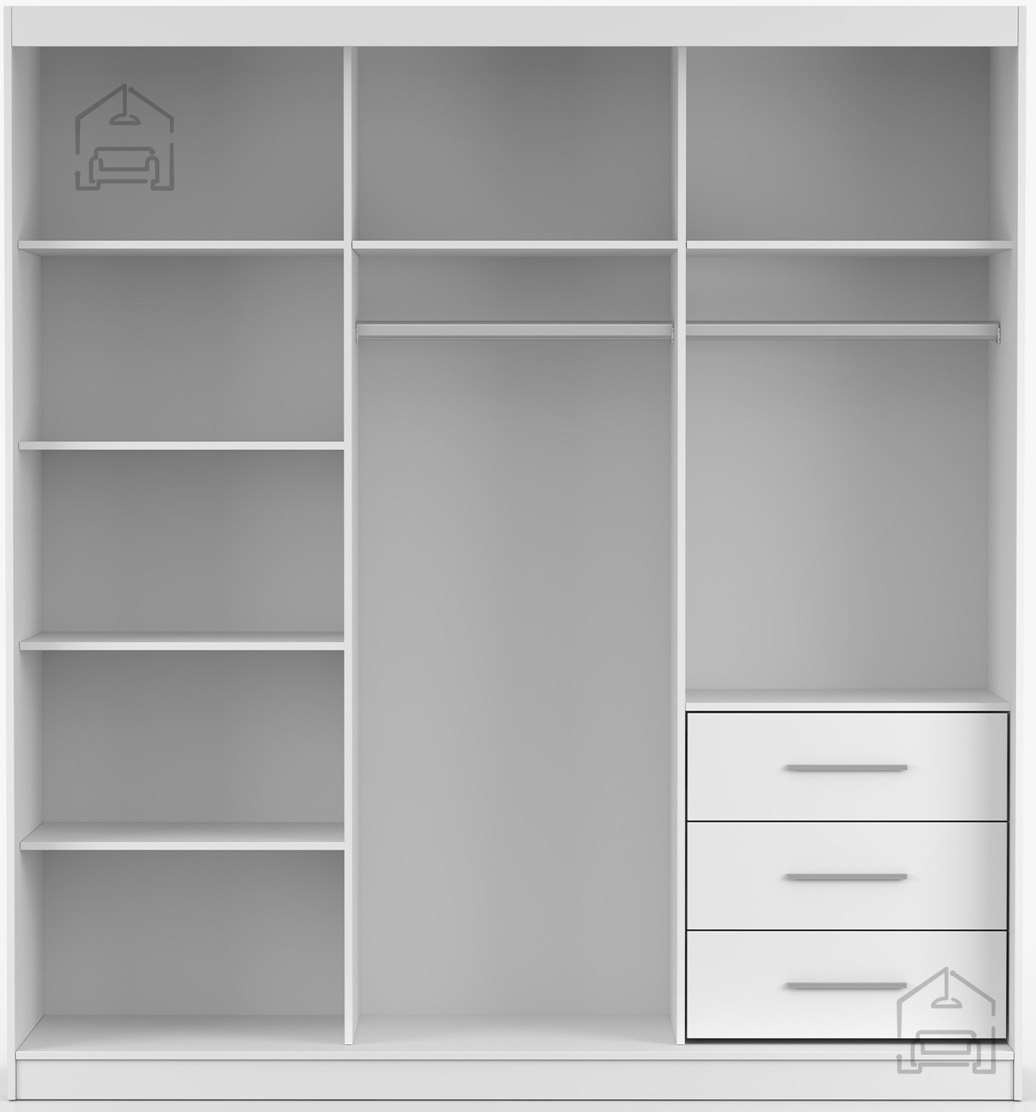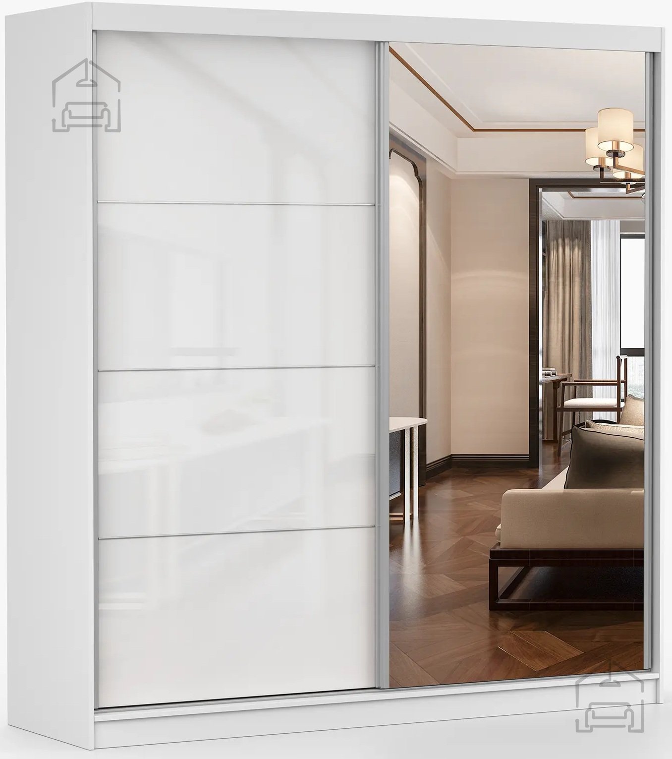 Z merami 203 cm širine, 61 cm globine in 218 cm višine omara nudi optimalno razmerje med prostornostjo in kompaktnostjo. Primerna je tako za večje spalnice kot za stanovanja, kjer je pomembna učinkovita raba prostora. Bela sijajna površina se lepo kombinira z drugimi pohištvenimi elementi v svetlih ali kontrastnih tonih, zato jo je mogoče enostavno vključiti v različne interierje.