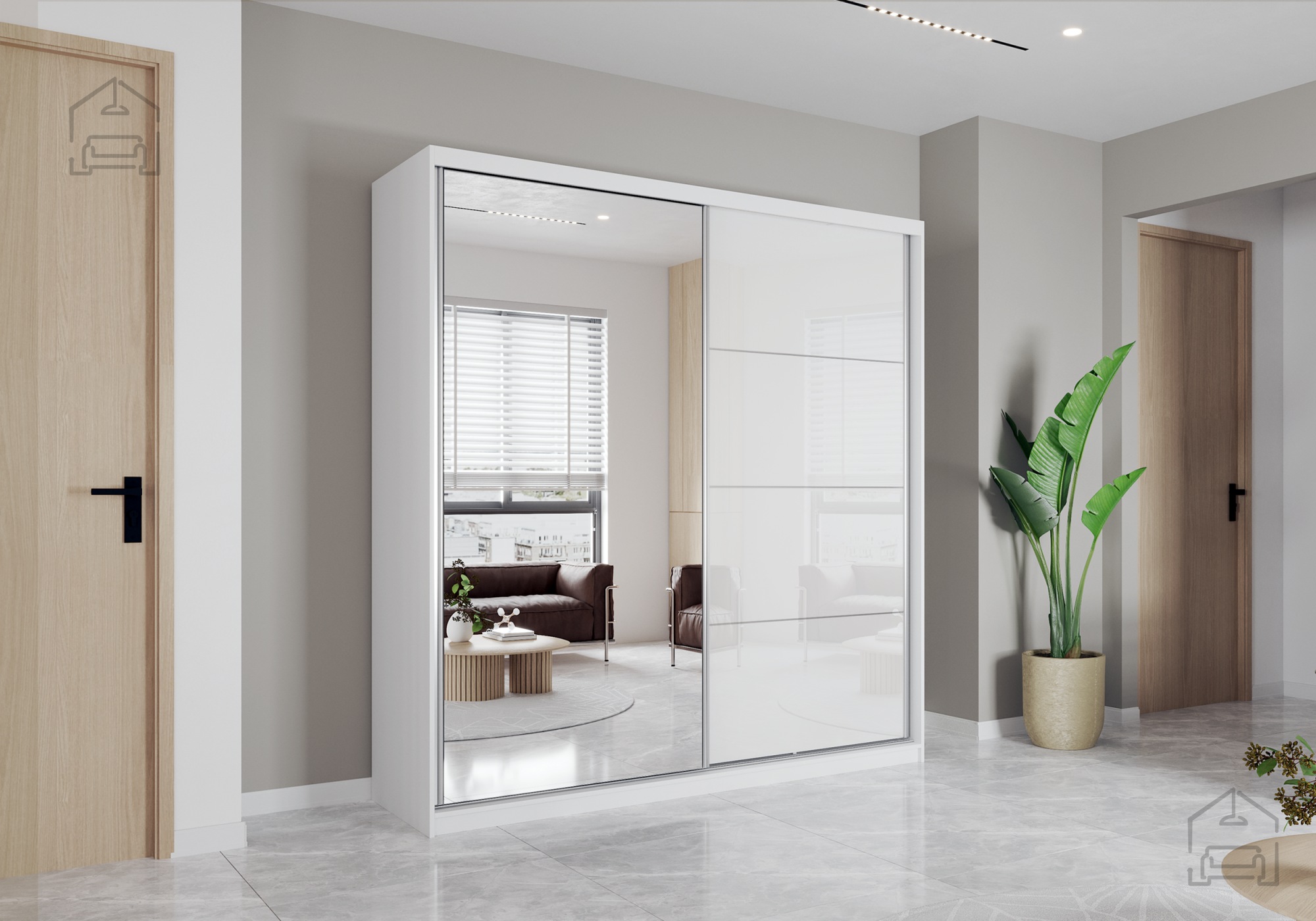 Omara Pola 35 203 je zasnovana za vse, ki iščejo kombinacijo estetike in uporabnosti. Površina v visoki sijajni beli barvi odraža svetlobo in vizualno poveča prostor, zato je ta model primeren tudi za manjše sobe. Drsna vrata omogočajo enostaven dostop do notranjosti, ne potrebujejo dodatnega prostora za odpiranje in prispevajo k modernemu videzu. Takšna rešitev je idealna za sodobne notranje postavitve, kjer se prepletata minimalizem in praktičnost.