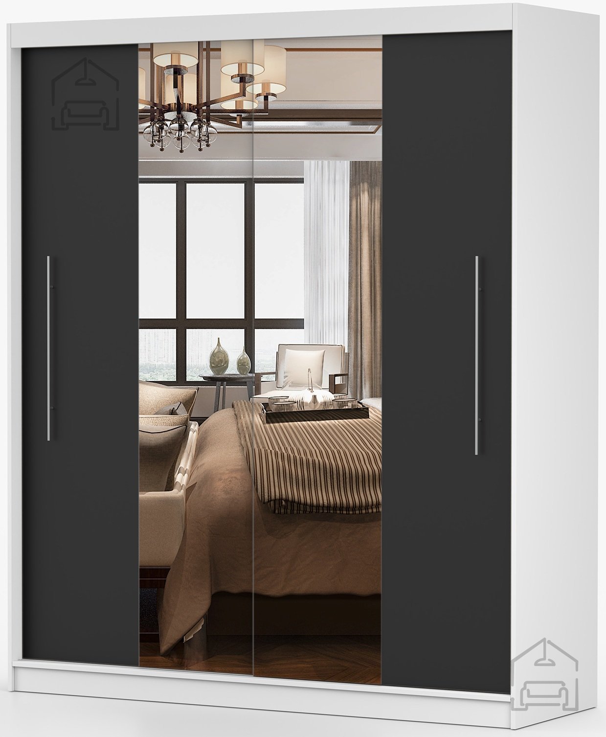Osnovni material omare je laminirana plošča, znana po svoji trpežnosti in odpornosti proti praskam ter vlagi. Površina je enostavna za čiščenje, kar pomeni, da ohranja svoj svež videz tudi po letih uporabe. Bela in črna barva sta usklajeni v kontrastni kombinaciji, ki v prostoru deluje sodobno in elegantno. Barvna zasnova omogoča enostavno kombiniranje z drugimi kosi pohištva v spalnici, predsobi ali garderobi.