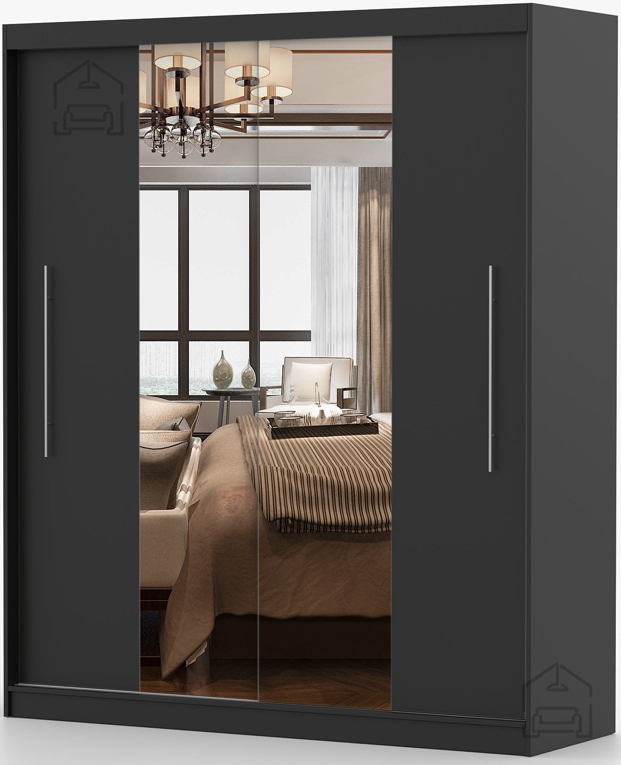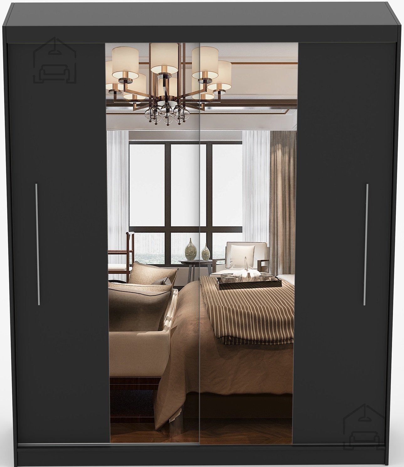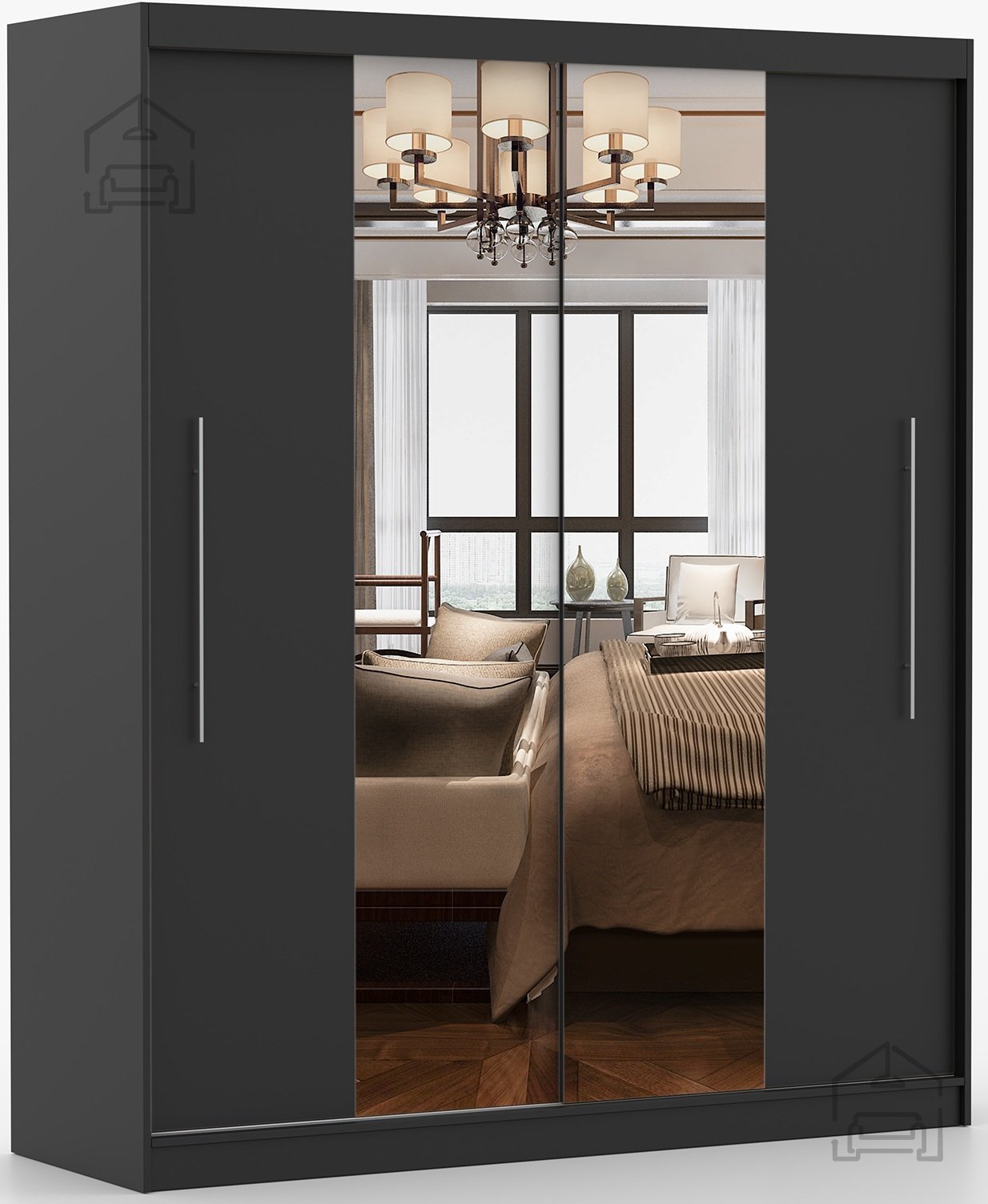 Črna barva in minimalistična oblika omogočata, da se garderobna omara Torino z ogledalom enostavno ujema z drugimi elementi pohištva – od klasičnih lesenih tonov do modernih svetlih površin. Lahko je del celovite spalnične kompozicije ali samostojen element v predsobi. Zrcalna površina dodatno poudari estetsko vrednost prostora in ga optično poveča.